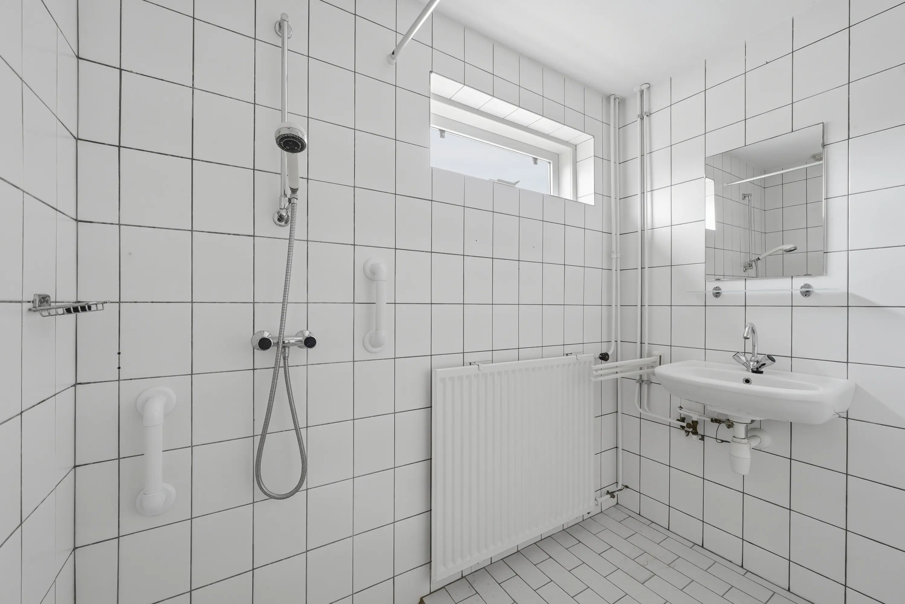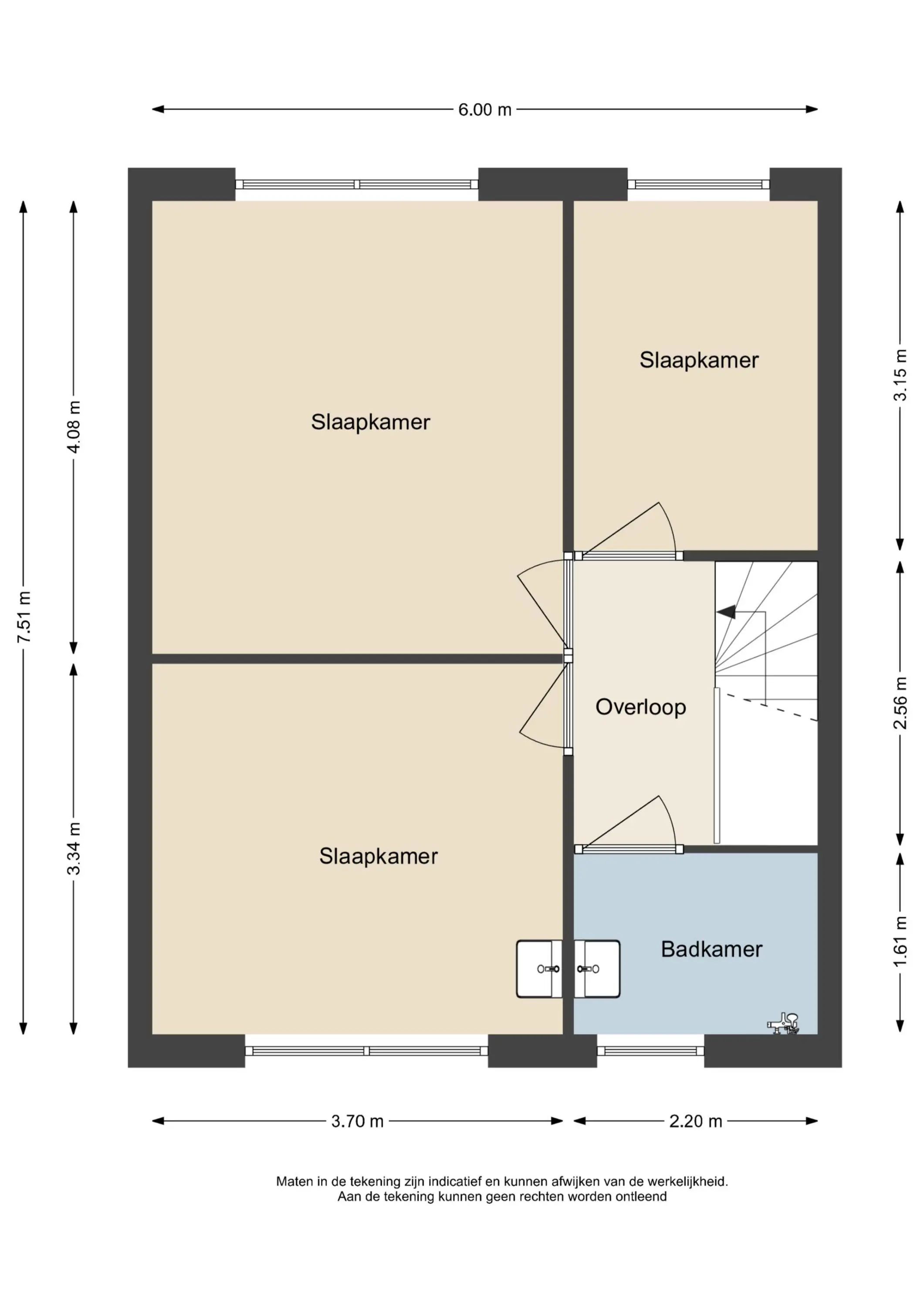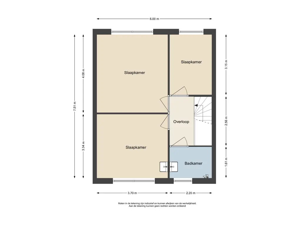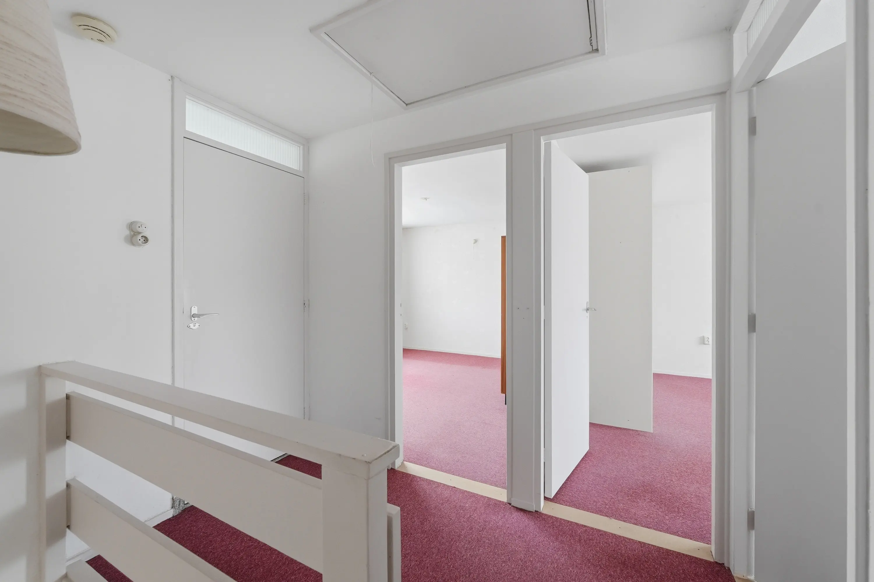 Overloop verleent toegang tot 3 slaapkamers, waaronder de 2 grote slaapkamers aan de voor- en achterzijde van de woning. De verzorgde badkamer is voorzien van een douche en wastafel.