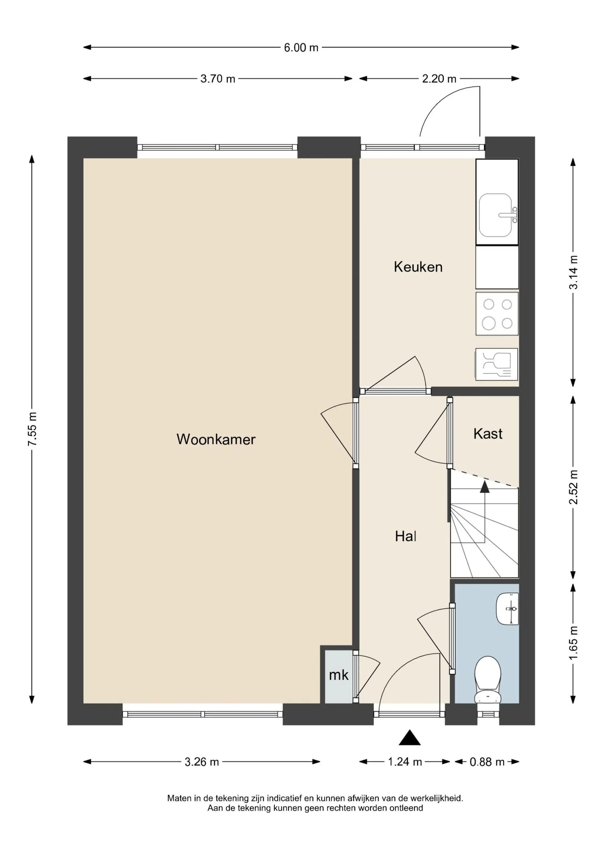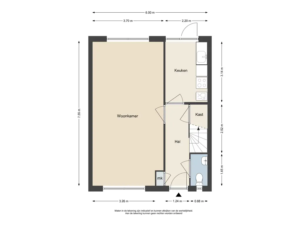 Deze informatie is door ons met de nodige zorgvuldigheid samengesteld. Onzerzijds wordt echter geen enkele aansprakelijkheid aanvaard voor enige onvolledigheid, onjuistheid of anderszins, dan wel de gevolgen daarvan. Alle opgegeven maten en oppervlakten zijn indicatief.
