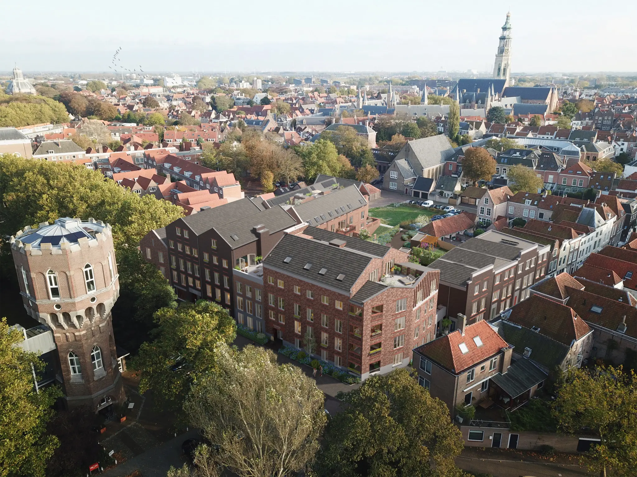 In het gebied tussen de Korte Noordstraat, Zuidsingel en Koningstraat worden 31 luxe appartementen, 3 exclusieve penthouses en 4 zeer royale herenhuizen gebouwd in het monumentale hart van de stad. Omgeven door de karakteristieke sfeer en bebouwing die Middelburg zoveel kwaliteit en aanzien geeft. Maar, ook met een vlotte connectie en ontsluiting naar de omliggende doorgaande wegen. Vlot naar de A58, de dammenroute en… het strand.