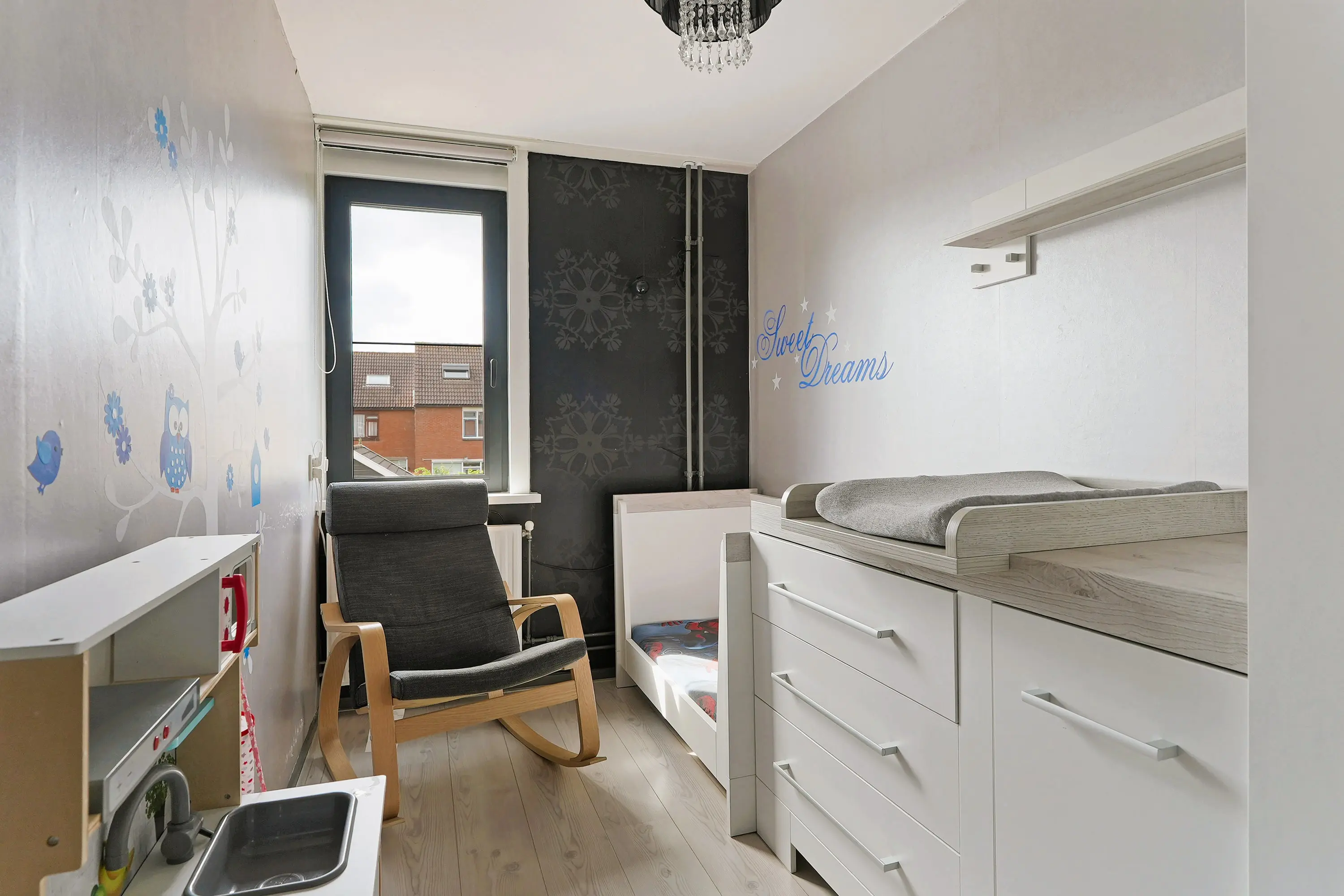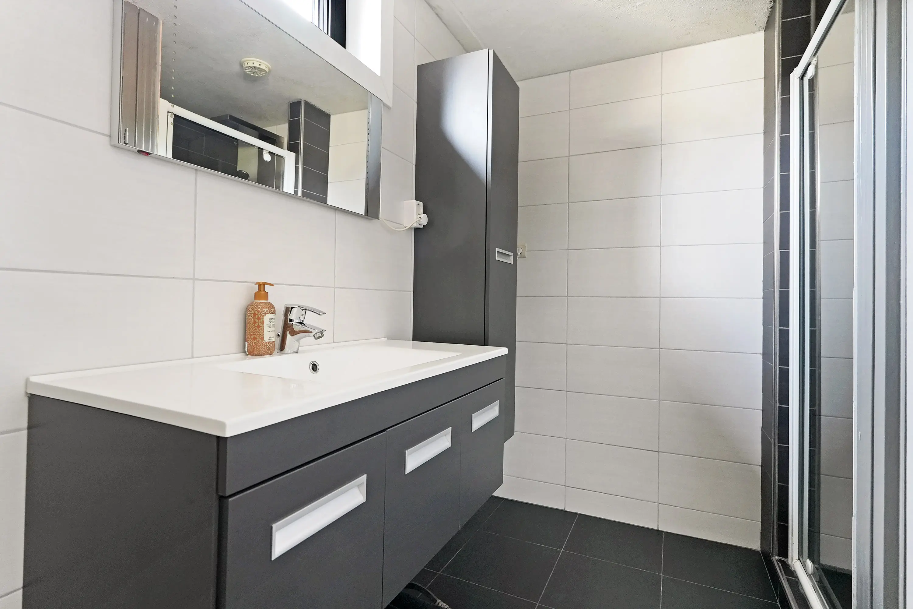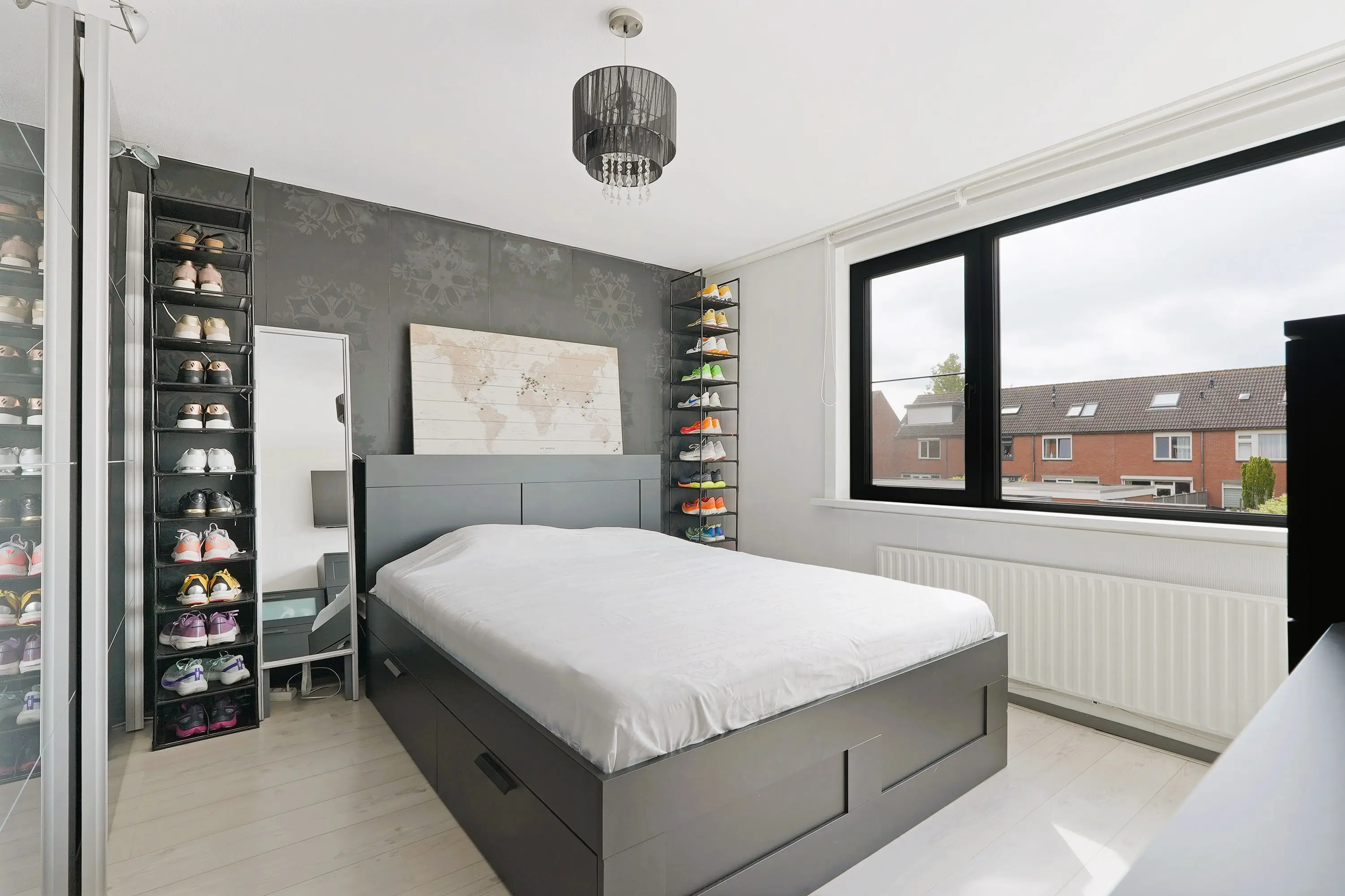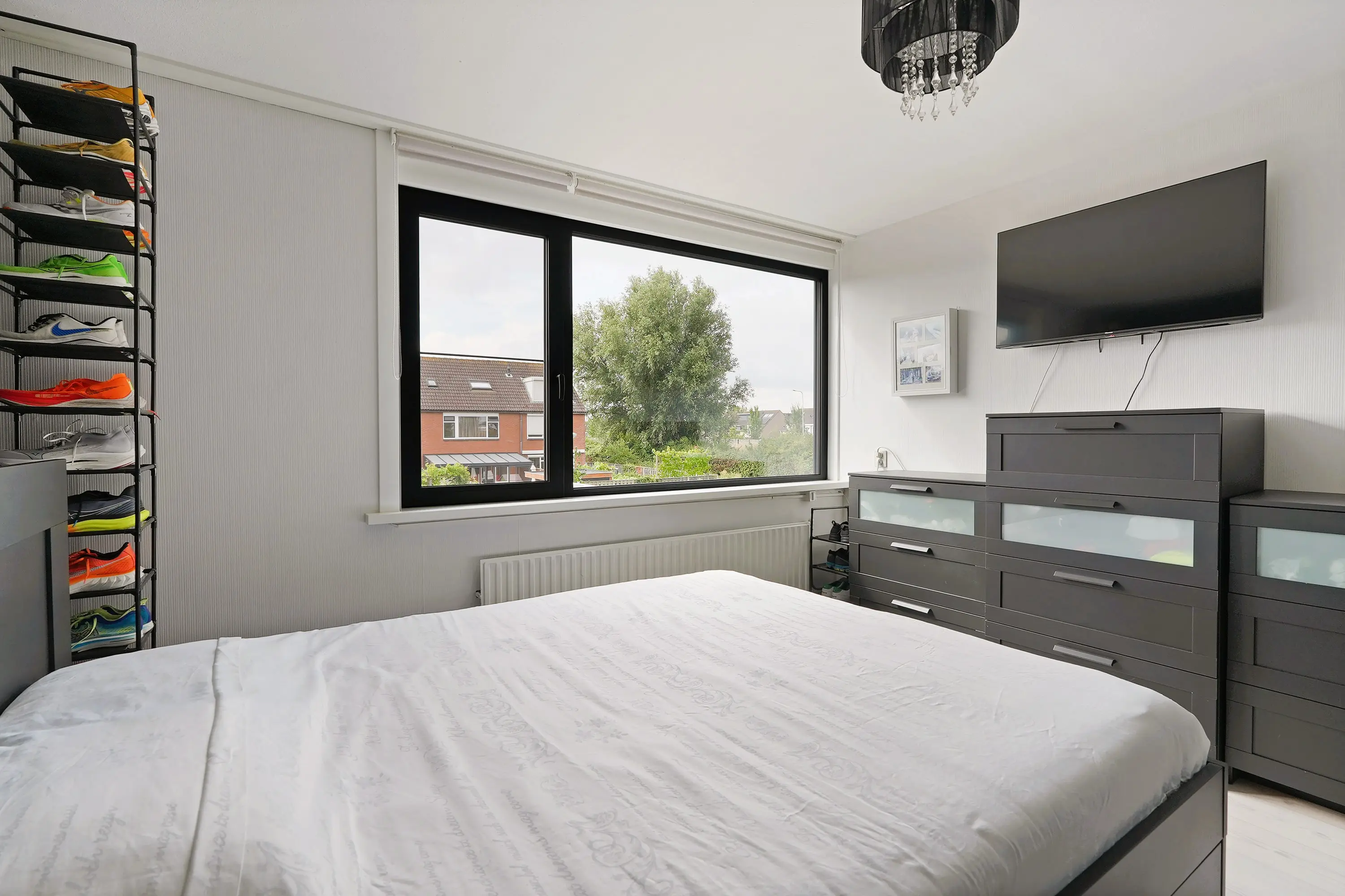 Overloop geeft toegang tot 3 ruime slaapkamers, waaronder de royale ouderslaapkamer aan de tuinzijde met grote raampartijen wat zorgt voor een fijne lichtinval. De moderne badkamer is voorzien van een inloopdouche, tweede toilet en wastafelmeubel.