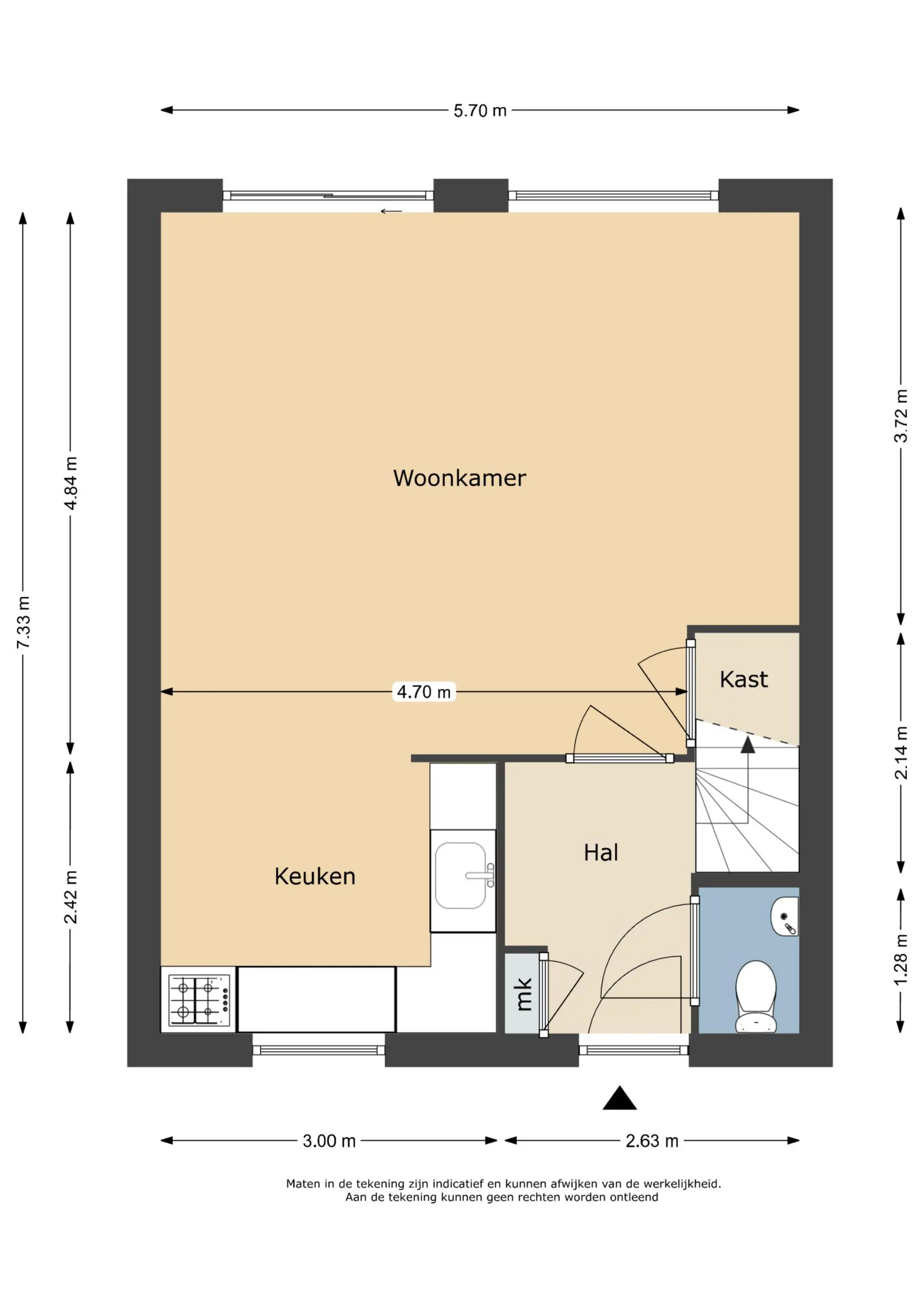 Deze informatie is door ons met de nodige zorgvuldigheid samengesteld. Onzerzijds wordt echter geen enkele aansprakelijkheid aanvaard voor enige onvolledigheid, onjuistheid of anderszins, dan wel de gevolgen daarvan. Alle opgegeven maten en oppervlakten zijn indicatief.