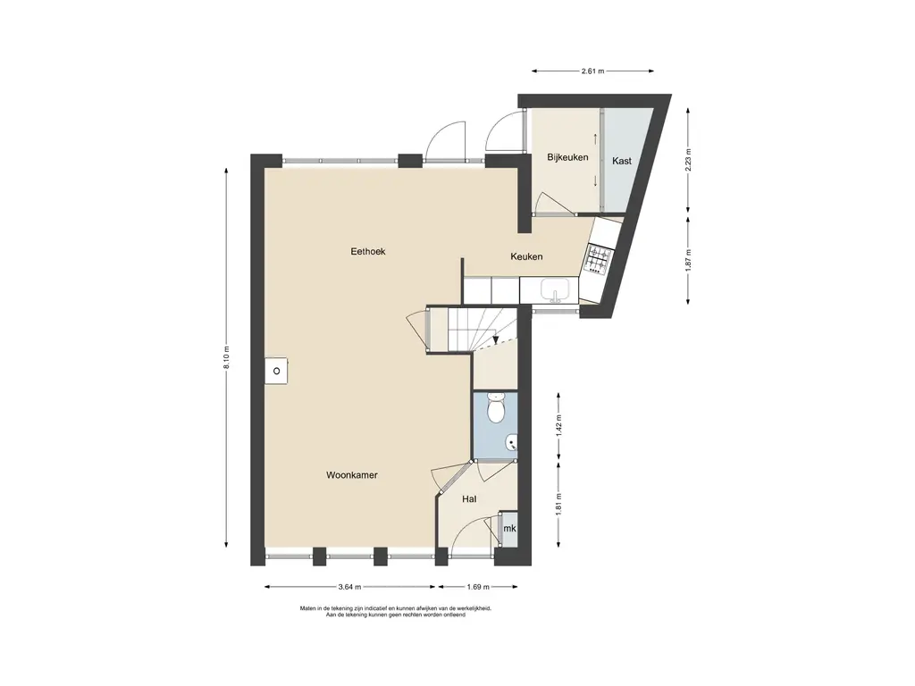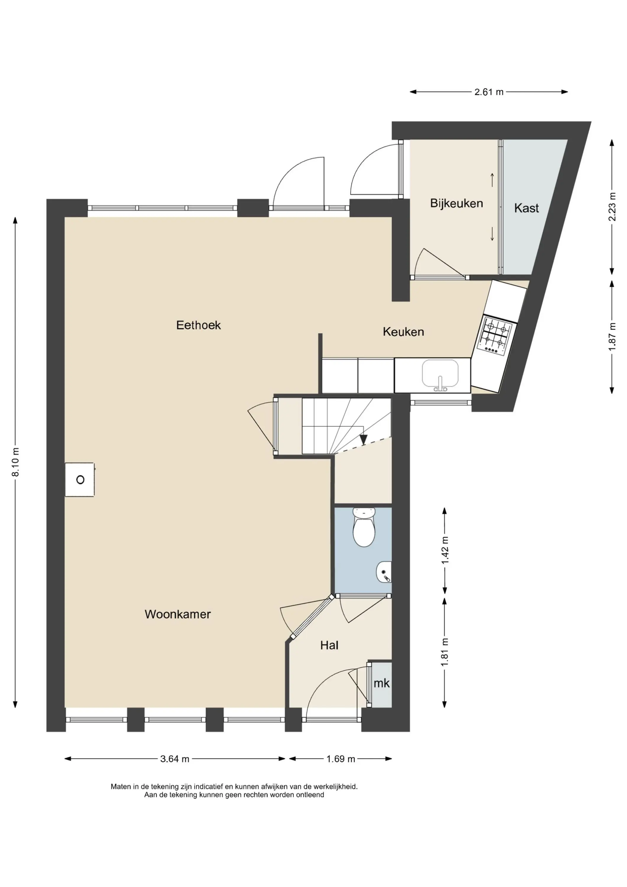 Deze informatie is door ons met de nodige zorgvuldigheid samengesteld. Onzerzijds wordt echter geen enkele aansprakelijkheid aanvaard voor enige onvolledigheid, onjuistheid of anderszins, dan wel de gevolgen daarvan. Alle opgegeven maten en oppervlakten zijn indicatief.