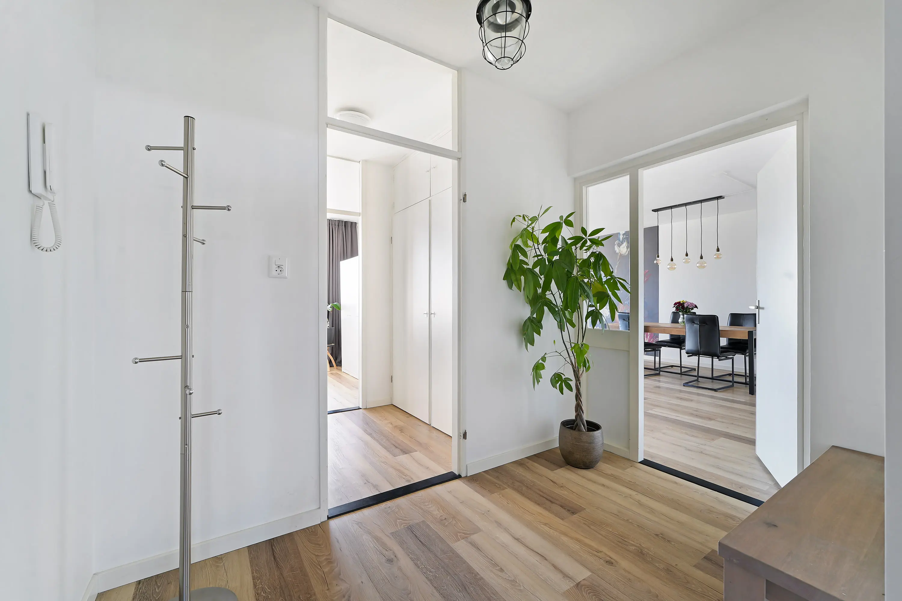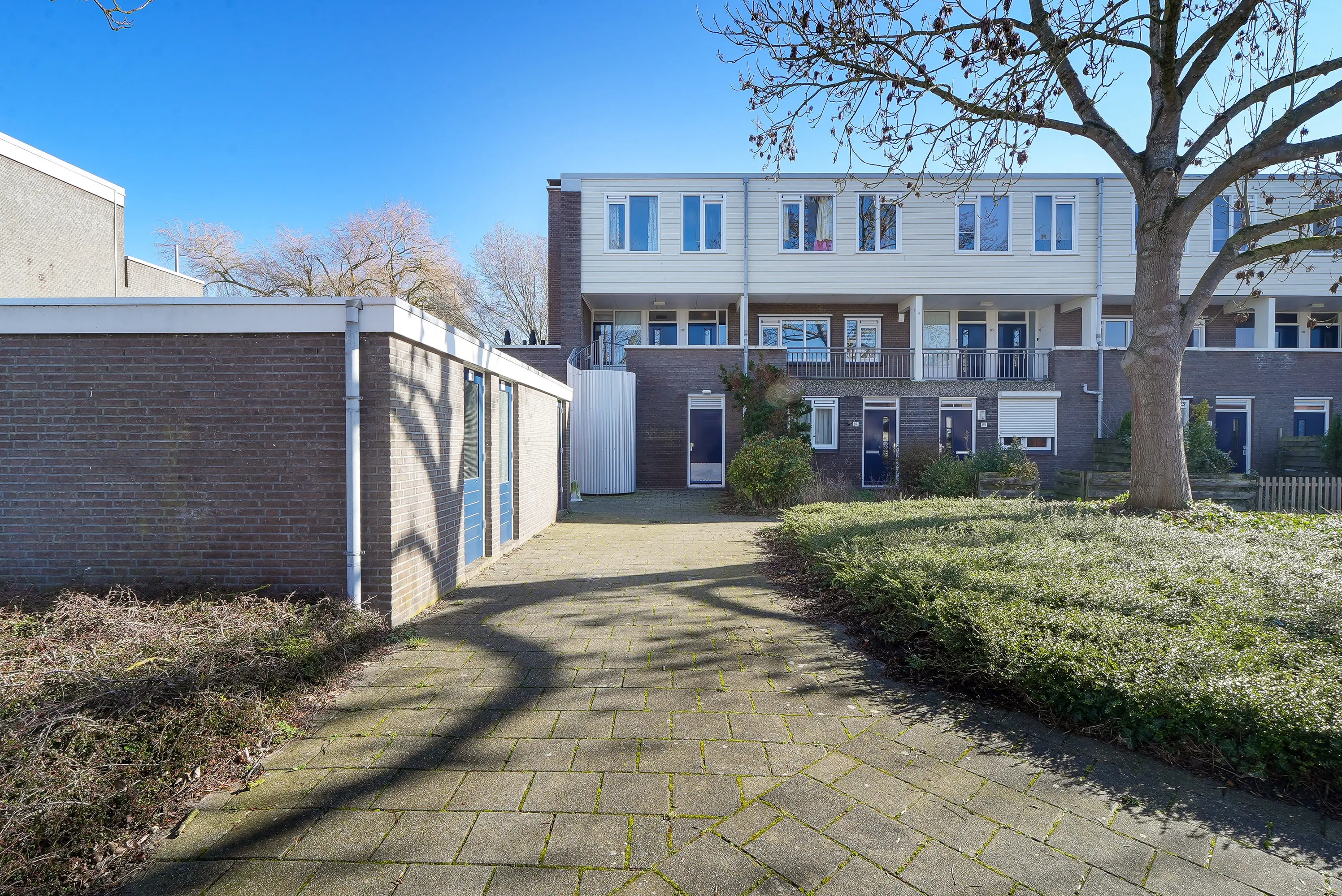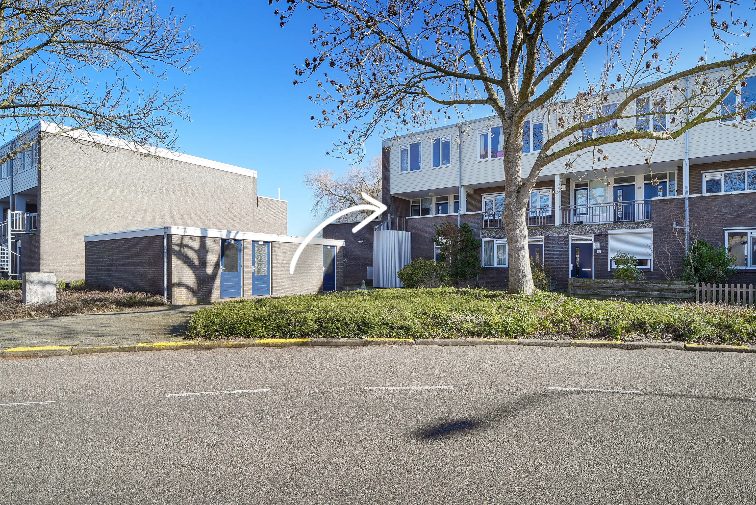 Gesloten portiek met intercom, postbussen en trapopgang naar de 1e verdieping waar zich het appartement bevindt. Verder een eigen (fietsen)berging met elektra.