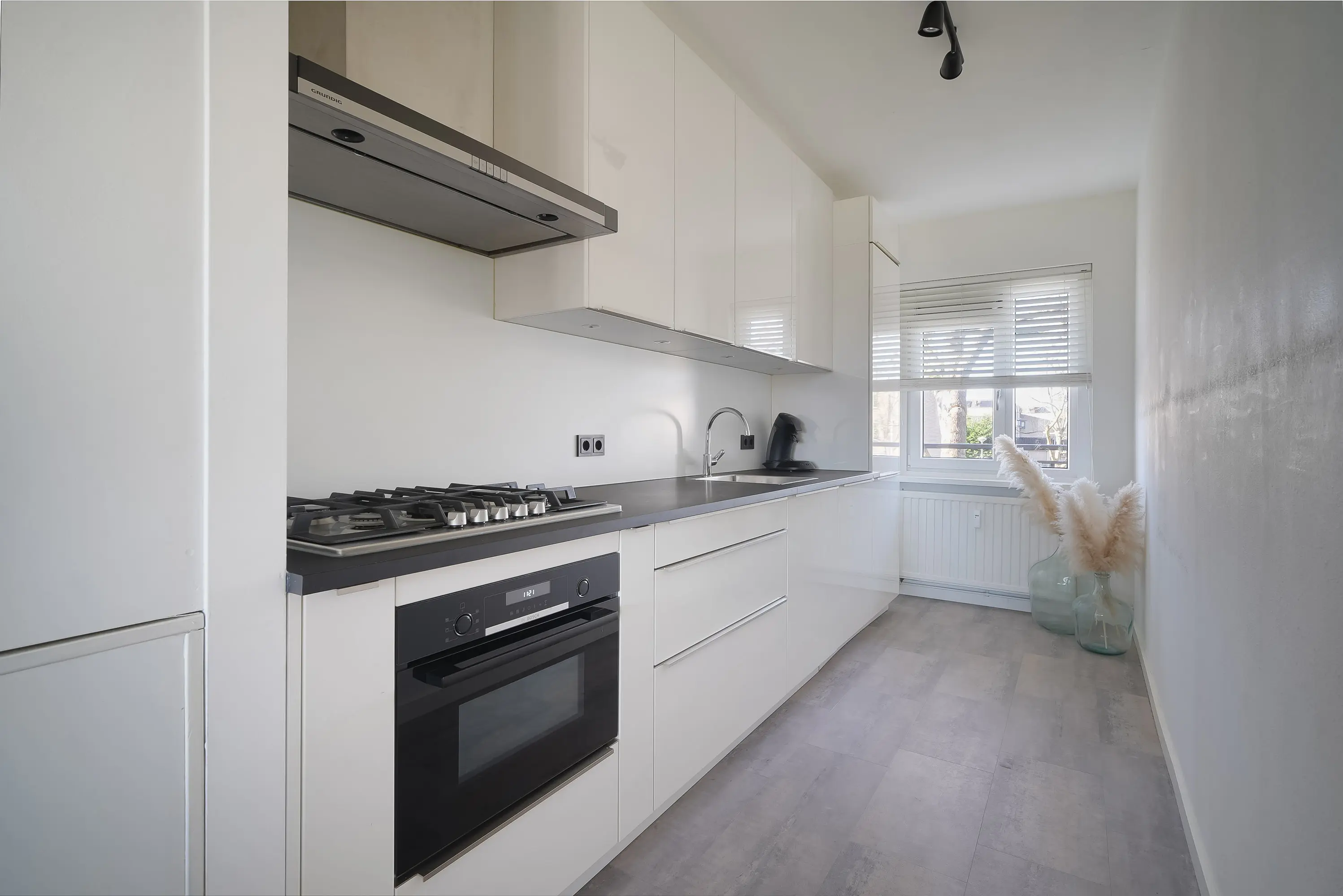 Entree via galerij in ruime centrale hal met meterkast, modern toilet en vanuit hier toegang tot alle woonvertrekken. Bij binnenkomst in de royale woonkamer ervaart u direct de ruimtelijke woonbeleving met een vrij uitzicht aan de balkonzijde. Werkelijk een keurig verzorgd geheel. De lichte strakke keuken bevindt zich aan de voorzijde en is voorzien van de gewenste inbouwapparatuur.