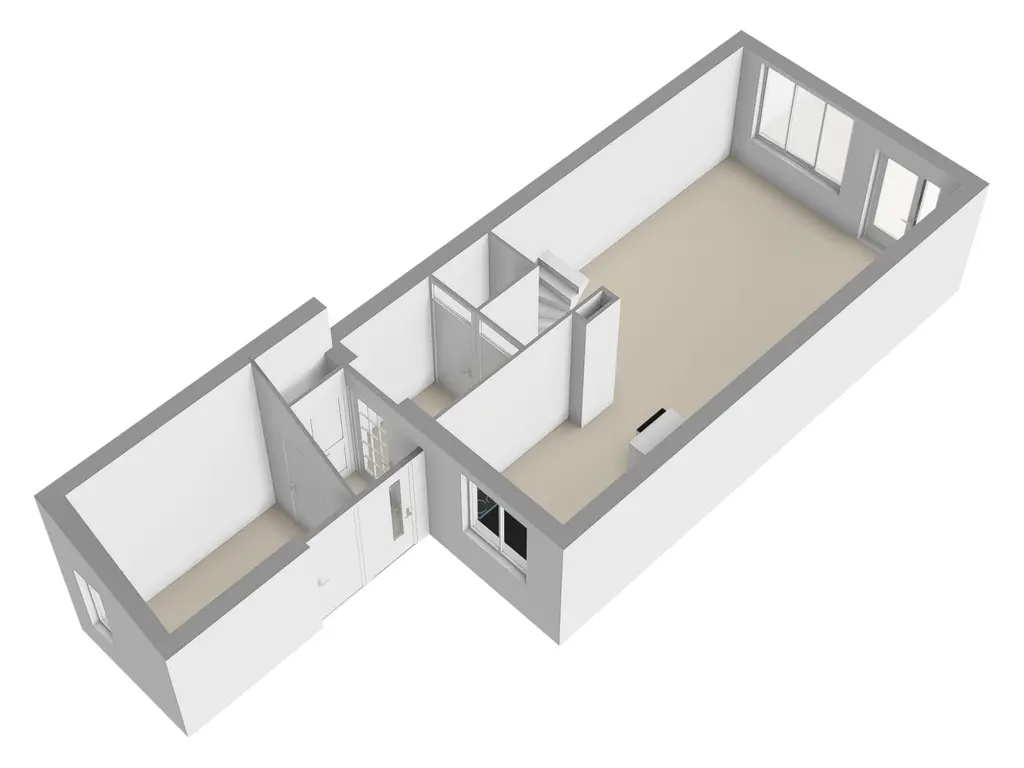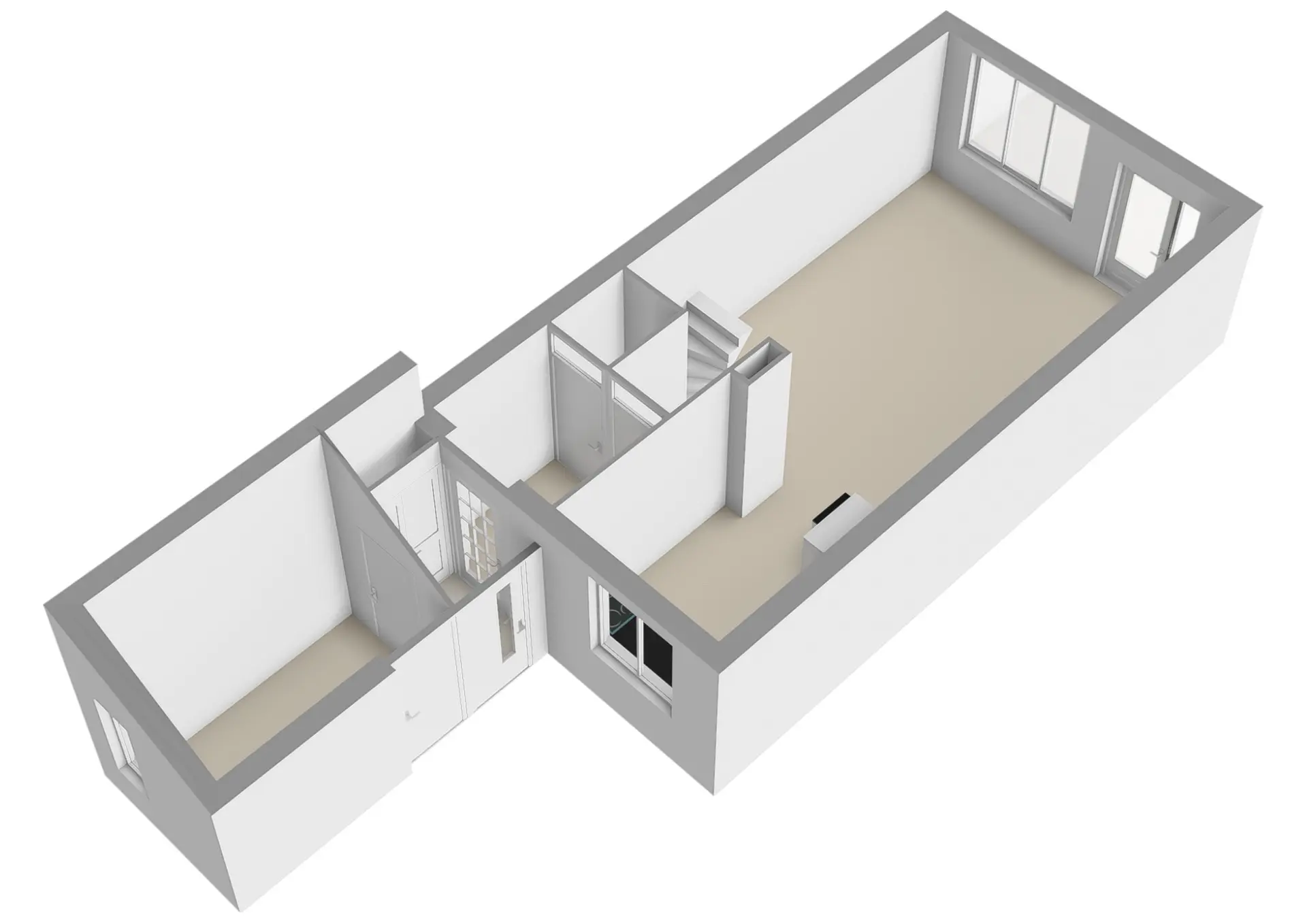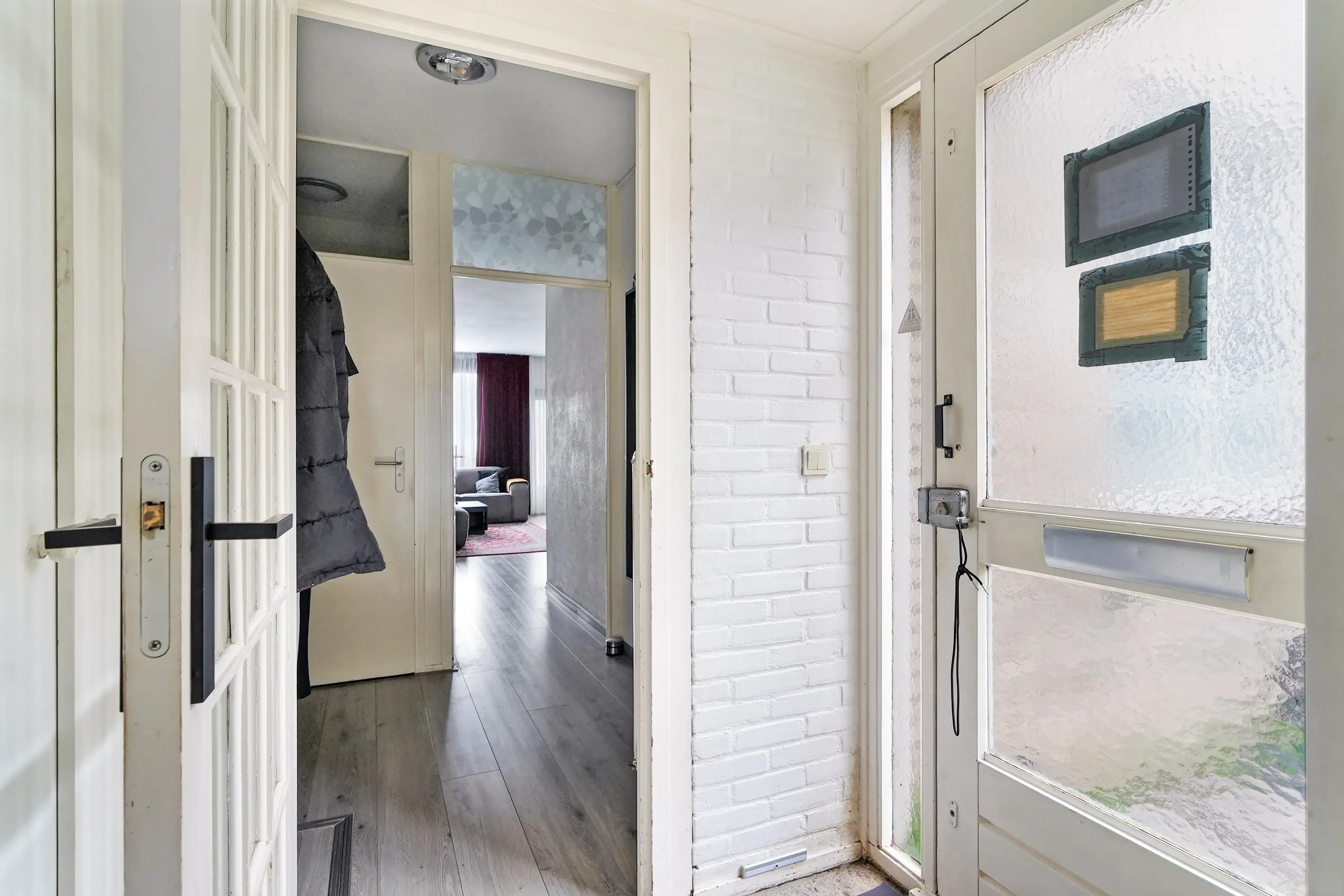 Portaal met toegang tot de hobby-/bergruimte en hal. De hobby-/bergruimte is tevens van buiten te bereiken en is voorzien van verwarming en elektra en is momenteel in gebruik als sportruimte. Via de hal bereik je het nette toilet met fonteintje, tuingerichte en lichte woonkamer met trap naar de 1e verdieping en tuindeur en aansluitend een nette open keuken.