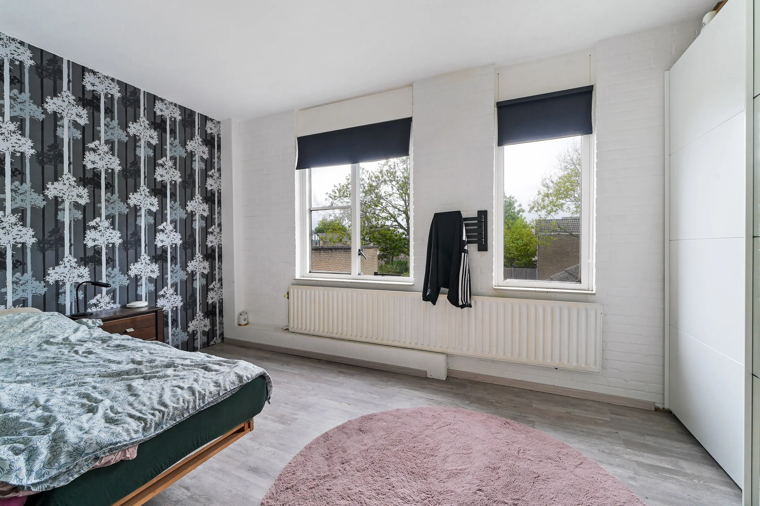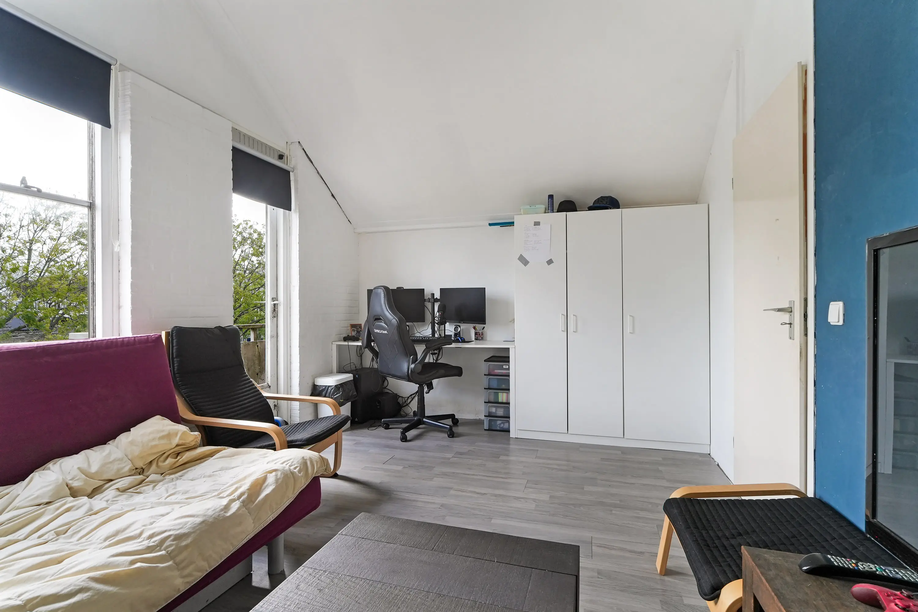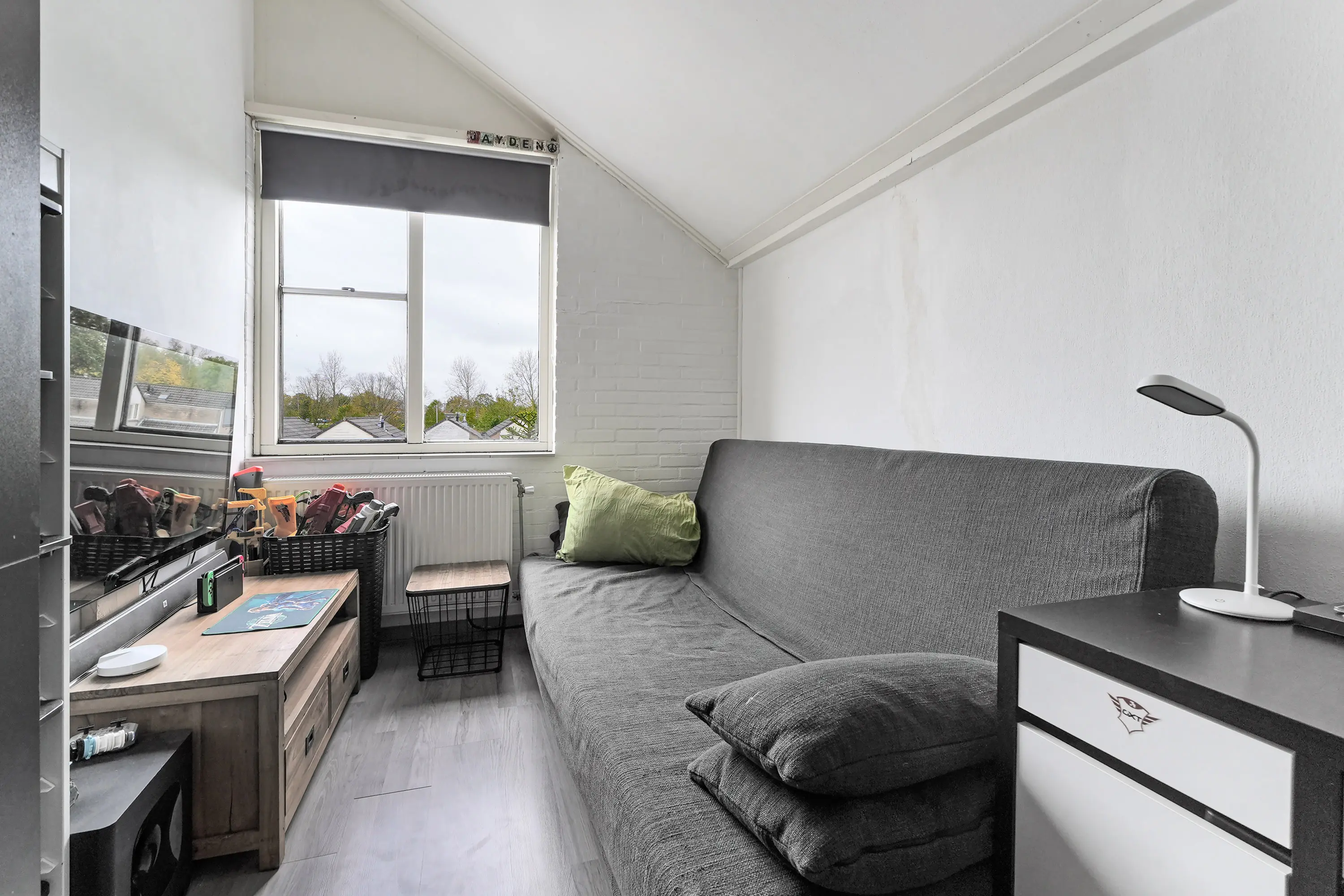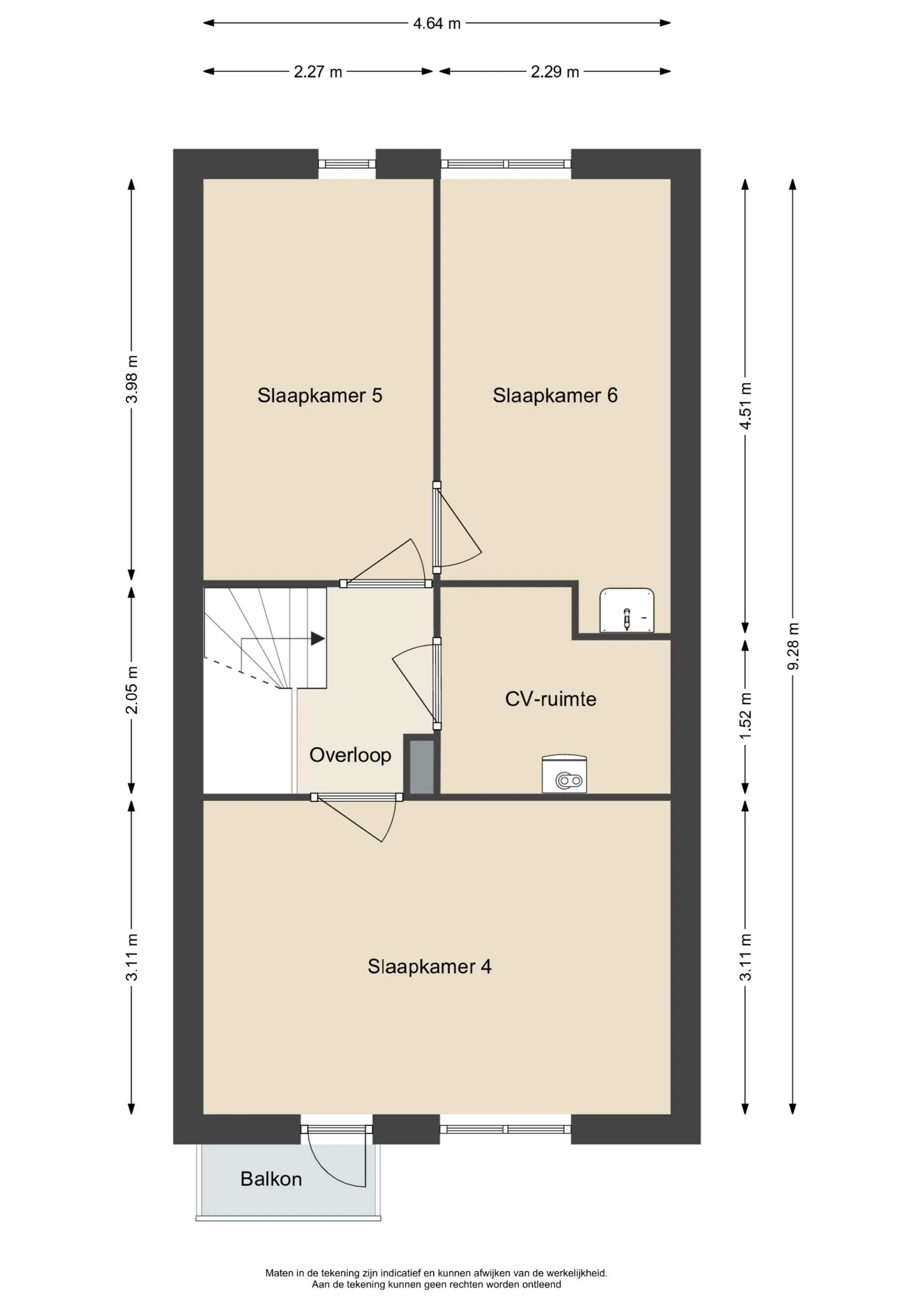 Overloop, c.v.-/wasruimte met opstelling c.v.-ketel, wasmachineaansluiting en unit mechanische ventilatie. Tenslotte slaapkamer 4 en 5 (via een deur met elkaar verbonden) en een grote 6e slaapkamer met klein balkonnetje aan de voorzijde.