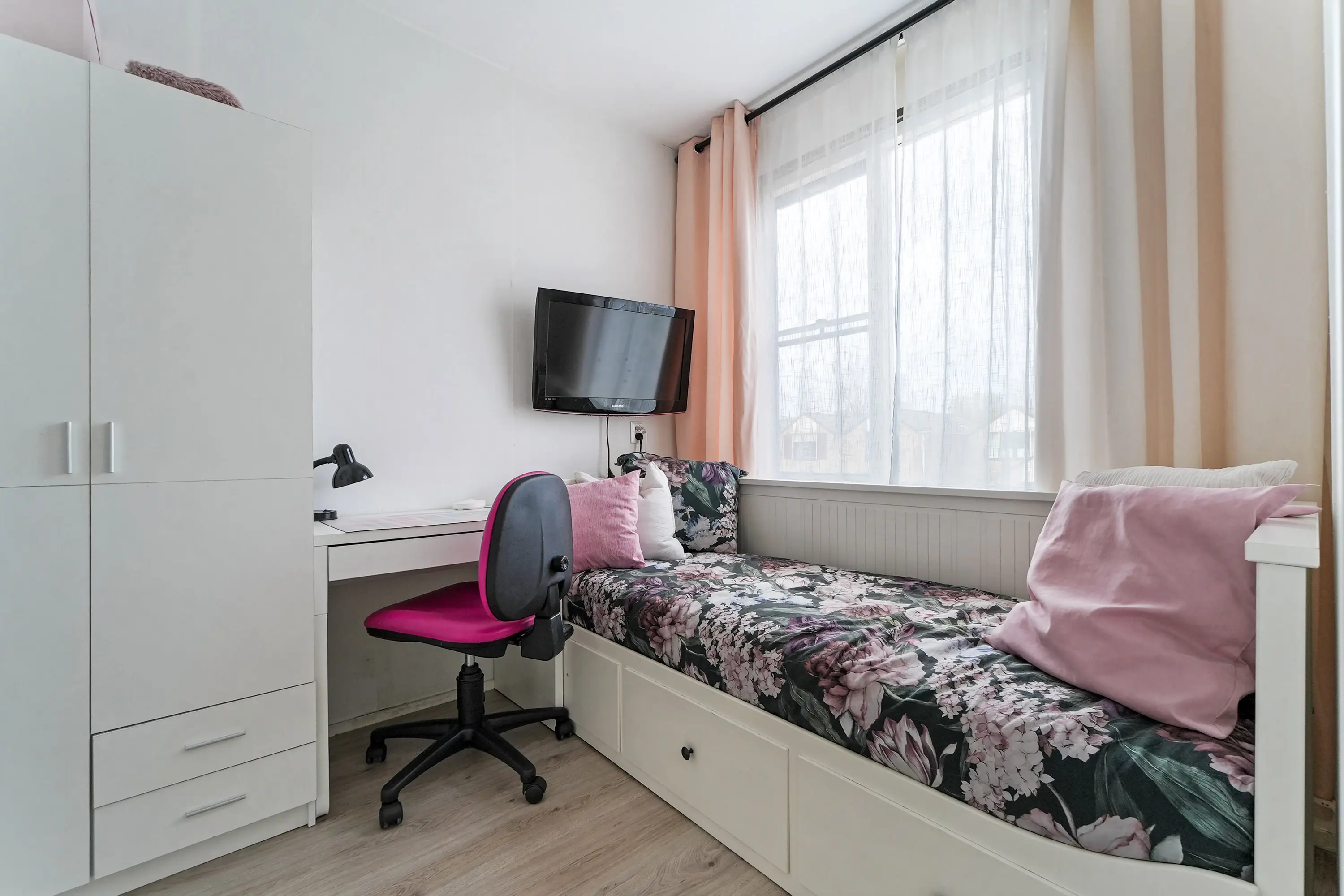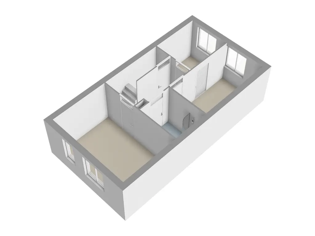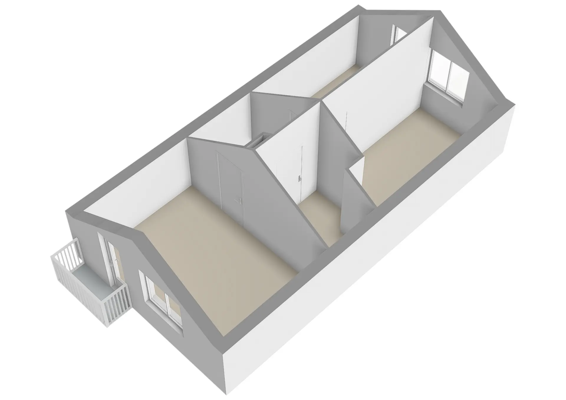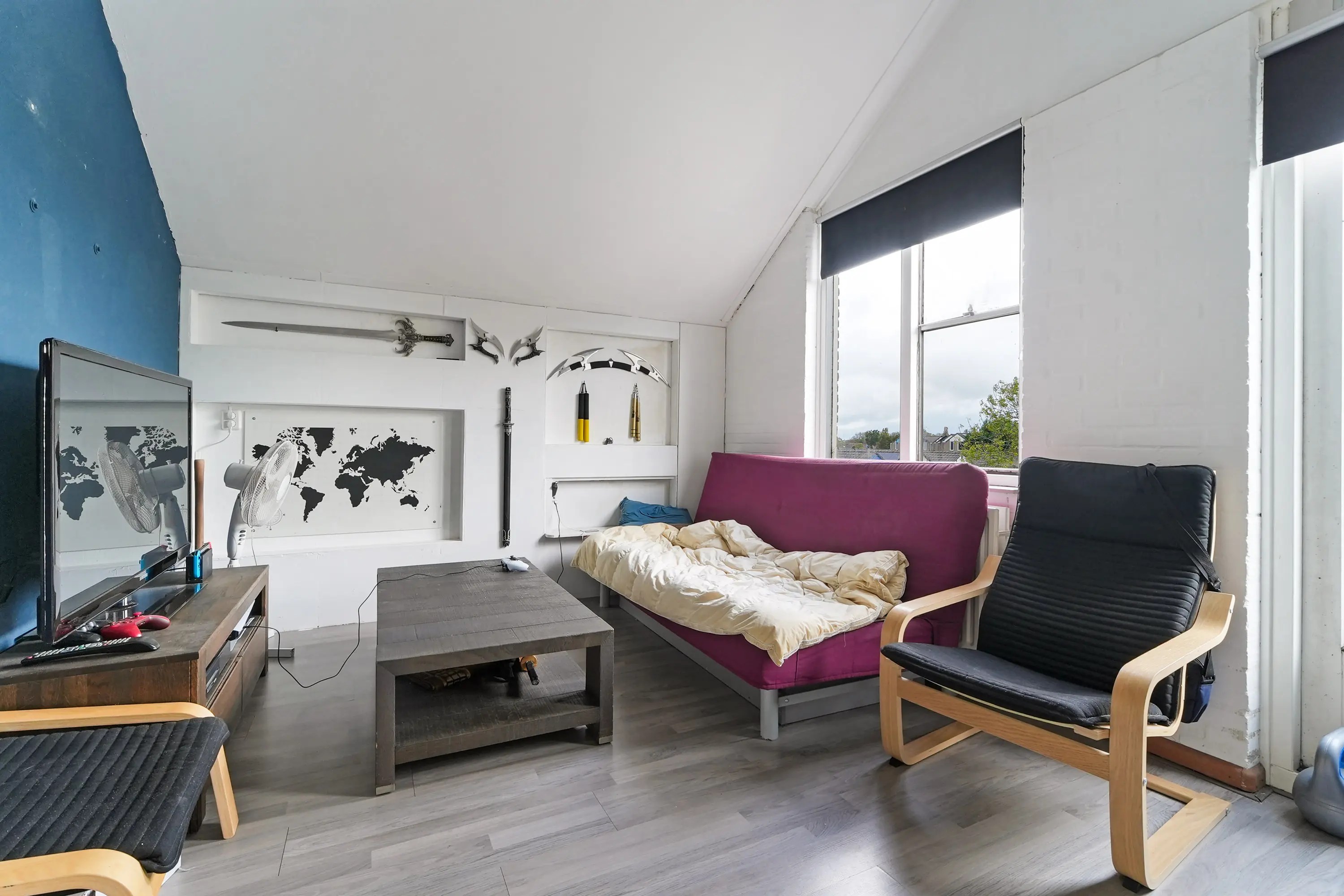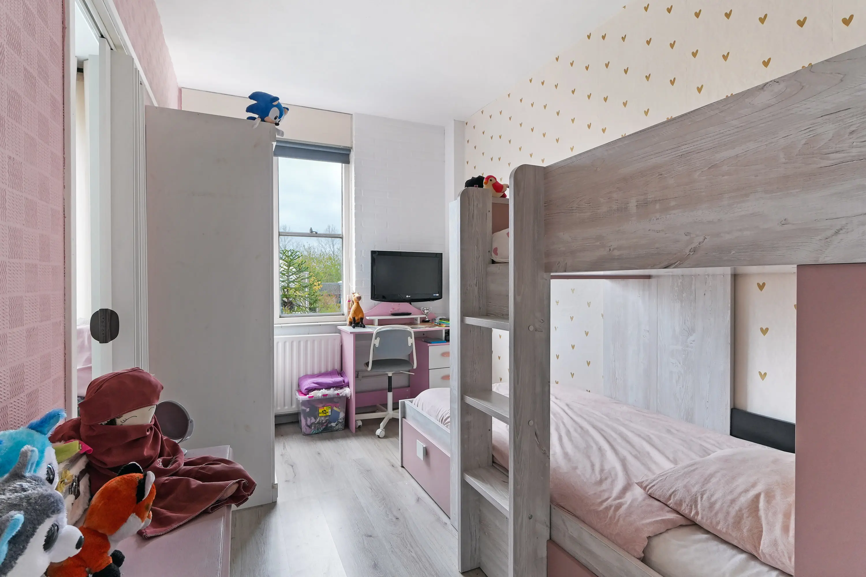 Overloop, c.v.-/wasruimte met opstelling c.v.-ketel, wasmachineaansluiting en unit mechanische ventilatie. Tenslotte slaapkamer 4 en 5 (via een deur met elkaar verbonden) en een grote 6e slaapkamer met klein balkonnetje aan de voorzijde.