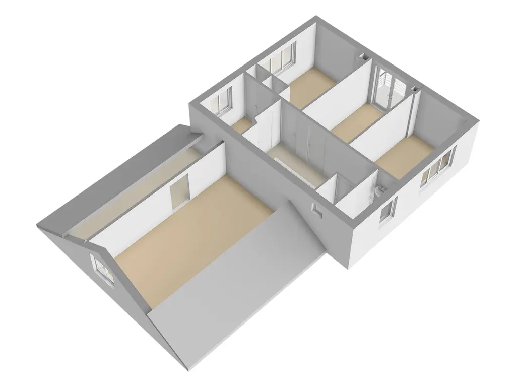 De bijkeuken is ruim opgezet en beschikt over witgoedaansluitingen en een extra groepenkast. Via een vlizotrap bereikt u een extra verdieping, momenteel in gebruik als berging. Met een vaste trap kunt u hier eenvoudig extra woonoppervlakte realiseren.