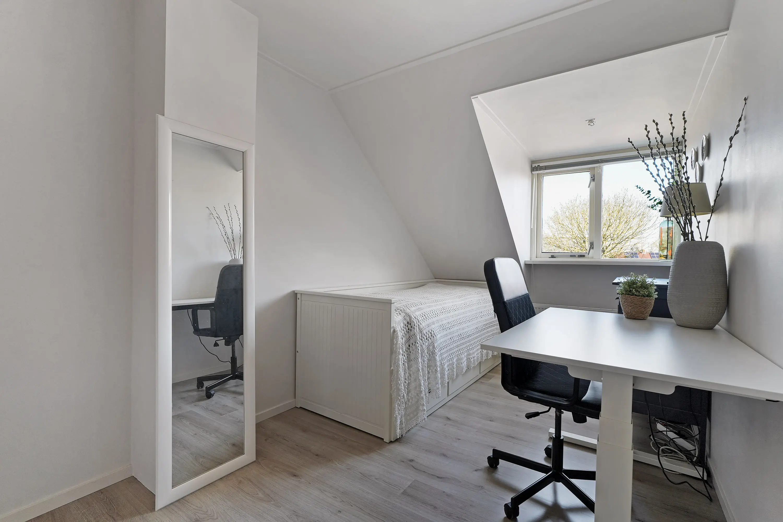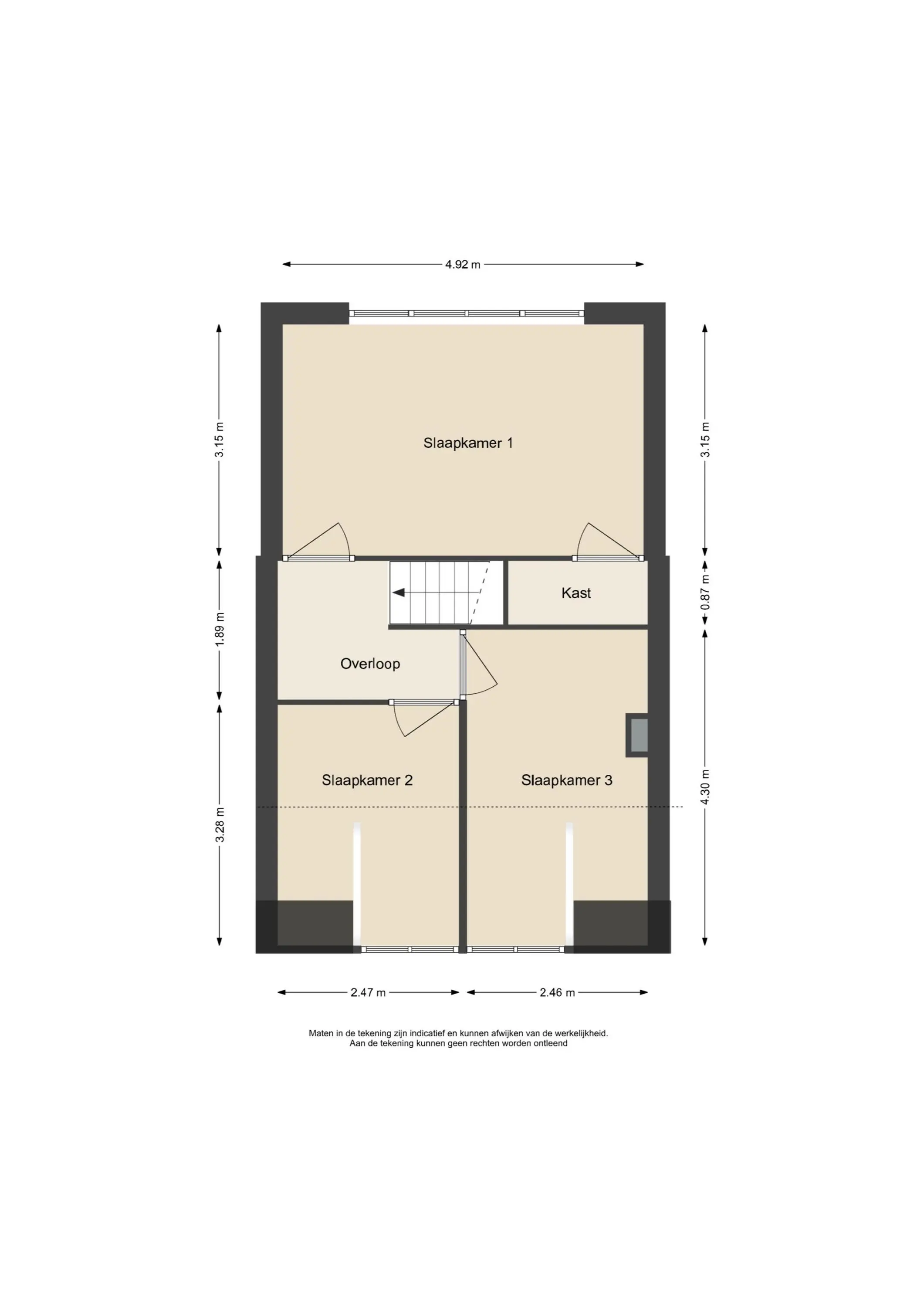 Op de verdieping bevinden zich drie volwaardige slaapkamers. De ruime hoofdslaapkamer biedt volop comfort, terwijl de twee overige kamers ideaal zijn als kinder-, werk- of logeerkamer. Hierdoor is de woning geschikt voor uiteenlopende woonwensen en doelgroepen.