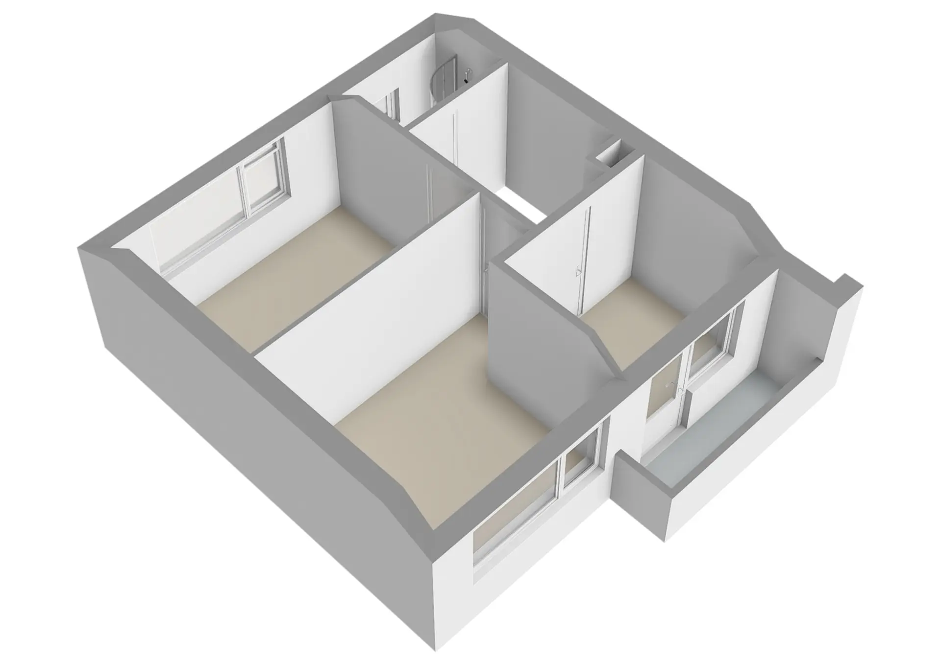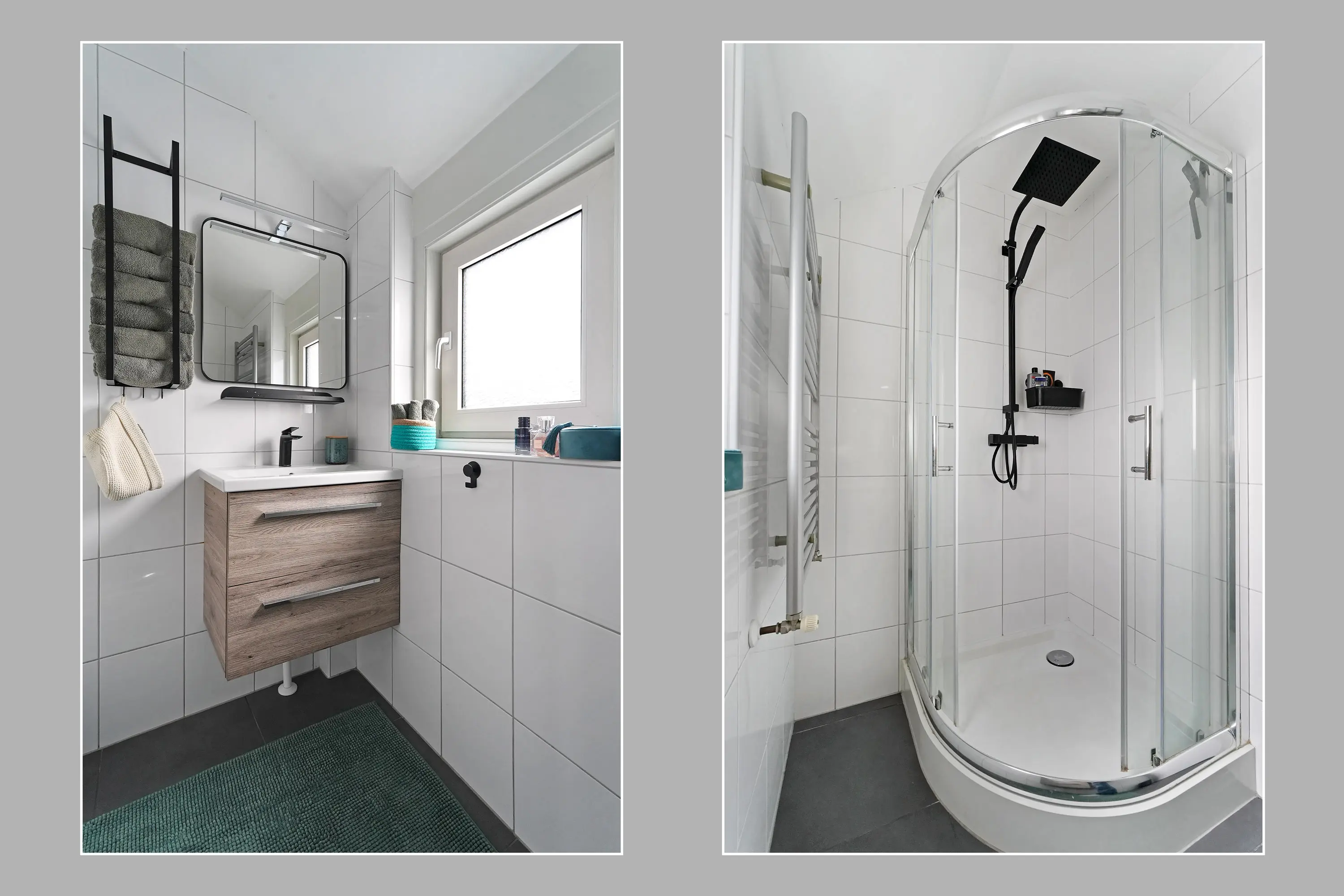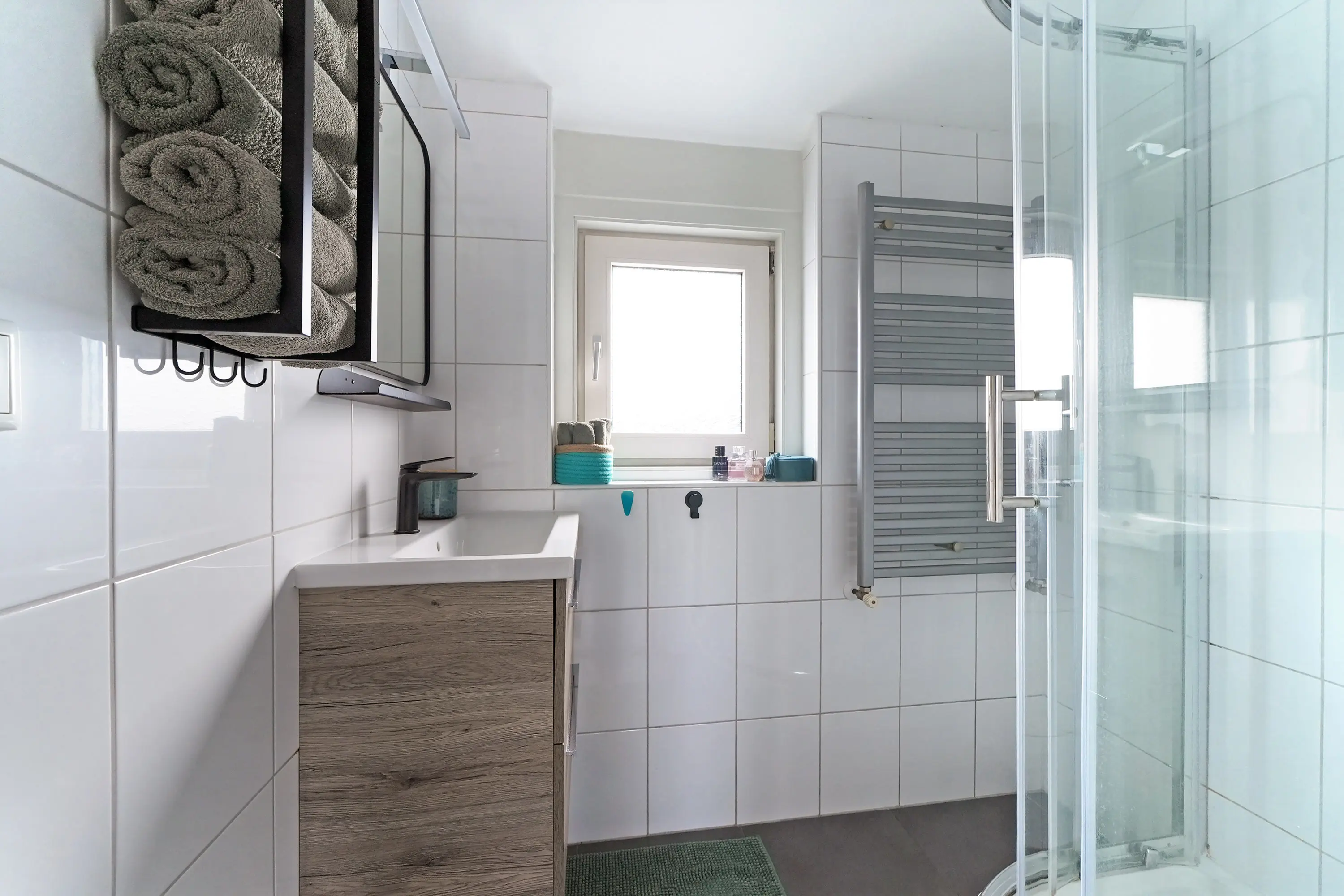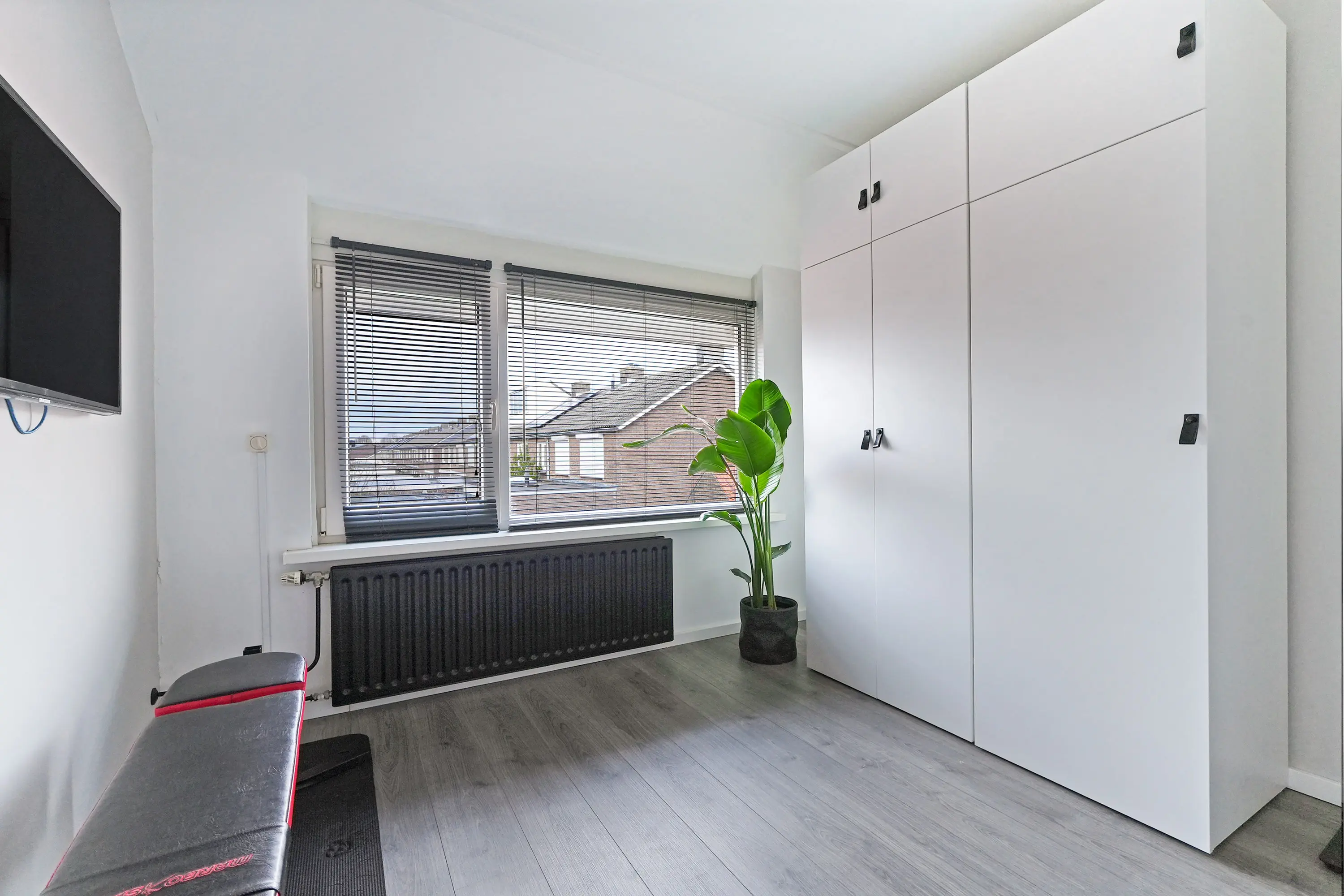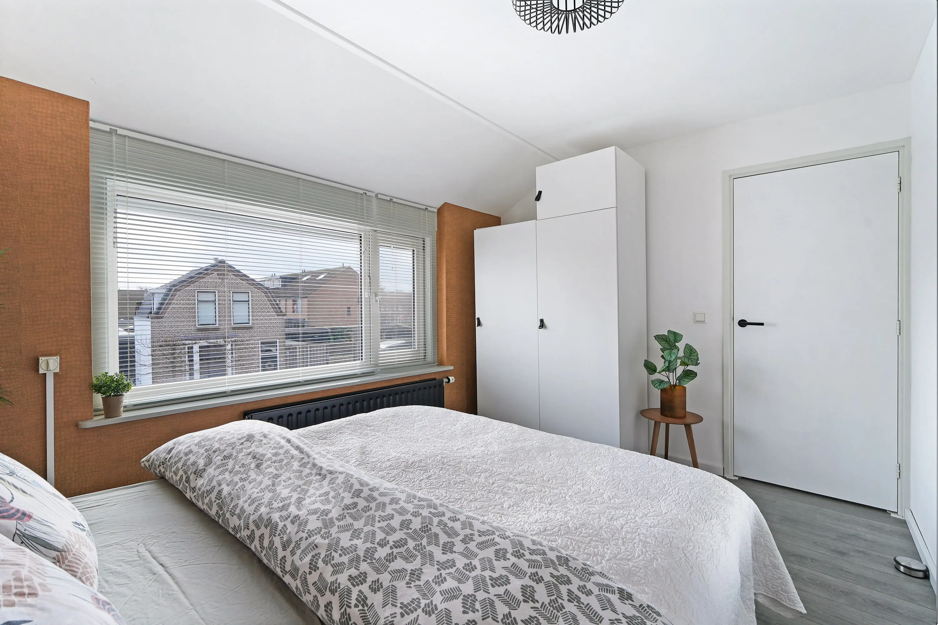 De overloop biedt toegang tot twee ruime kamers waarvan één aan voorzijde en de tweede aan achterzijde. De kleinste derde slaapkamer is in gebruik als waskamer. De badkamer is eveneens te bereiken via de overloop en is voorzien van een nette douche en wastafelmeubel.