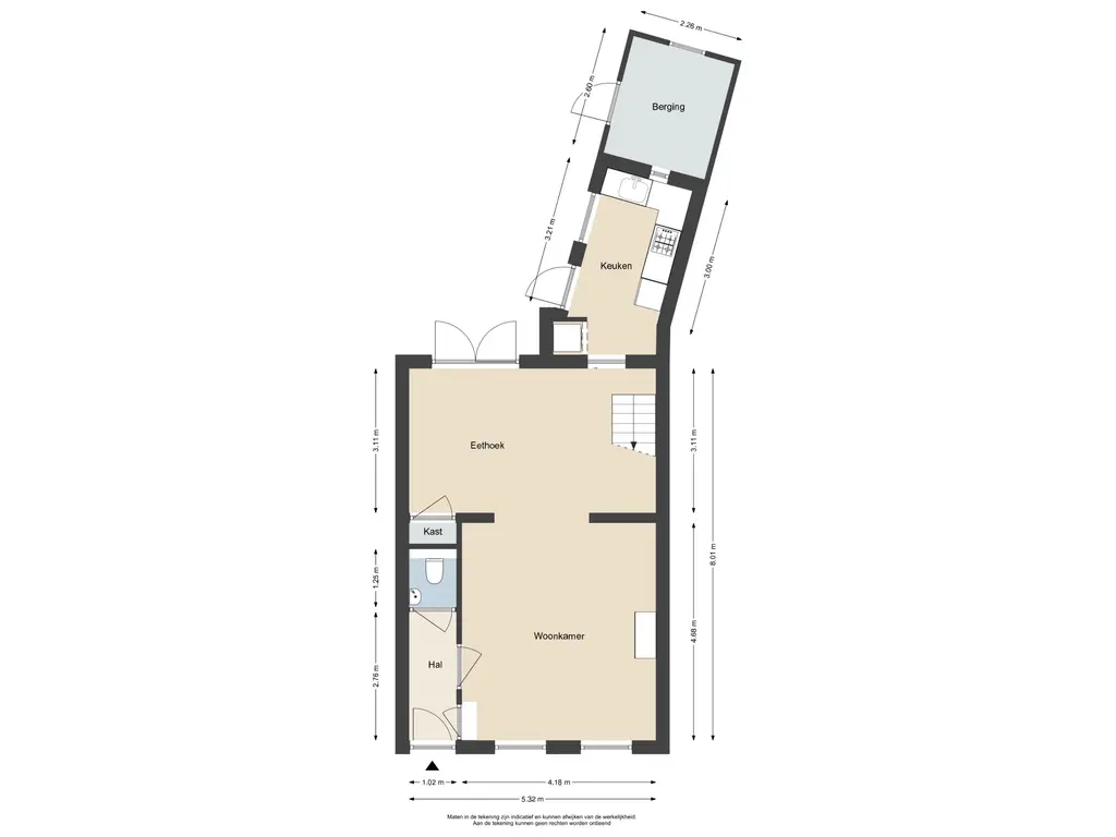 Deze informatie is door ons met de nodige zorgvuldigheid samengesteld. Onzerzijds wordt echter geen enkele aansprakelijkheid aanvaard voor enige onvolledigheid, onjuistheid of anderszins, dan wel de gevolgen daarvan. Alle opgegeven maten en oppervlakten zijn indicatief.