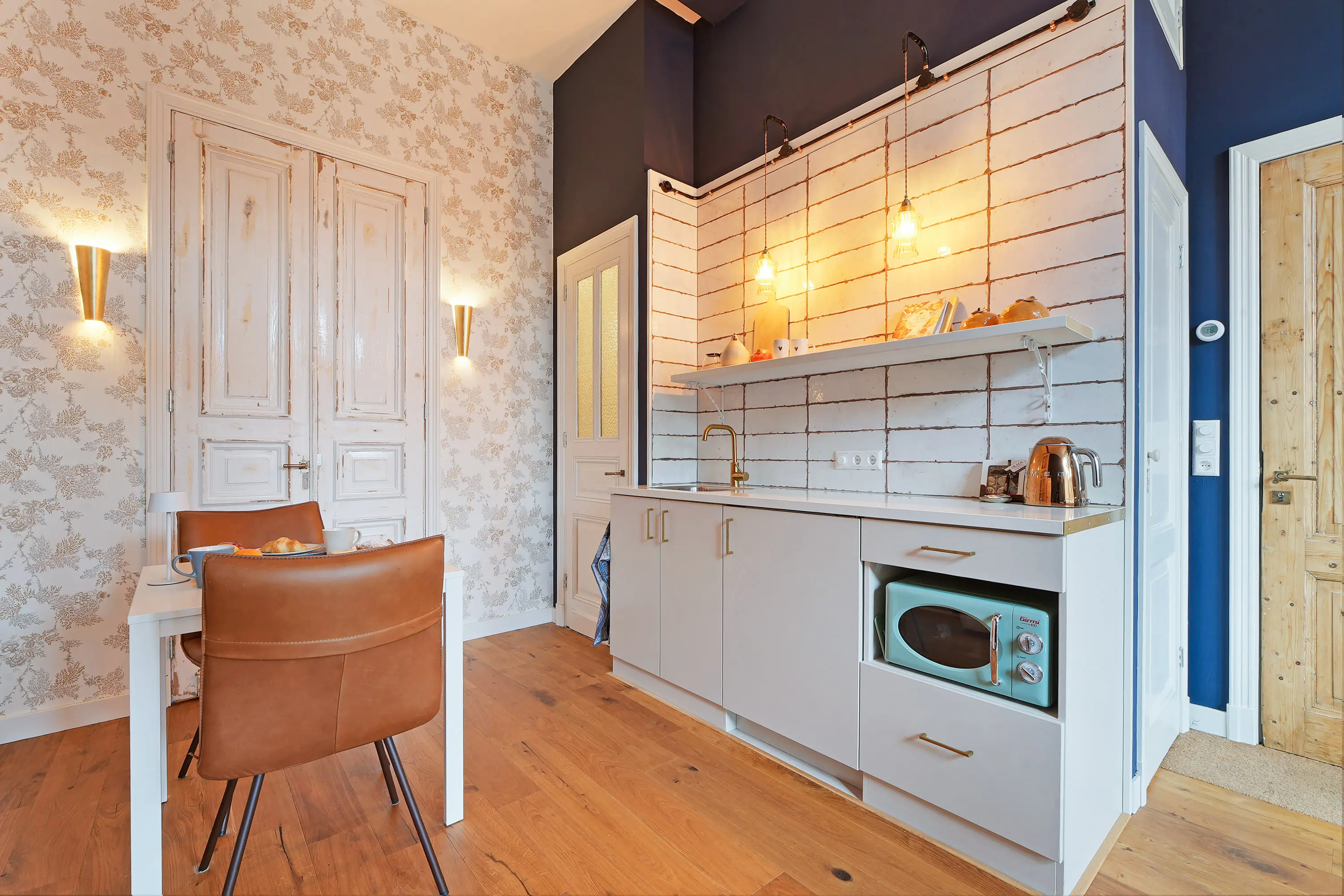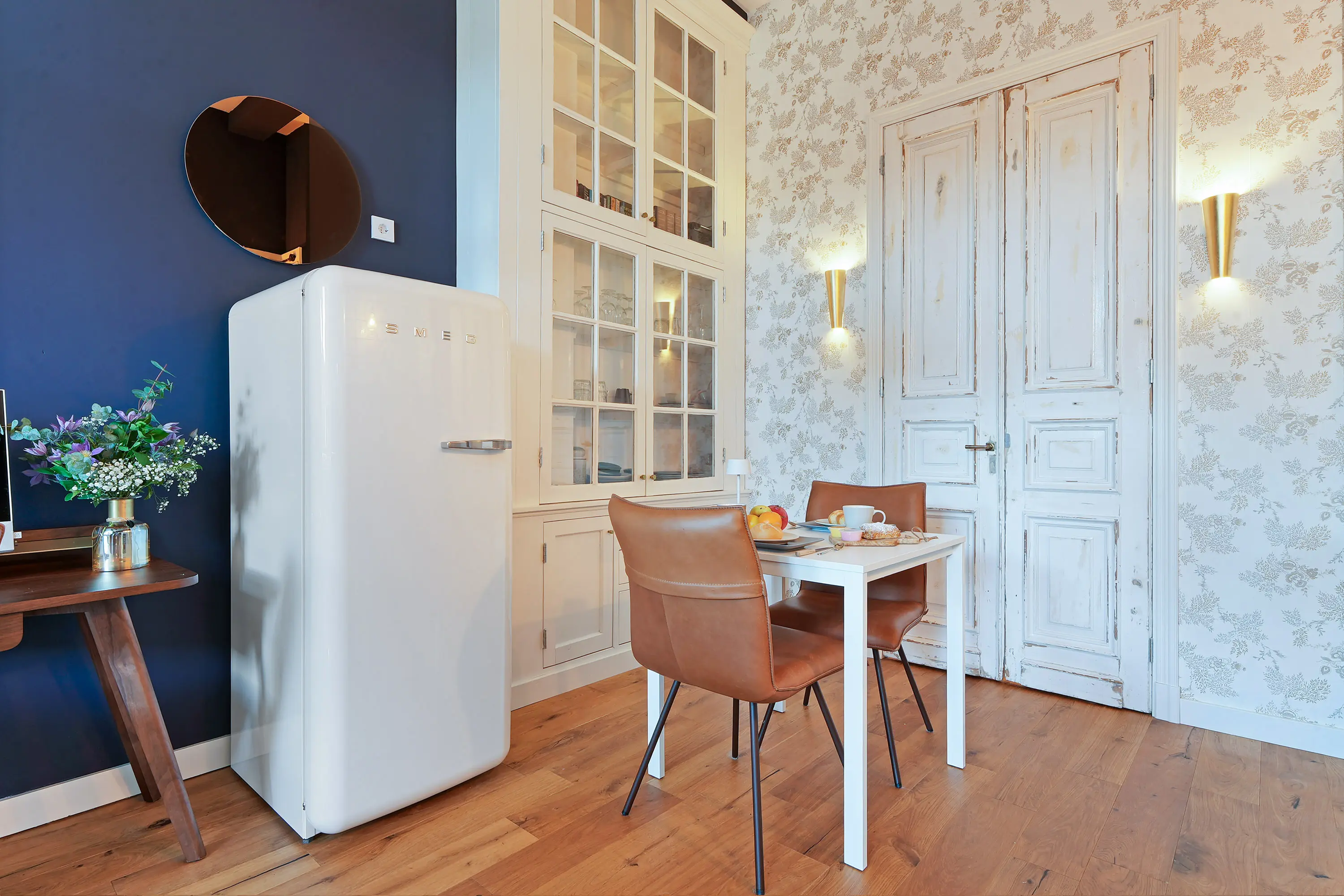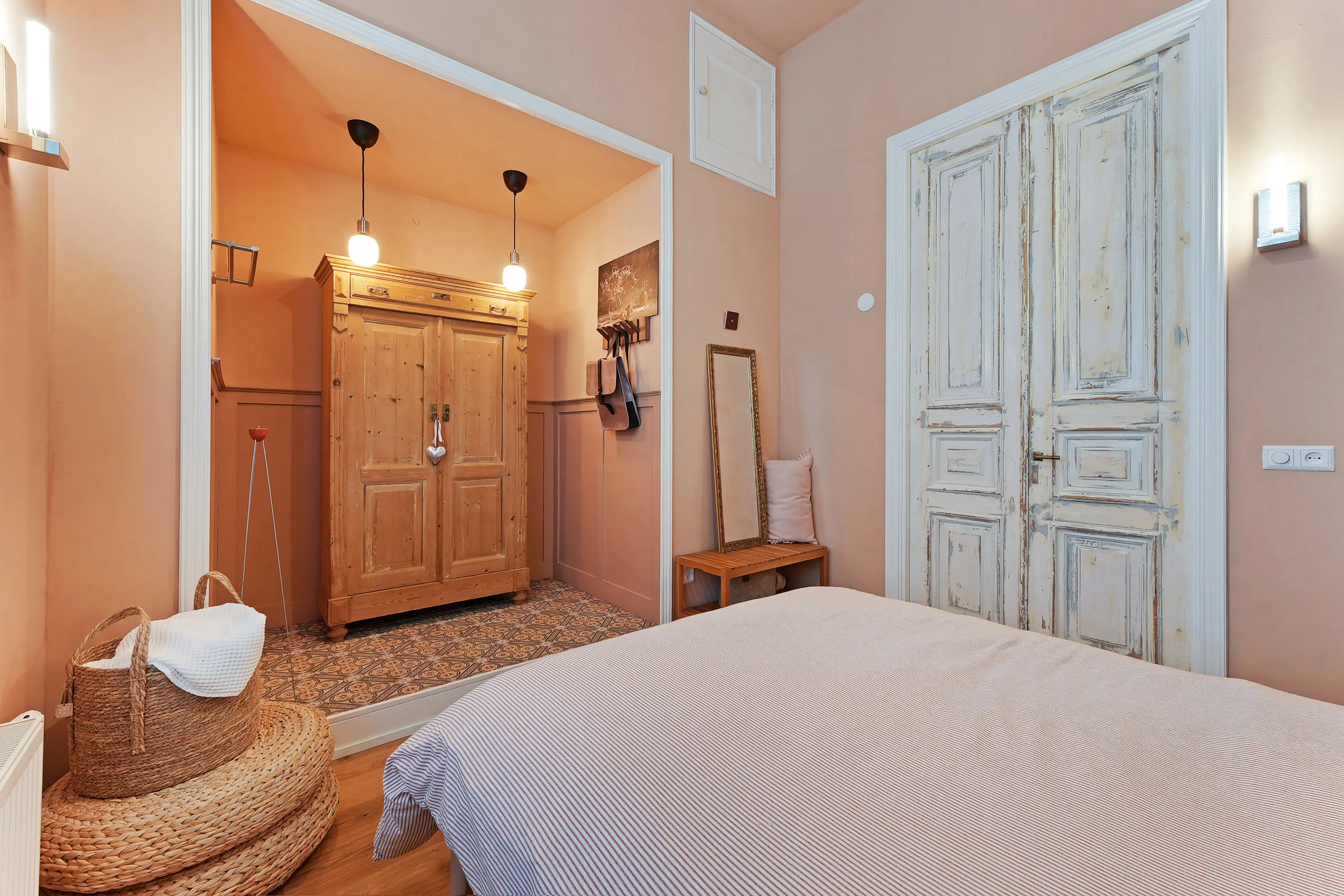 Het appartement bevindt zich op de begane grond en is in 2024 grondig gemoderniseerd, waarbij authentieke details zorgvuldig zijn behouden.