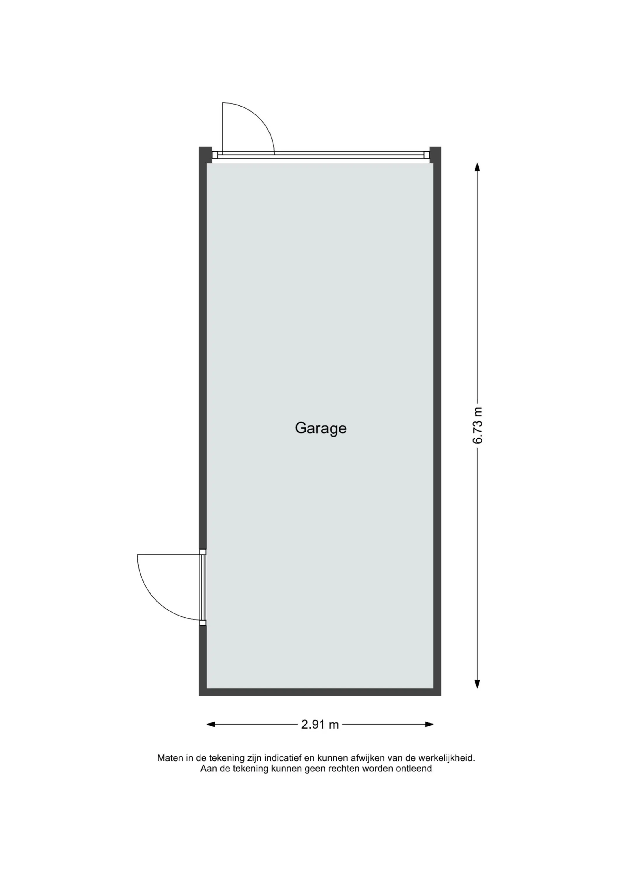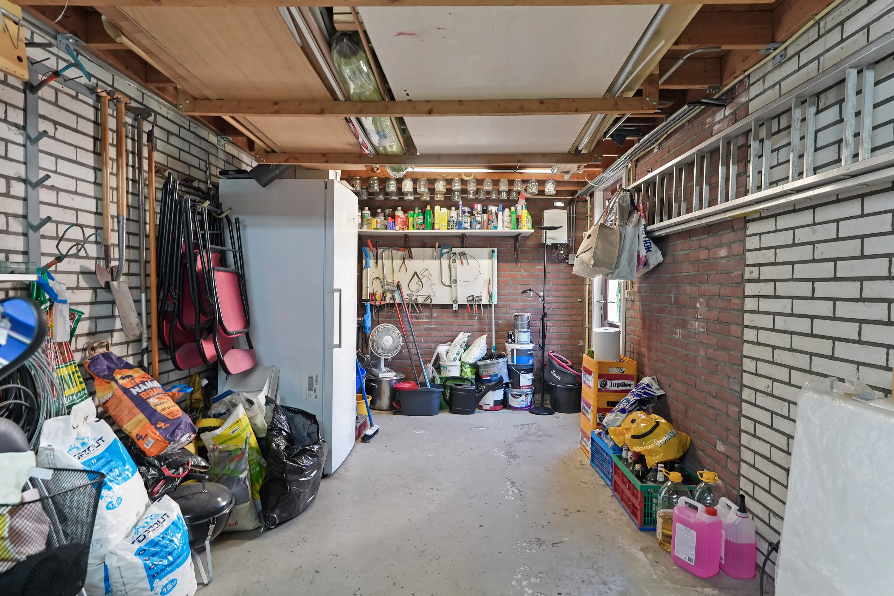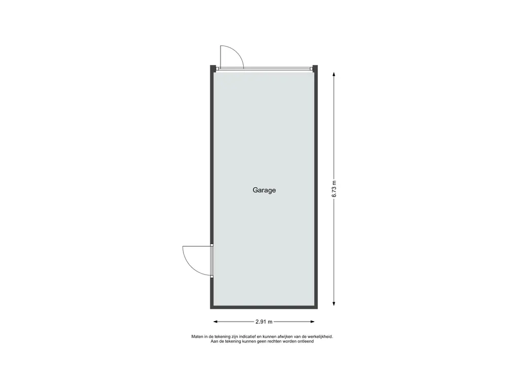 Via de tuin is de garage te bereiken. De garage is 6,73 meter diep, 2,91 meter breed en biedt volop ruimte voor opslag, motor, fietsen of auto.