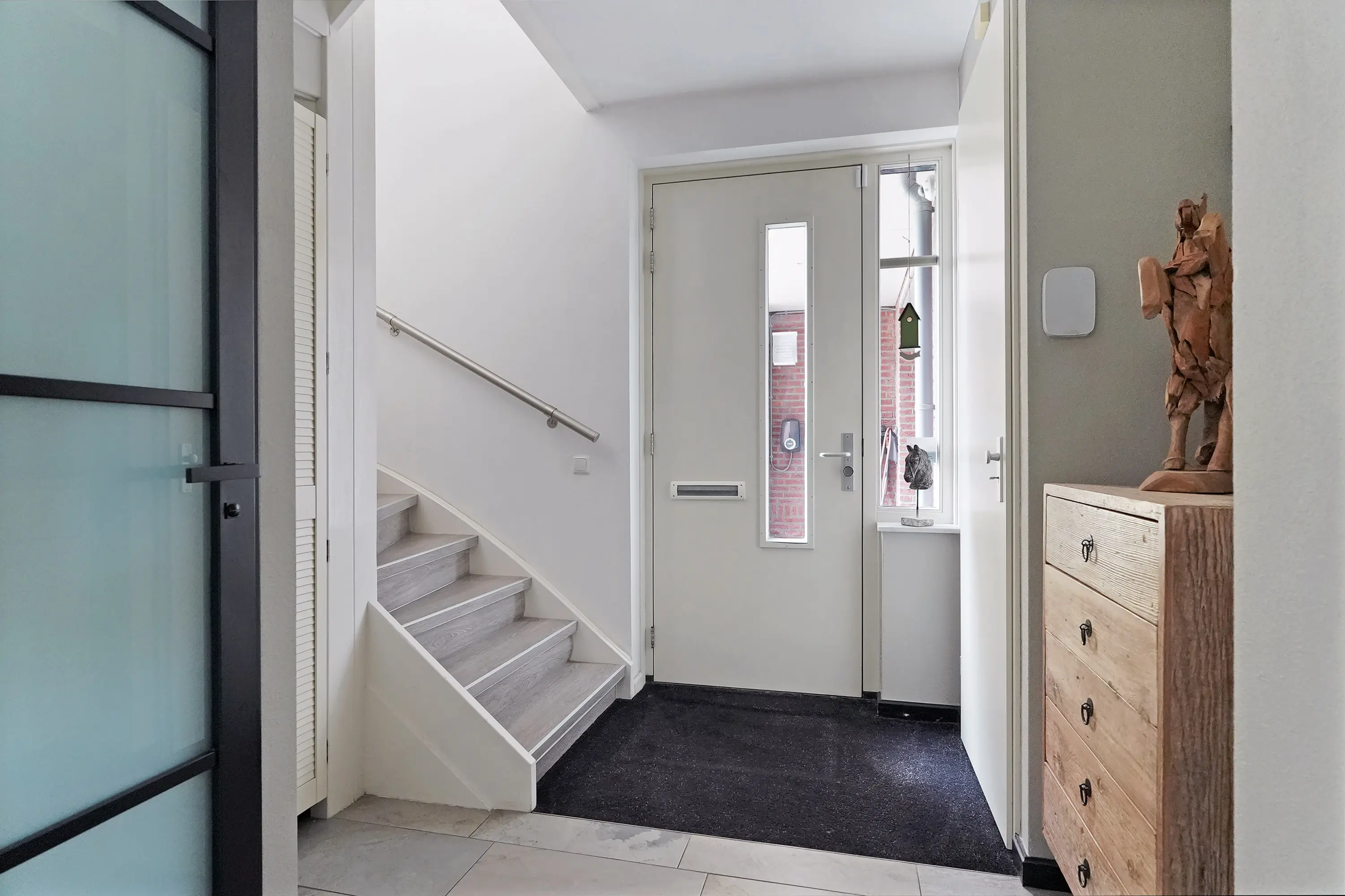 Via de eigen oprit bereikt u de entree met overstek, welke toegang biedt tot de welkomsthal. De riante hal met meterkast, trapopgang naar de 1e verdieping, praktische trapkast, toilet en toegang tot de woonkamer. Bij binnenkomst in de woonkamer ervaart u direct de ruimtelijkheid en de ideale indeling met de riante zithoek aan de voorzijde. De sfeervolle erker maakt dit plaatje compleet. Een heerlijke plek om te ontspannen met uitzicht op het groene hof.