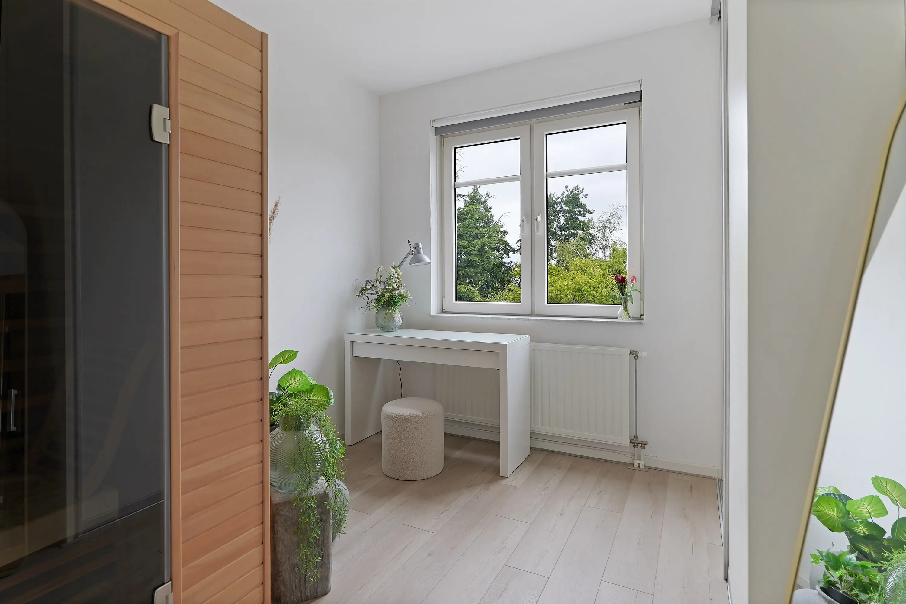 Met een royaal woonoppervlak van maar liefst 182 m² geniet u hier onder andere van een lichte, royale woonkamer met de riante zithoek aan de voorzijde en de breed opgezette woonkeuken aan de tuinzijde. Aansluitend vindt u een praktische bijkeuken en de inpandig bereikbare garage. Verder zijn er maar liefst vijf slaapkamers, waaronder de riante ouderslaapkamer over de volle breedte van de woning, en luxe sanitair met separaat toilet op de 1e verdieping. En dan de tuin: een ware parel met volledige vrijheid, zon en privacy! Smaakvol, groen en onder architectuur aangelegd.