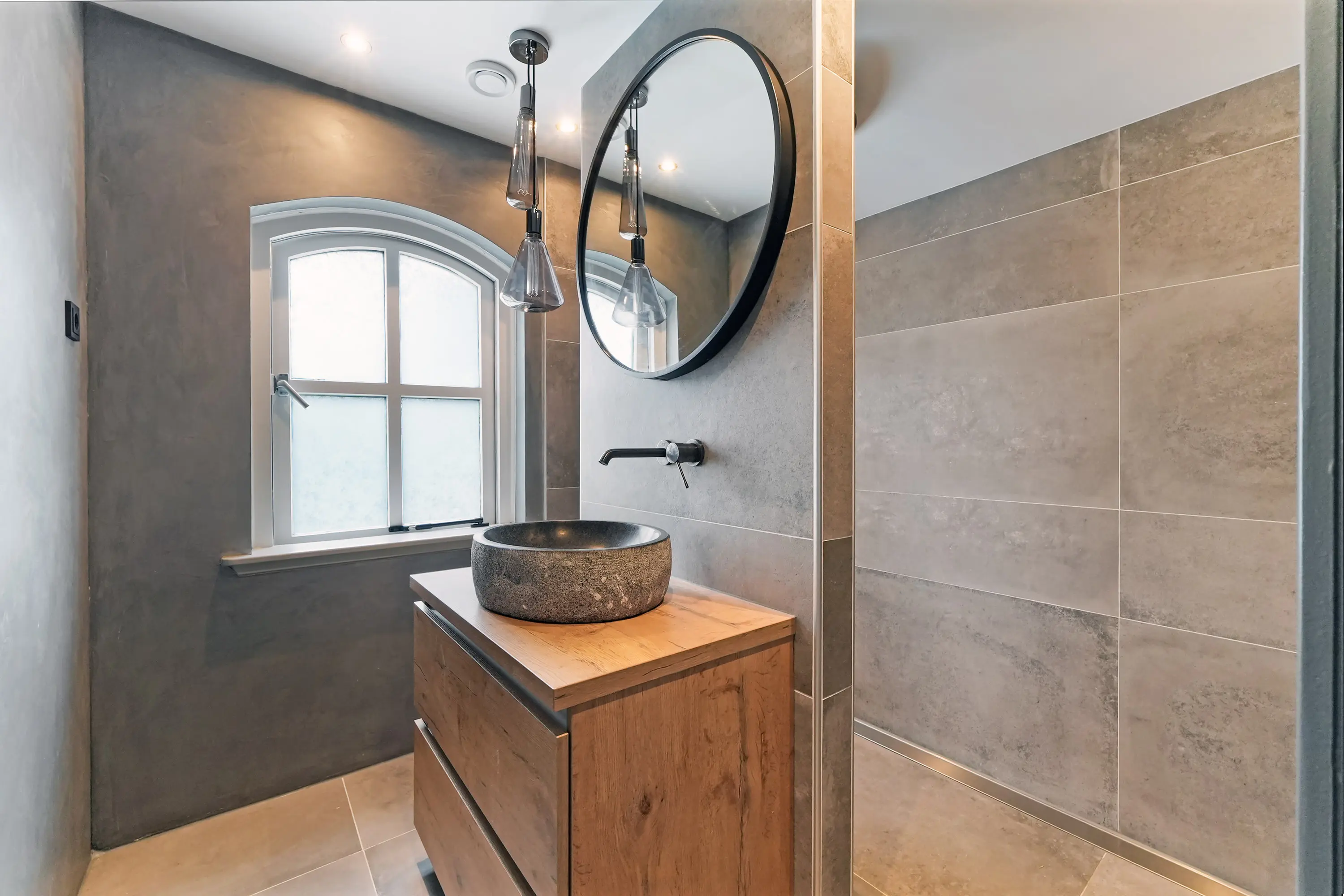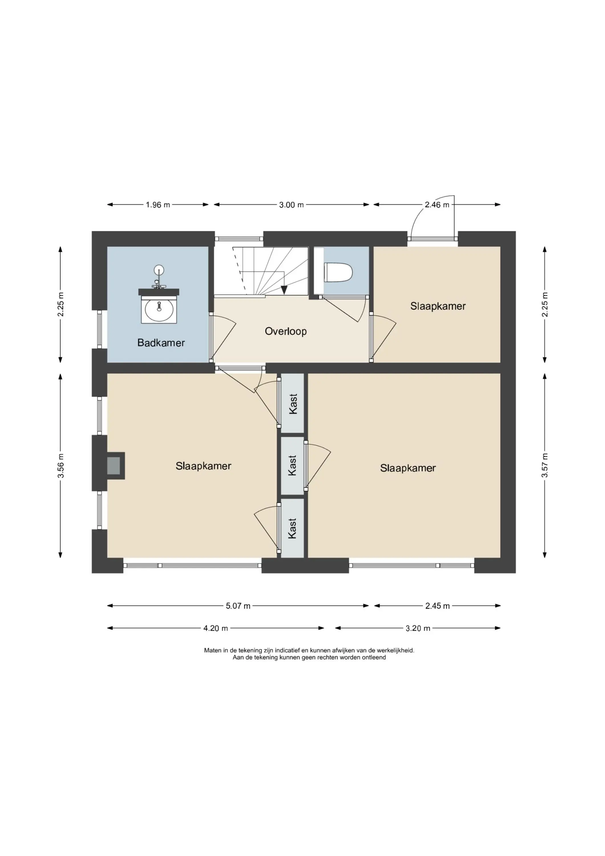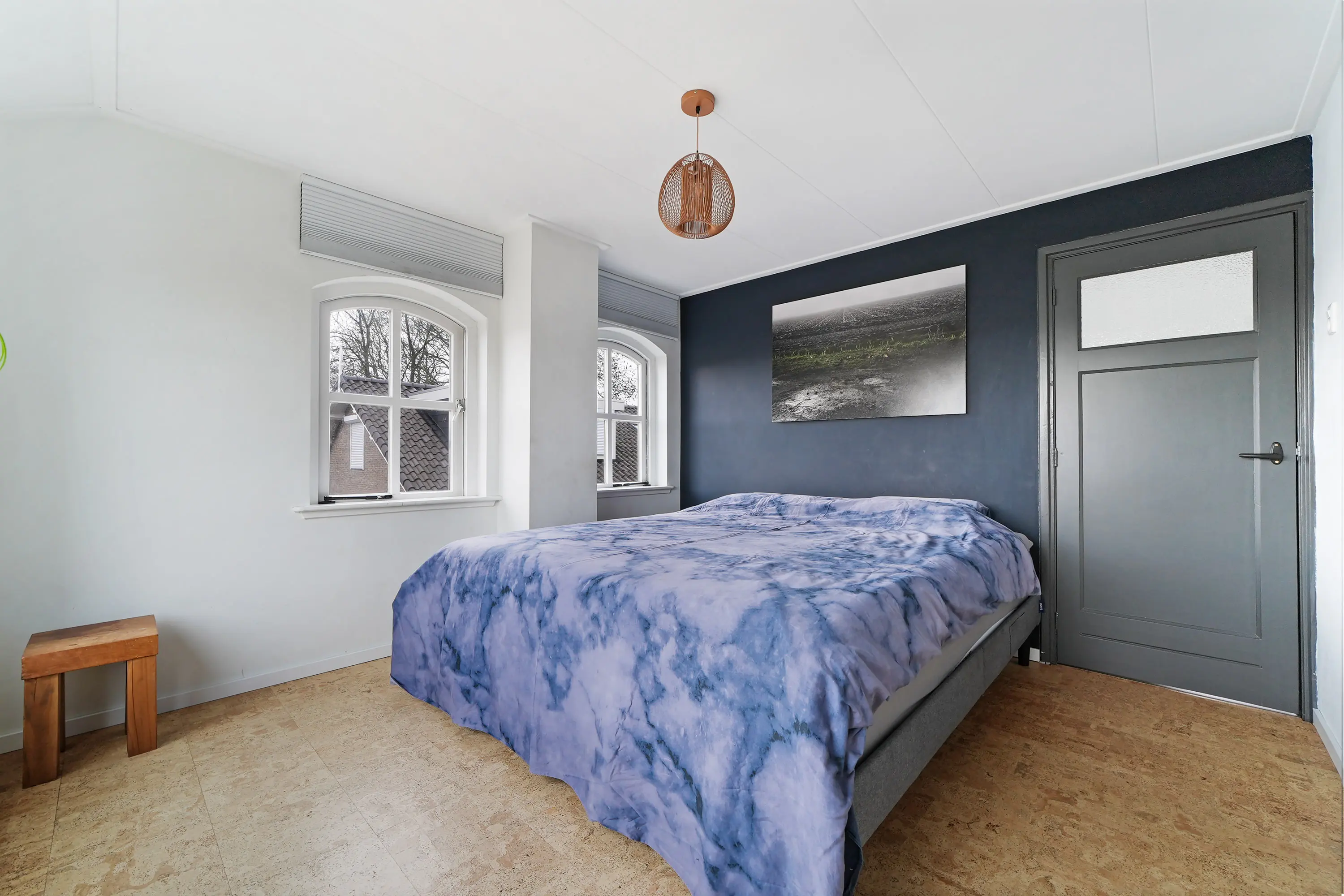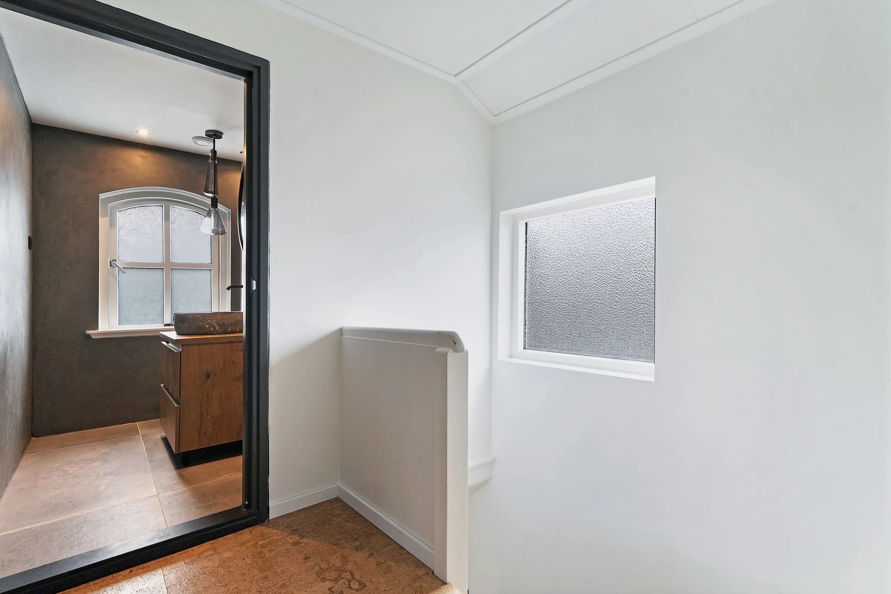 De overloop geeft toegang tot drie verrassend ruime slaapkamers, waaronder de royale ouderslaapkamer met karakteristieke raampartijen. In de twee grootste slaapkamers zorgen ingebouwde kasten voor veel praktische bergruimte. Daarnaast vindt u op deze verdieping een separaat tweede toilet en een stijlvolle badkamer, ingericht met een modern wastafelmeubel met waskom en een luxe inloopdouche.