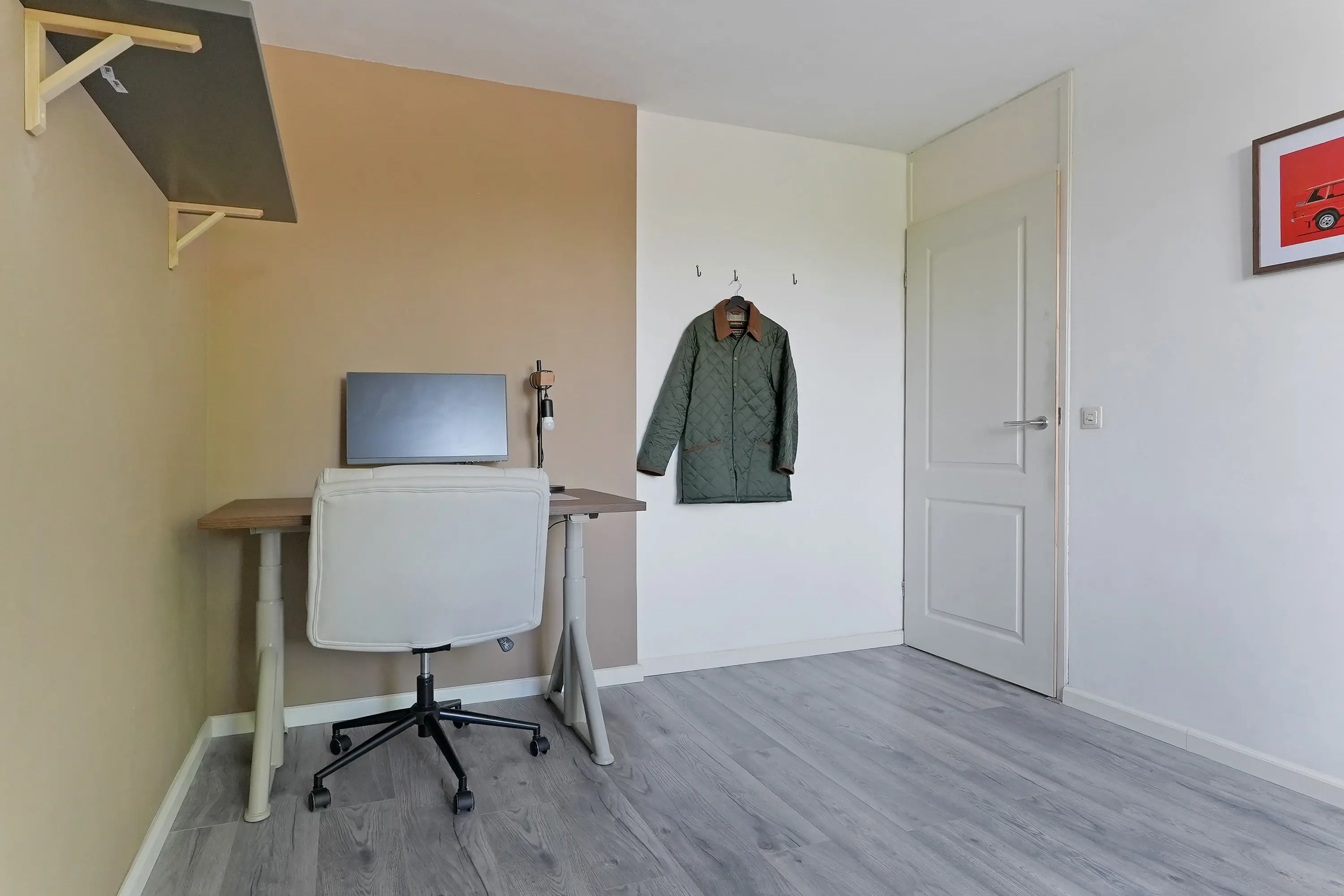 Op de overloop is een praktische thuiswerkplek gecreëerd, dankzij de aanwezigheid van dakramen die zorgen voor daglicht. Ook vindt u op deze verdieping een aparte wasruimte met aansluitingen voor wasmachine en droger, alsmede de cv-opstelling. De combinatie van functionaliteit en ruimte maakt deze verdieping bijzonder veelzijdig.