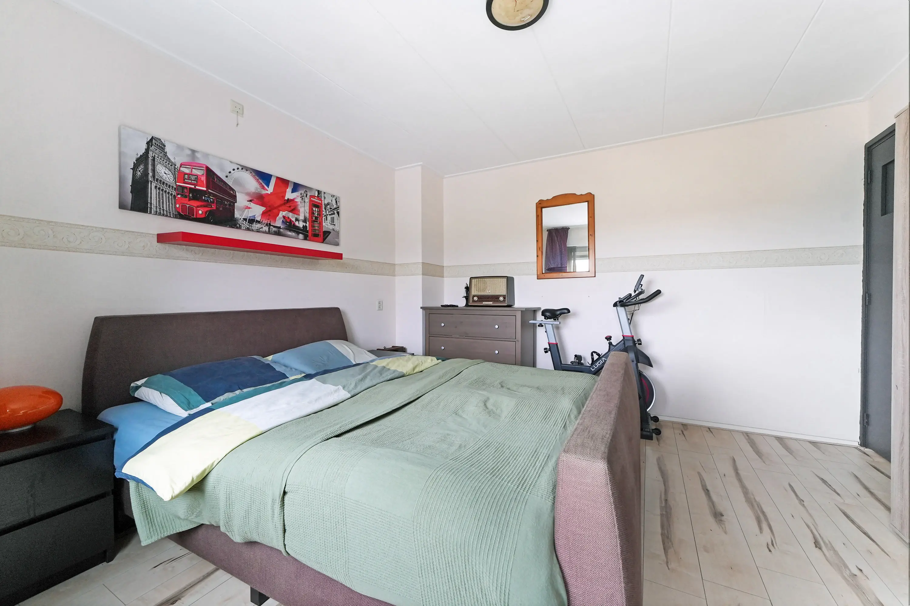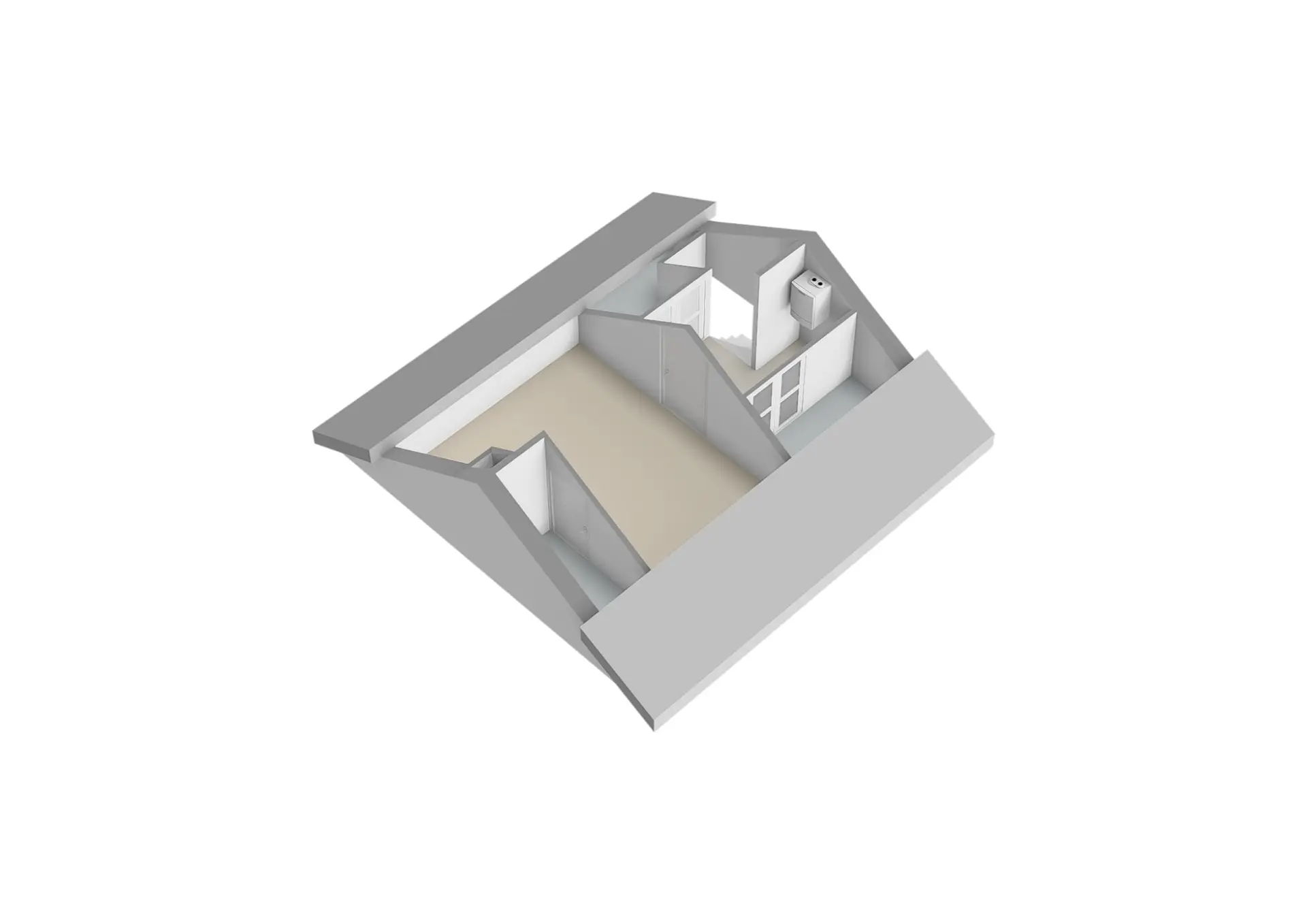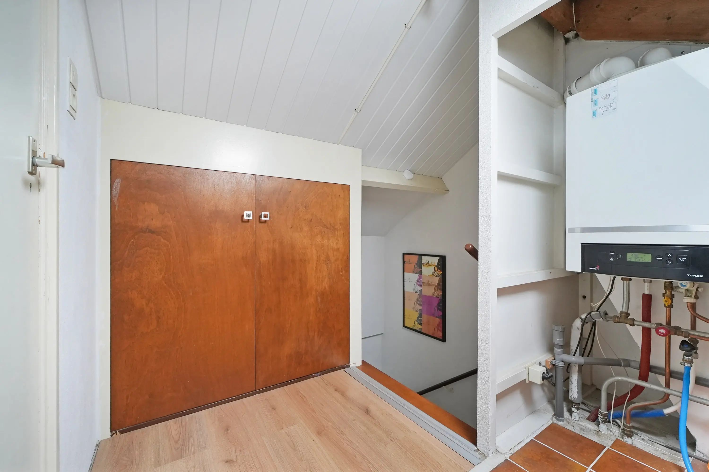 Overloop met opstelling c.v.-ketel en veel bergruimte. Tenslotte een ruime vierde slaapkamer met dakraam en vaste kast.