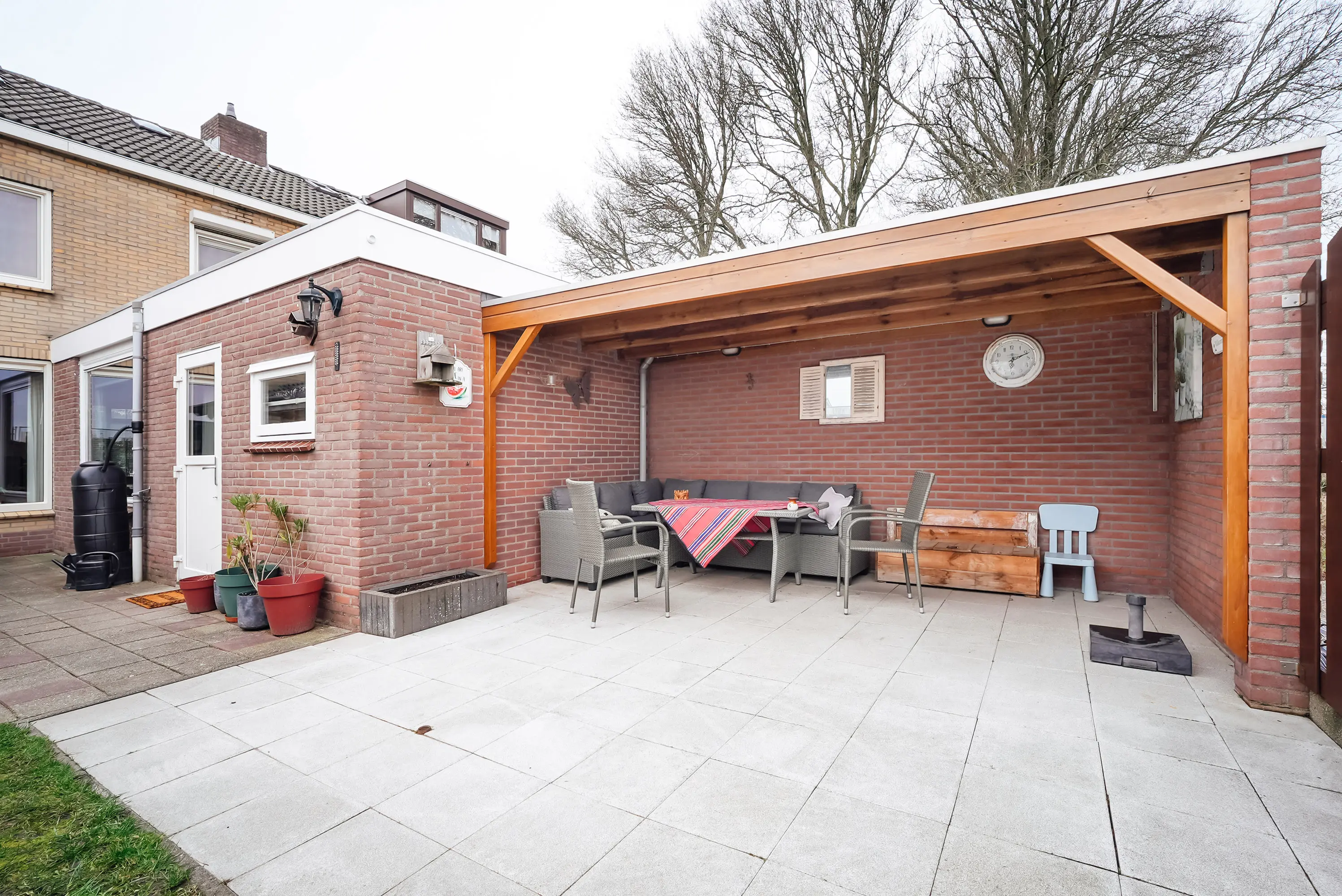 De verzorgde achtertuin is voorzien van gezellige overkapping en vrije achterom. Er is tevens een verzorgde voortuin.