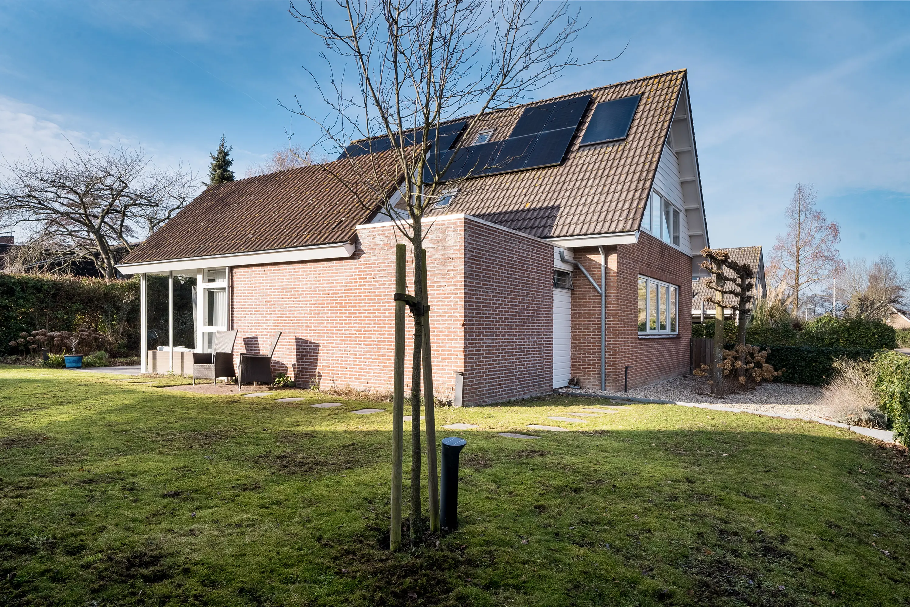 De binnendoor bereikbare garage is voorzien van verwarming, elektrisch bedienbare sectionaal deur, bergzolder en tuindeur aan de achterzijde. De bergzolder is bereikbaar via vaste trap en is voorzien van daglicht. De fraaie tuin rondom is voorzien van heerlijke overkapping aan huis, ruime oprit en groot zonneterras op het zuidwesten.
