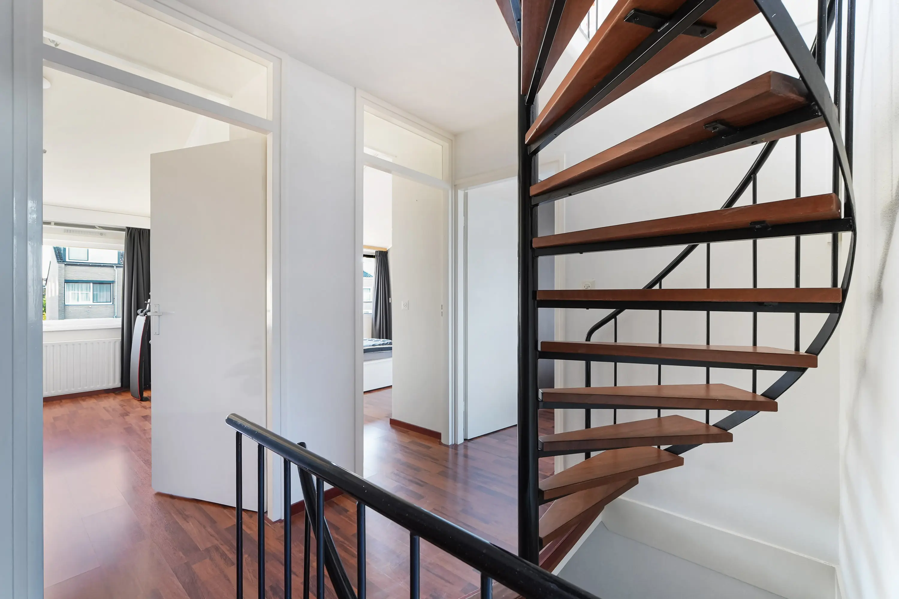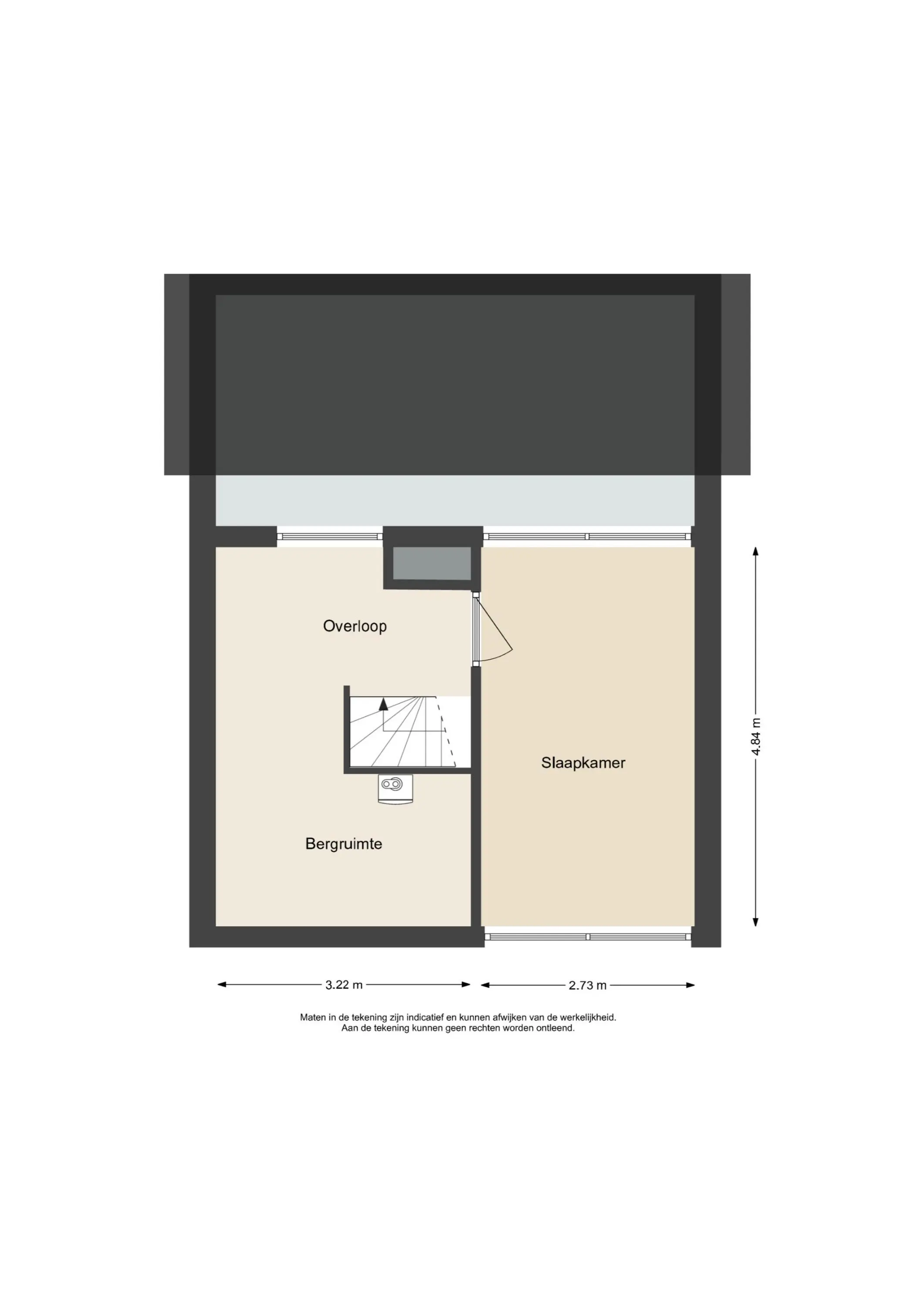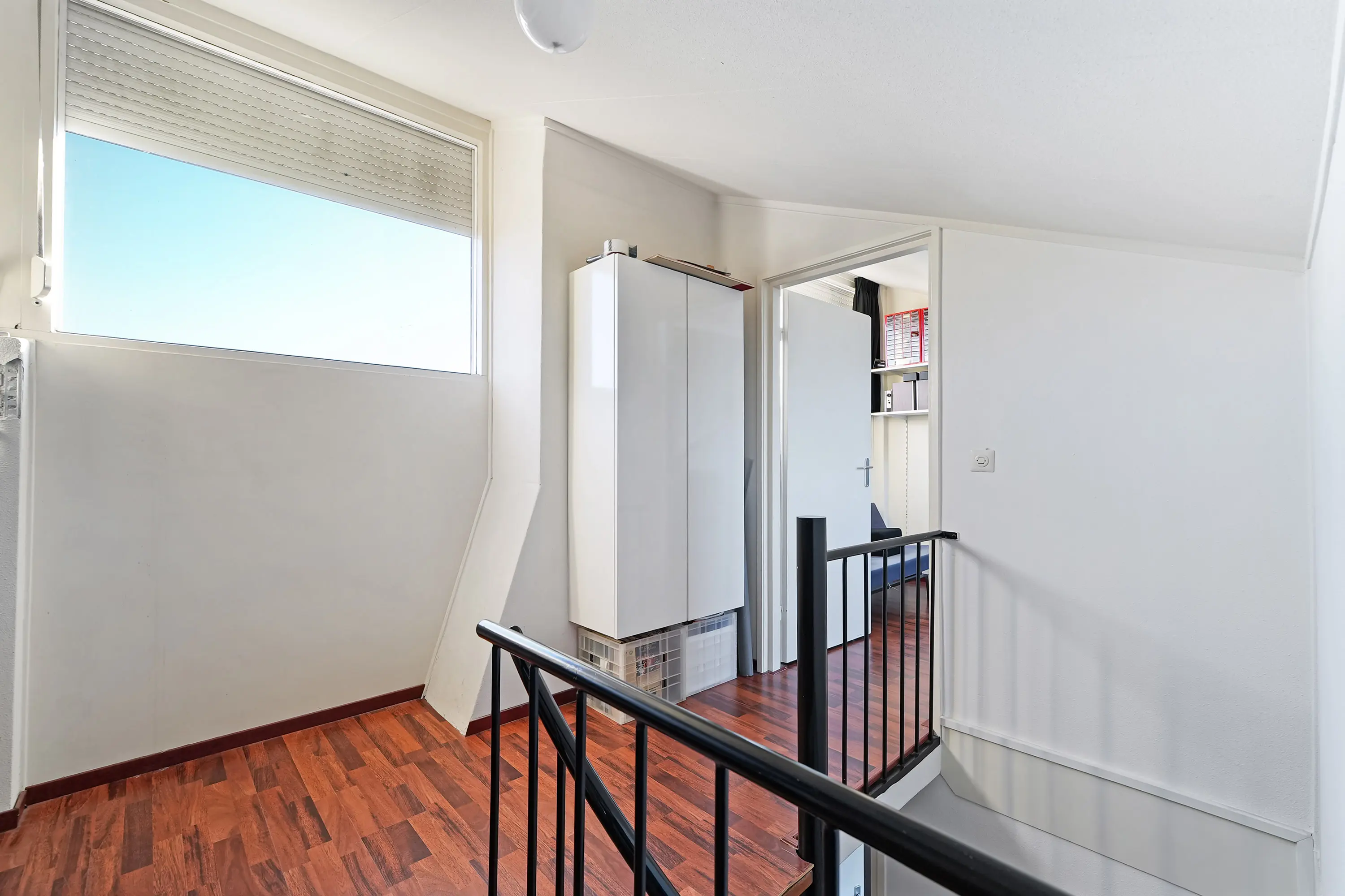 Via een vaste trap bereikt u de overloop die toegang geeft tot de vierde slaapkamer. Dit is een volwaardige verdieping met veel licht en ruimte. Achter de trap bevindt zich in grote opbergruimte voor uw spullen. Hier hangt ook de de cv-ketel (2022).