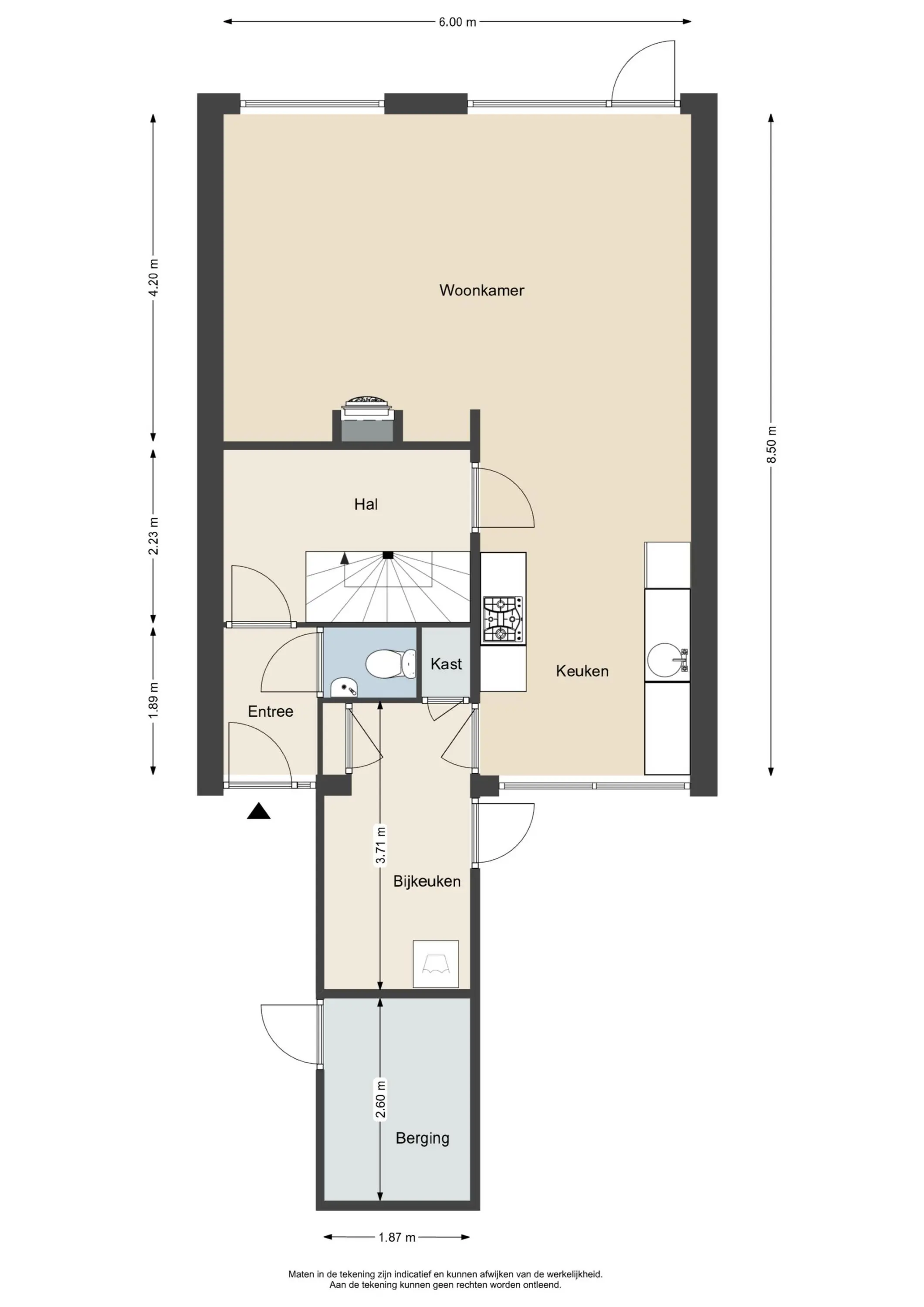 Deze informatie is door ons met de nodige zorgvuldigheid samengesteld. Onzerzijds wordt echter geen enkele aansprakelijkheid aanvaard voor enige onvolledigheid, onjuistheid of anderszins, dan wel de gevolgen daarvan. Alle opgegeven maten en oppervlakten zijn indicatief.