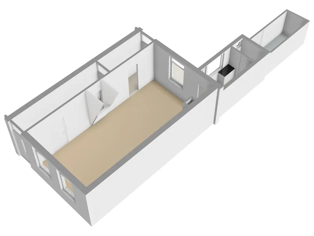 Indeling: entree in gang met meterbord, grote woonkamer met balkenplafond en een aparte inloop ruimte te gebruiken als werkplek, kast of andere gewenste mogelijkheden. De eenvoudige keuken treft u in de aanbouw met aansluitend de sobere doucheruimte en toilet.