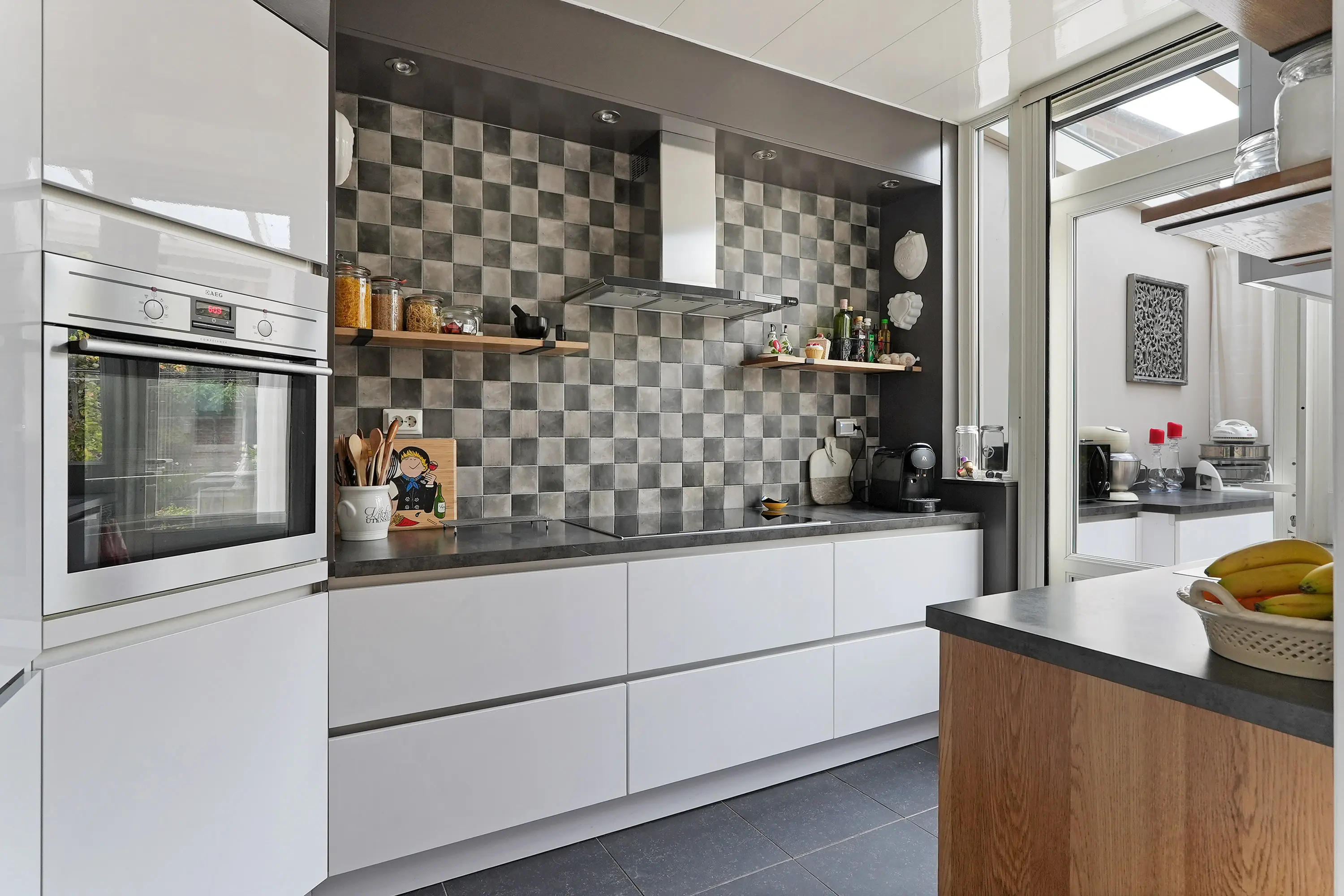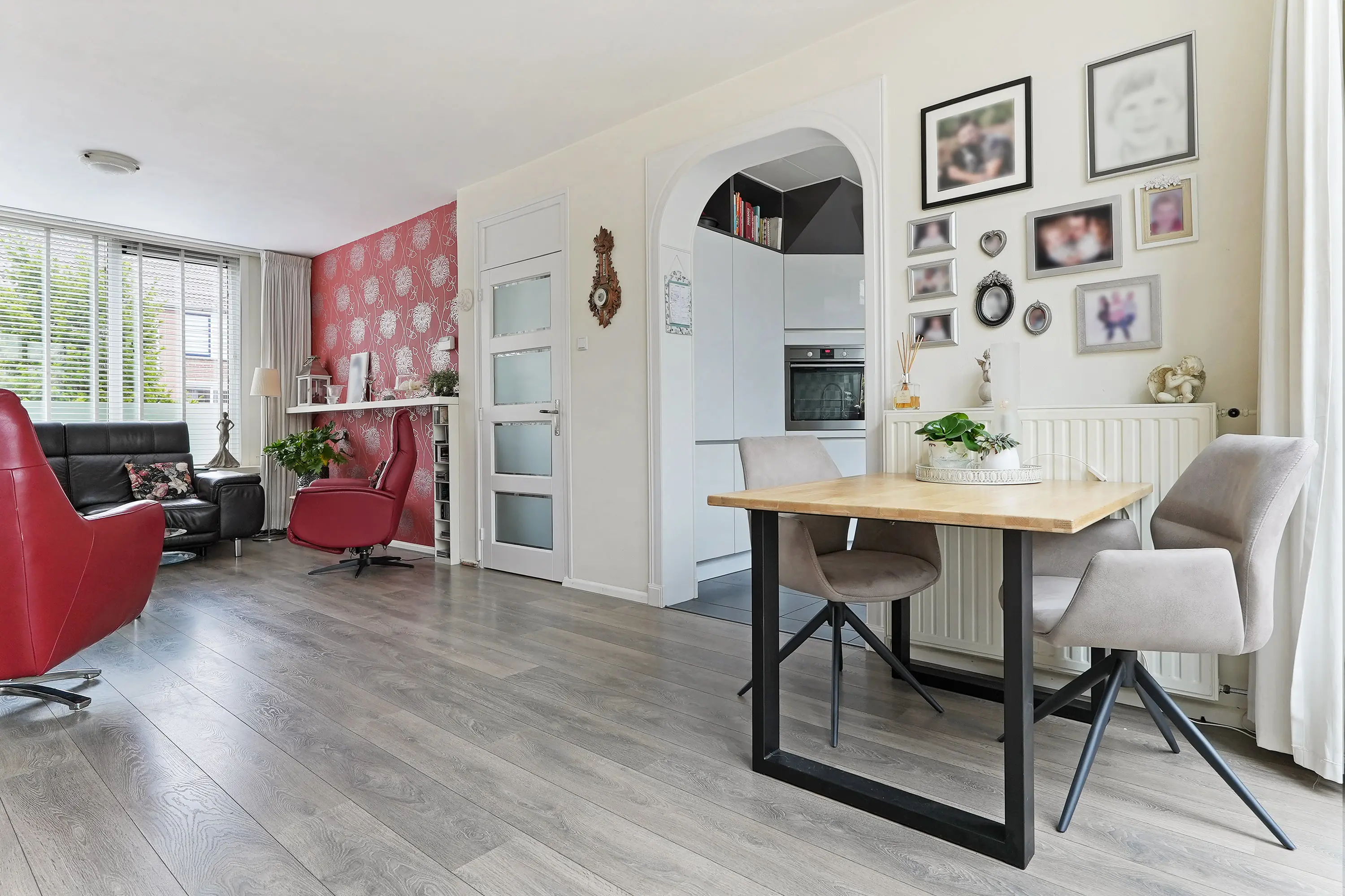 Bij binnenkomst via de nette voortuin bereikt u de hal met (vernieuwde) meterkast, toilet, trapopgang naar de eerste verdieping en toegang tot de woonkamer. Bij binnenkomst in de woonkamer ervaart u direct de ruimtelijkheid en lichtinval. De zithoek treft u aan de voorzijde en de eethoek aan de tuinzijde. De half open keuken bevindt zich eveneens aan de tuinzijde en is uitgevoerd in een keurig verzorgde parallelopstelling. De combinatie van lichte greeploze kastfronten, houtlook kastfronten en een donkerwerkblad maakt dit een ontzettend mooi geheel. Uiteraard is de keuken voorzien van de gewenste inbouwapparatuur, waaronder een inductiekookplaat, afzuigkap, combi-oven, vaatwasser en koel en- vriescombinatie.