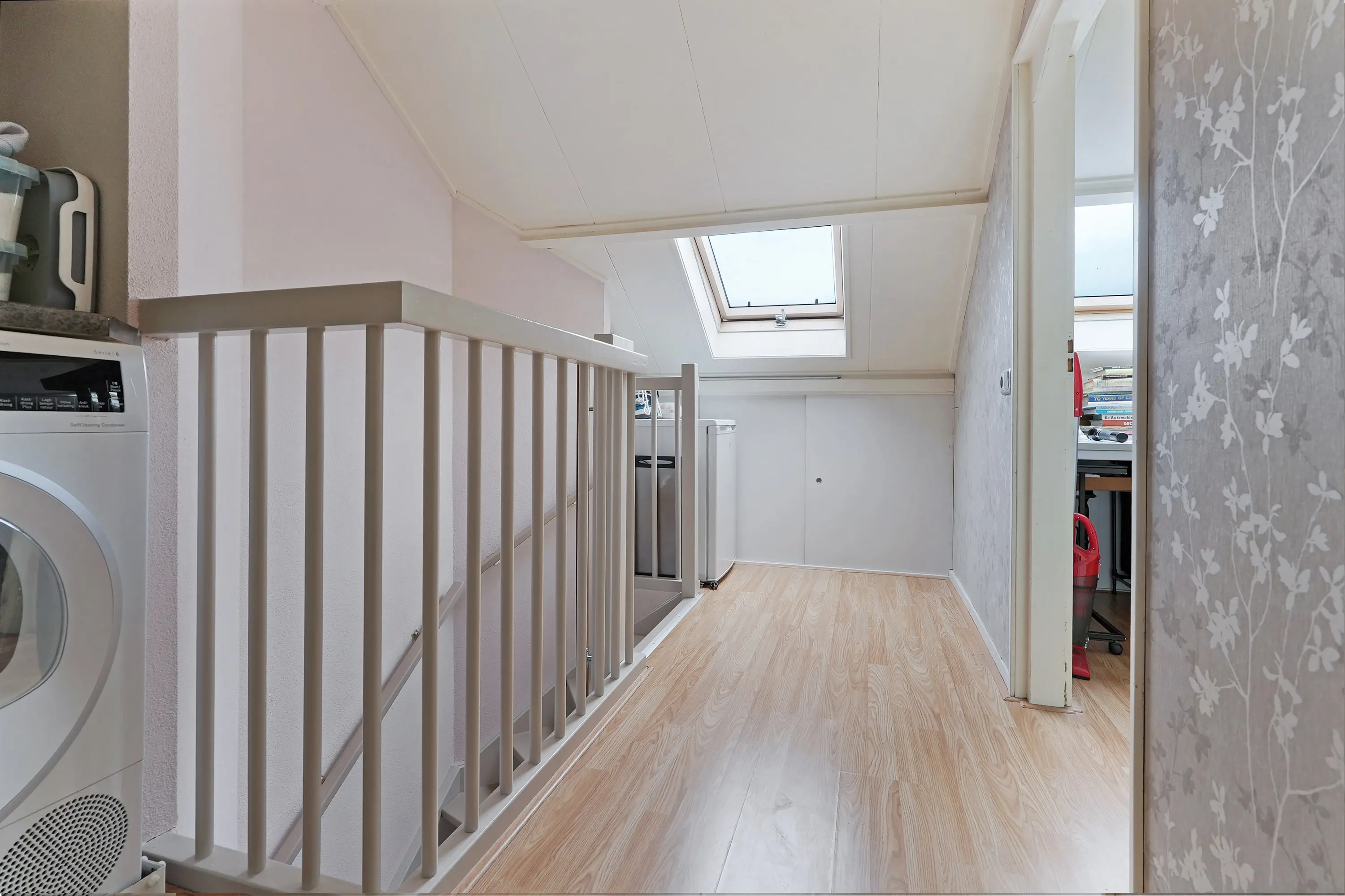 Op de overloop treft u naast extra bergruimte ook de cv-opstelling (2015) en de aansluiting voor de wasmachine/droger. Zo is alles praktisch en centraal georganiseerd.