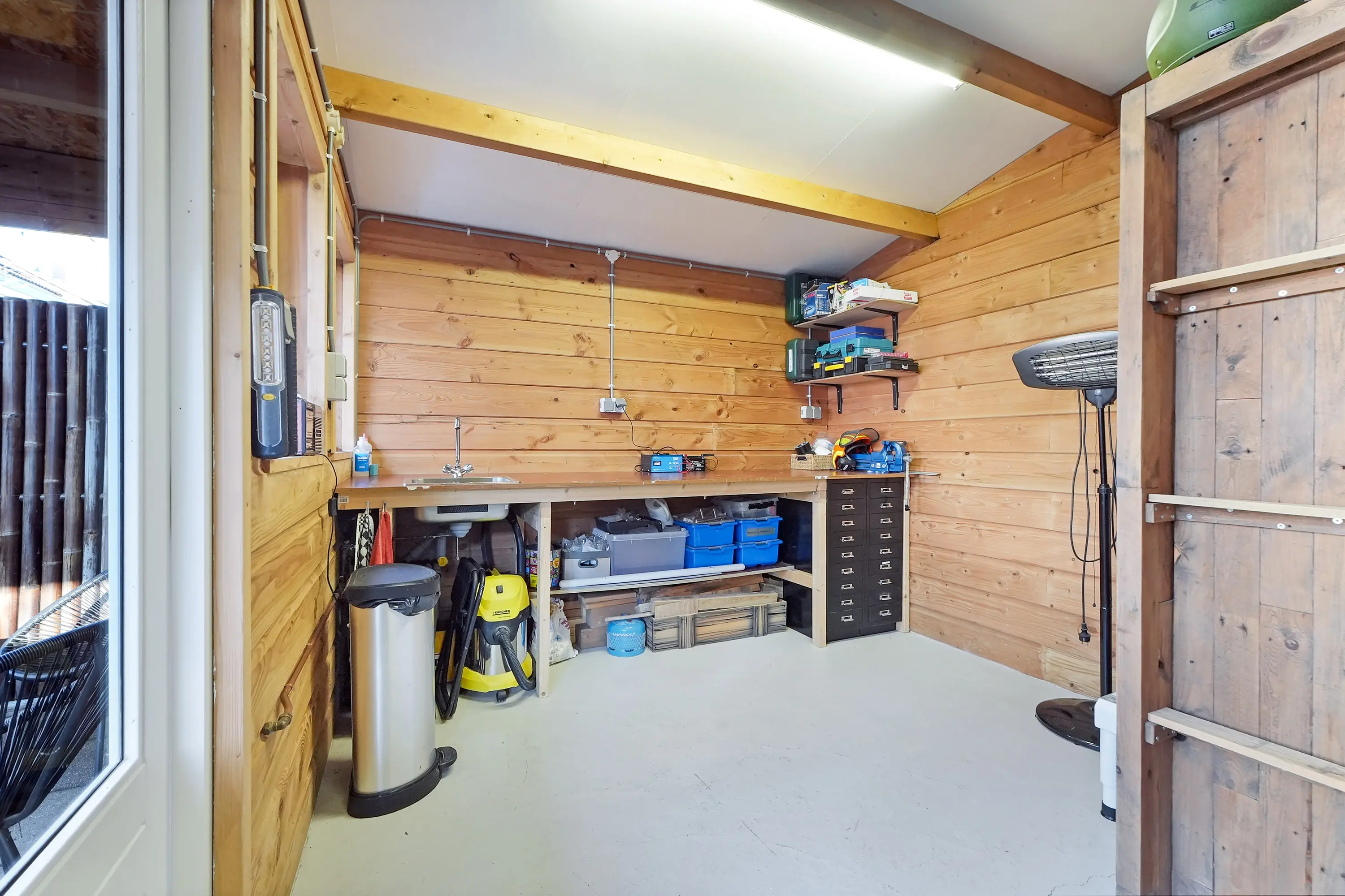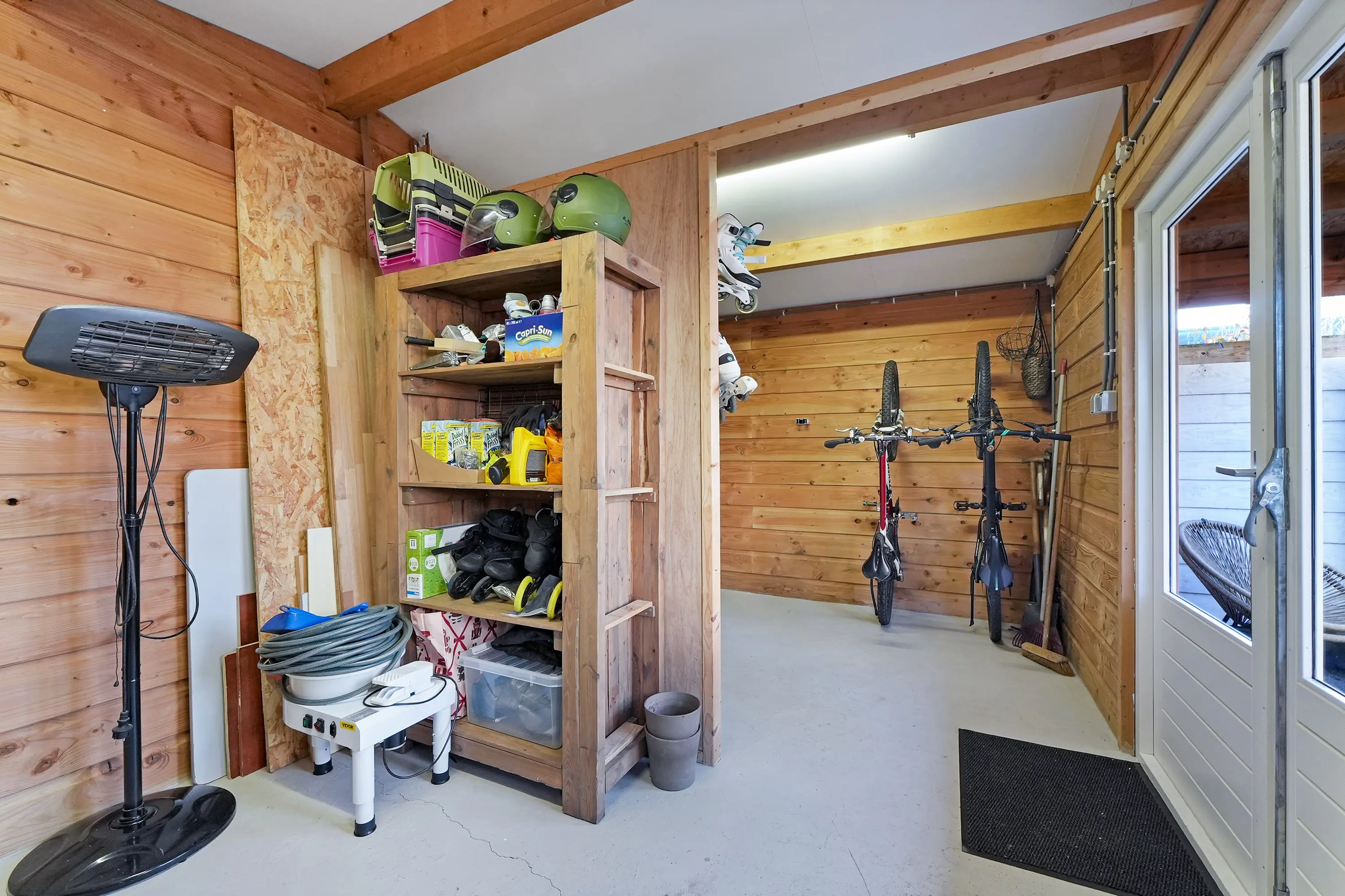 Een absolute meerwaarde van deze woning is de royale houten berging in de achtertuin. Deze sfeervolle en keurig afgewerkte ruimte is veel meer dan alleen een schuur: denk aan een werkplaats, hobbyruimte, klusruimte, fietsenstalling of zelfs een rustige plek om te werken of creatief bezig te zijn. De berging is voorzien van elektra, werkbanken en volop bergruimte en maakt een solide, verzorgde indruk. Aan de voorzijde beschikt de woning over een carport, ideaal voor parkeren op eigen terrein.
