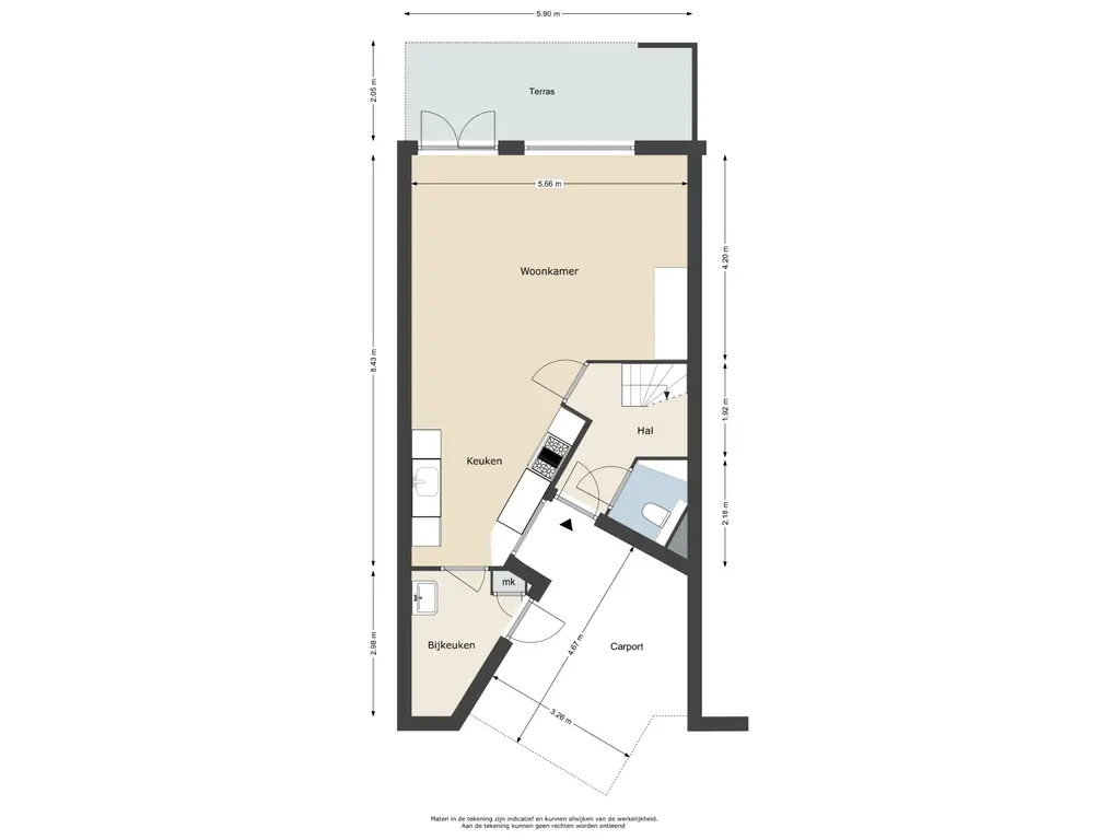 Deze informatie is door ons met de nodige zorgvuldigheid samengesteld. Onzerzijds wordt echter geen enkele aansprakelijkheid aanvaard voor enige onvolledigheid, onjuistheid of anderszins, dan wel de gevolgen daarvan. Alle opgegeven maten en oppervlakten zijn indicatief.