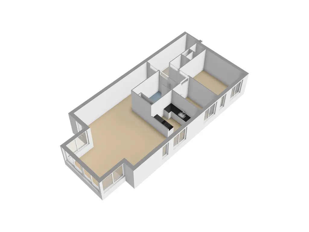 Bij binnenkomst betreedt u een verzorgde centrale entree met een ruime hal, die toegang biedt tot de meterkast, een praktische bergkast met CV-opstelling en het separate toilet. Vanuit deze centrale hal bereikt u alle vertrekken van het appartement. Het kloppend hart van de woning is zonder twijfel de royale woonkamer met open serre. De overvloedige lichtinval verrast direct bij binnenkomst en zorgt voor een aangenaam gevoel van ruimte, rust en vrijheid. De serre fungeert als een verlengstuk van de woonkamer en biedt een prachtig uitzicht op het omliggende groen en het charmante straatbeeld van Middelburg. De open keuken sluit naadloos aan op de woonkamer en is strak en modern afgewerkt met witte hoogglans kasten en een donker werkblad. Uiteraard is de keuken uitgerust met alle gewenste inbouwapparatuur, waaronder een gaskookplaat, afzuigkap, oven, koel-vries combinatie en vaatwasser. Dankzij de open opstelling blijft u tijdens het koken eenvoudig in contact met gasten aan de eettafel – ideaal voor gezellige avonden. De badkamer is stijlvol betegeld in grijs-wit en beschikt over een ligbad, een wastafelmeubel en een aparte douche met glazen wand. Het separate toilet met fonteintje is in dezelfde moderne stijl uitgevoerd en bevindt zich eveneens in de hal. Het appartement telt twee comfortabele slaapkamers die zich uitstekend lenen als slaapkamer, werkkamer of logeerkamer. Ook hier zorgt de royale lichtinval voor een aangename sfeer.