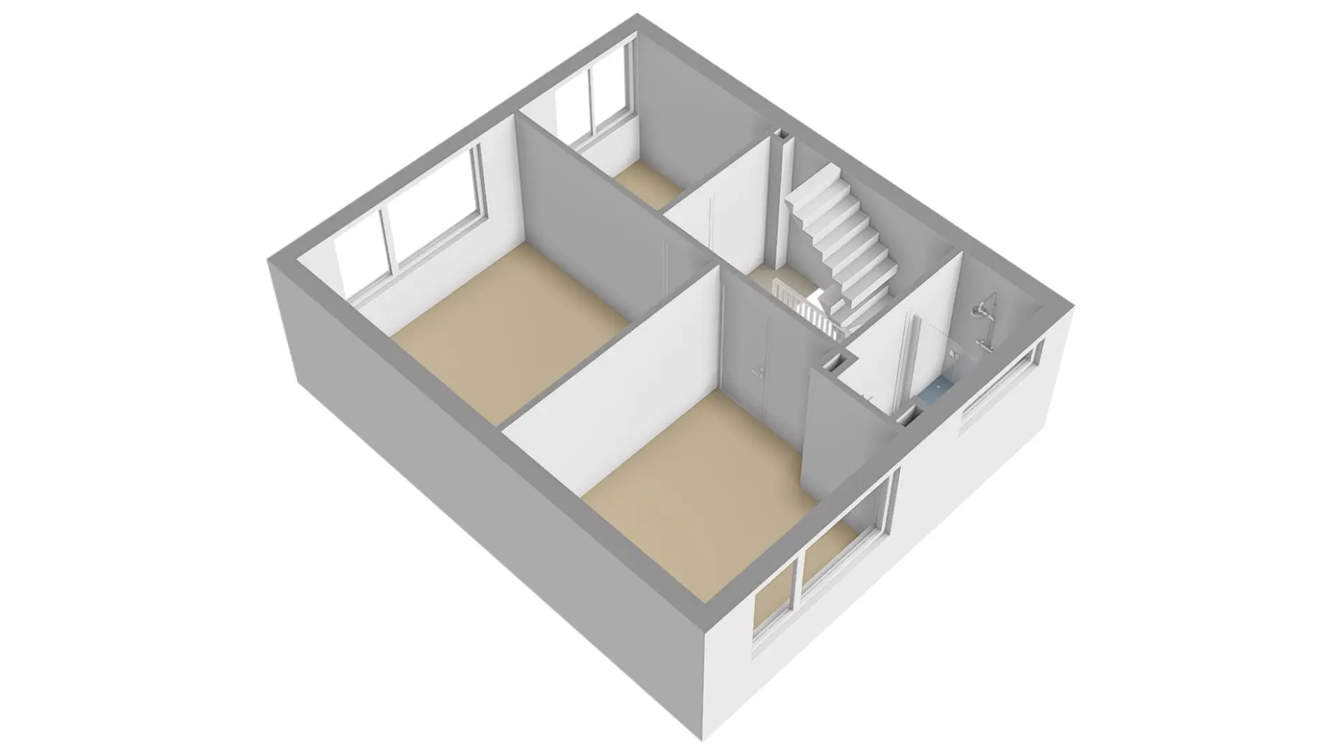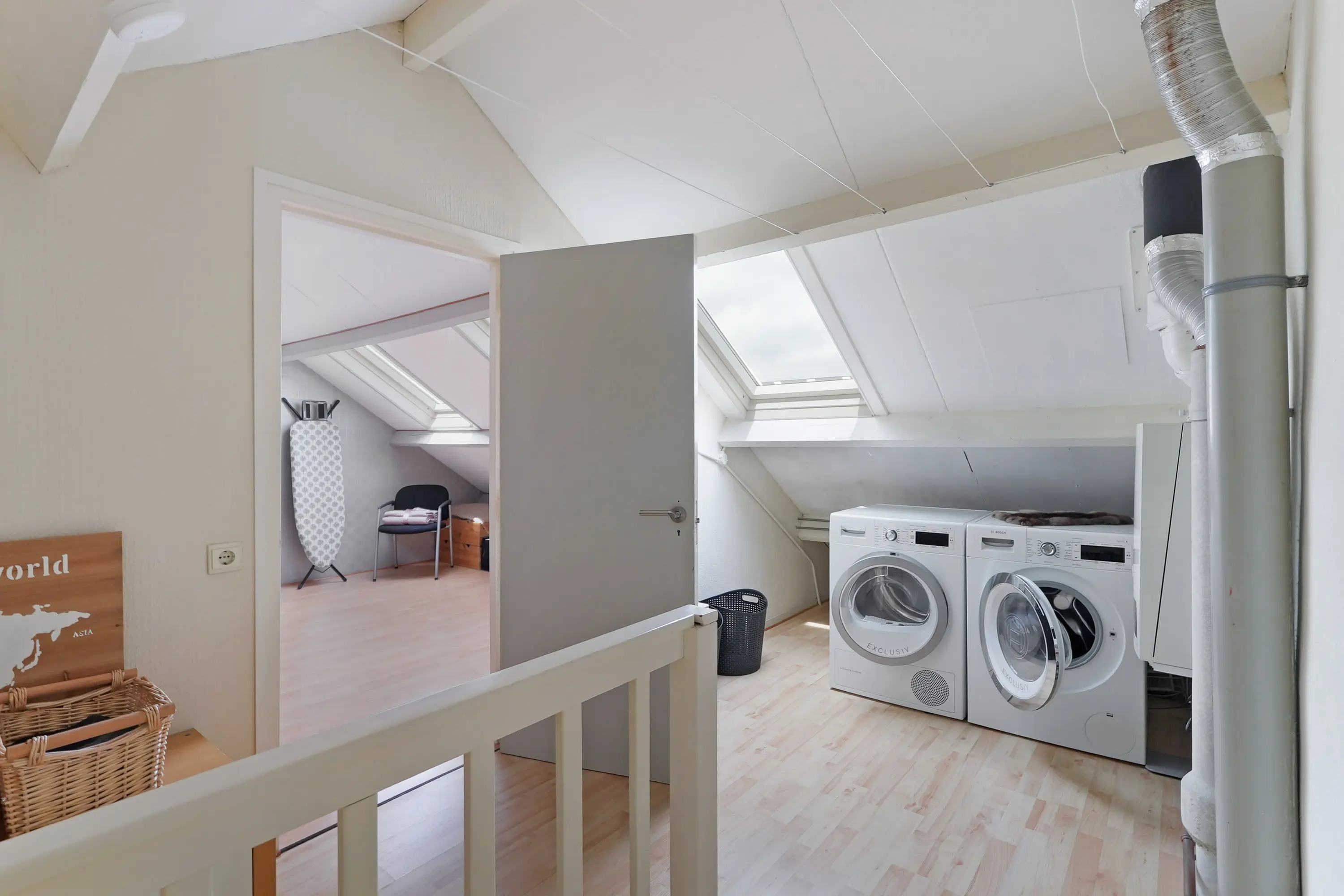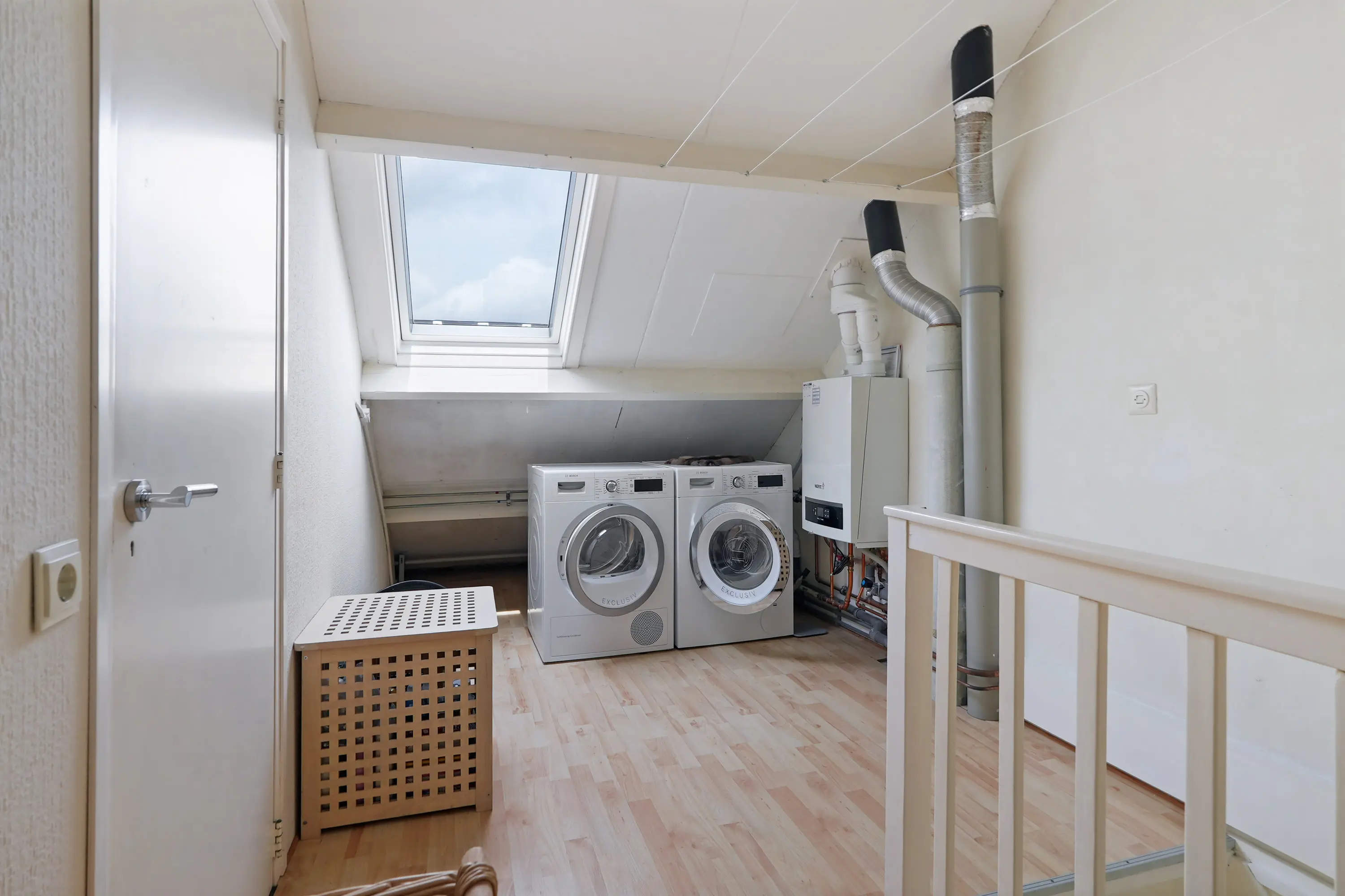 Op deze verdieping vindt u een royale overloop met de cv-installatie (Nefit, 2015), de omvormer van de zonnepanelen en de aansluiting voor witgoed. Daarnaast is hier de vierde slaapkamer gesitueerd.