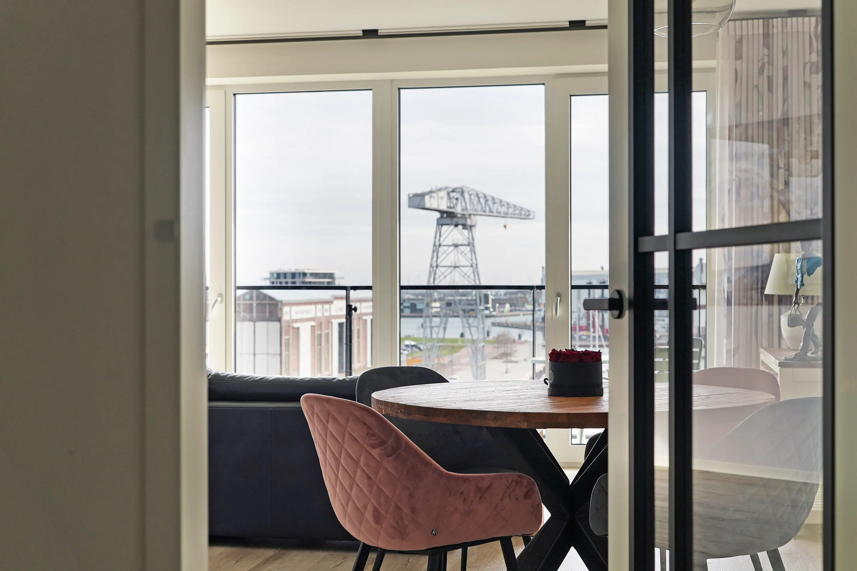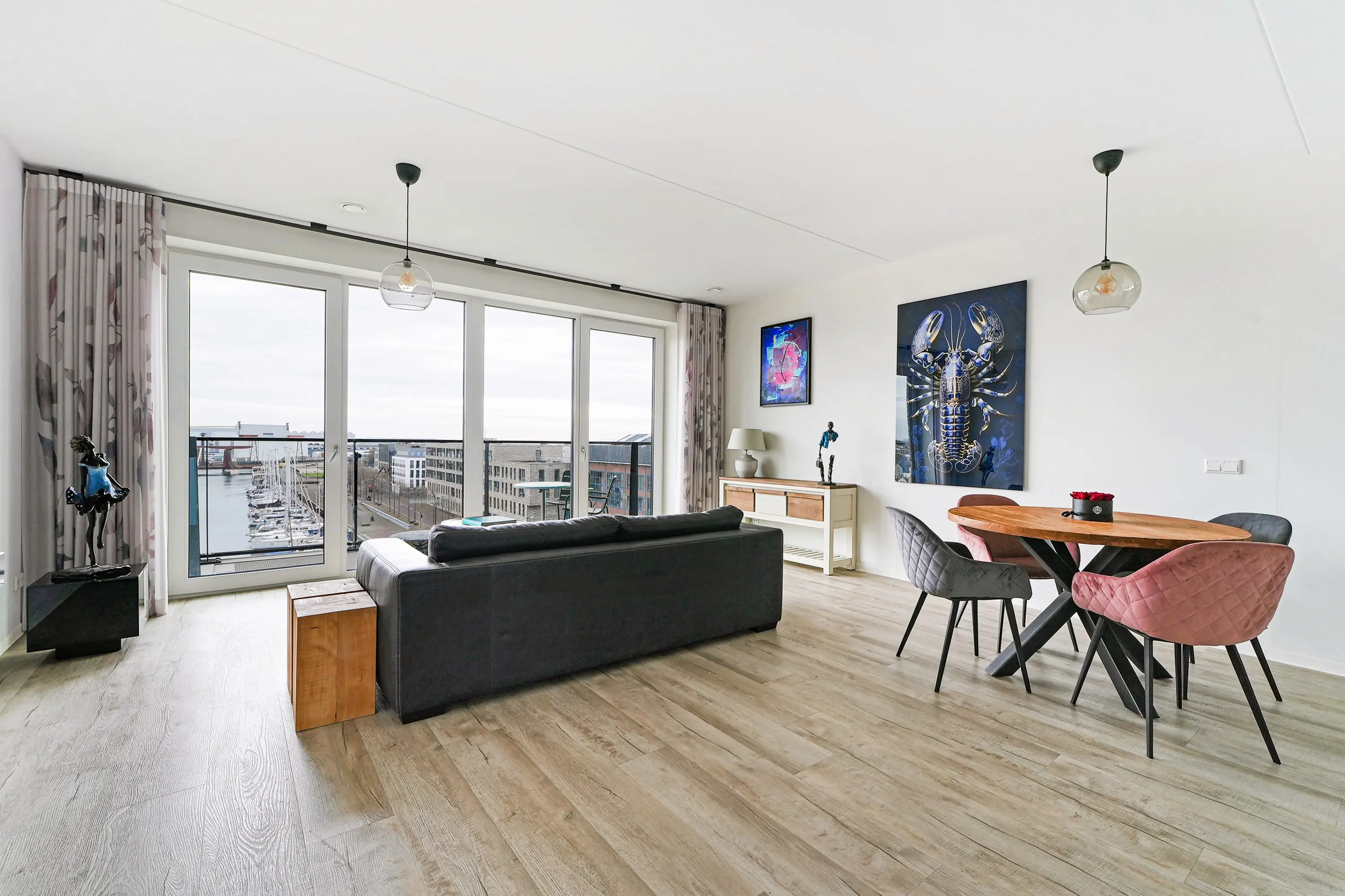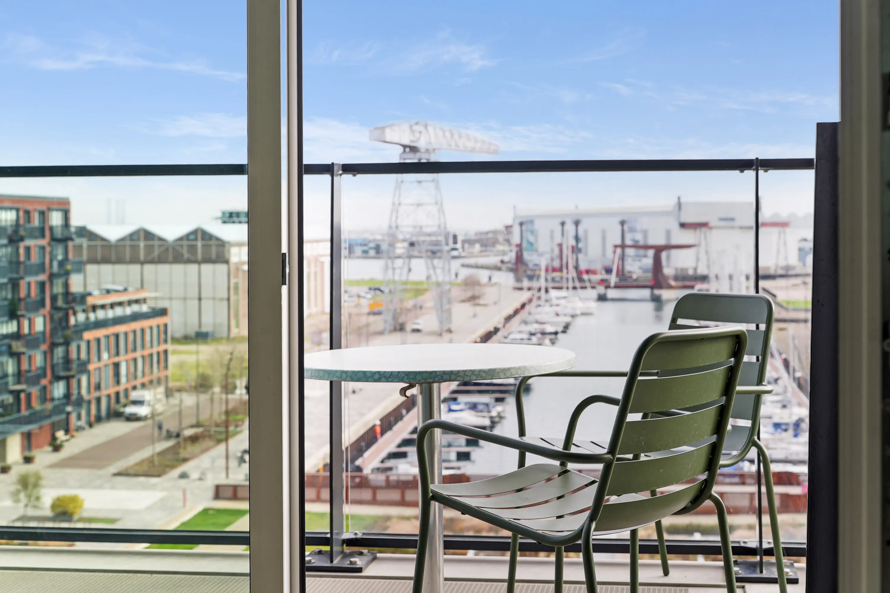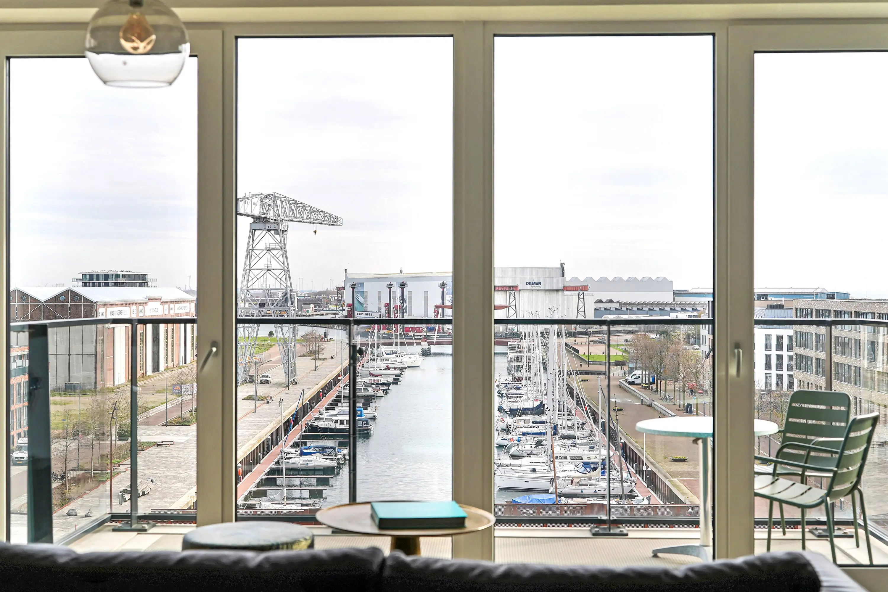 Uniek aanbod! Fantastisch appartement op de 6e verdieping met een fenomenaal uitzicht. U kijkt uit over de maritieme helling én de schitterende jachthaven. De plafondhoge ramen brengen het licht en de dynamiek van het water tot diep in uw woonkamer. De ruime woonkamer heeft een riant balkon en een stijlvolle open keuken met hoogwaardige afwerking. Daarnaast beschikt het appartement over twee ruime slaapkamers met grote ramen en hetzelfde panoramische uitzicht, fraai sanitair plus een eigen fietsenberging. Dit alles vindt u binnen het prachtige wooncomplex ‘De Kop van het Dok’, gelegen midden in de binnenstad waar alle voorzieningen binnen handbereik zijn. En toch biedt dit appartement een oase van rust en comfort – een plek waar u zich kunt terugtrekken en genieten van de stilte boven het water.