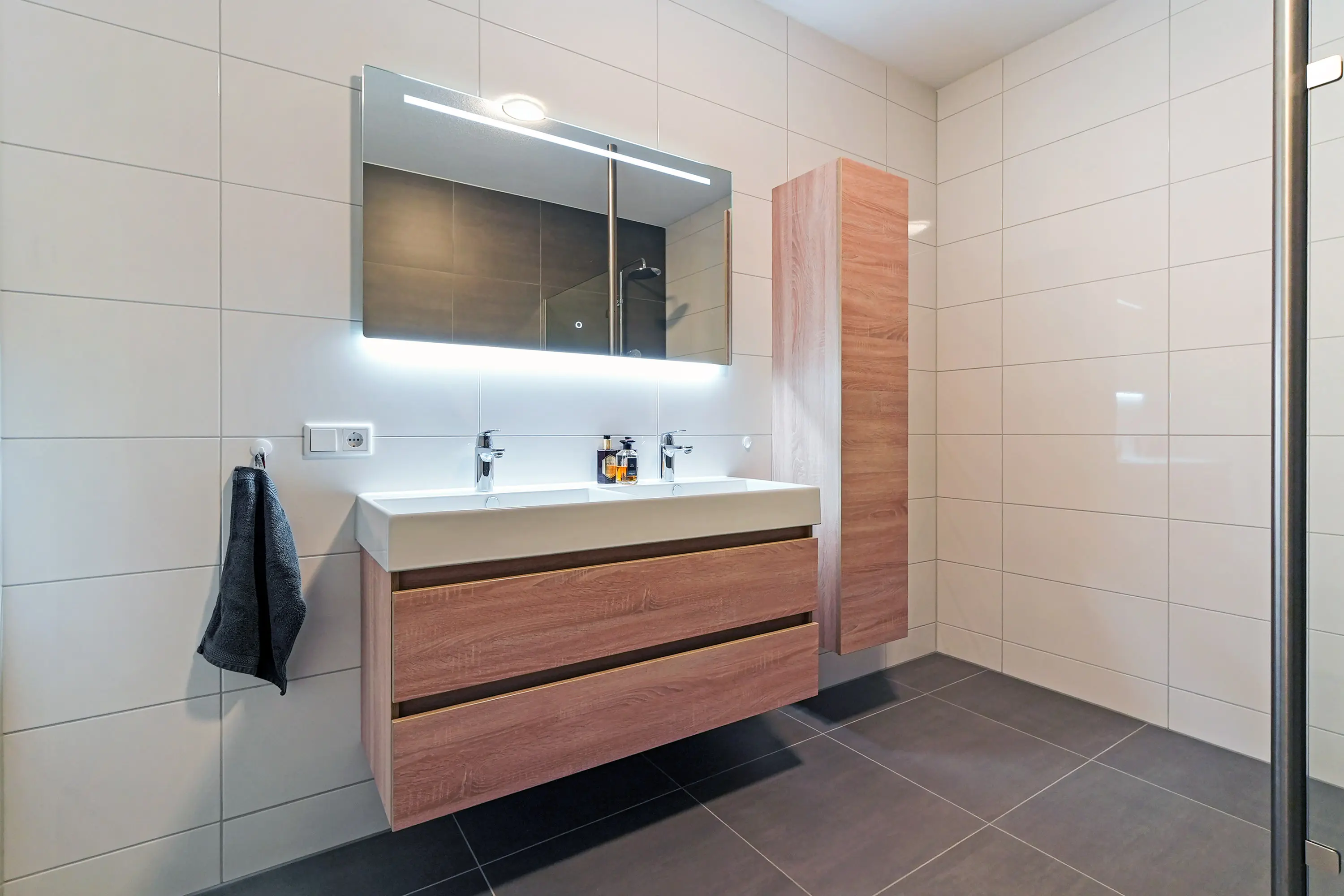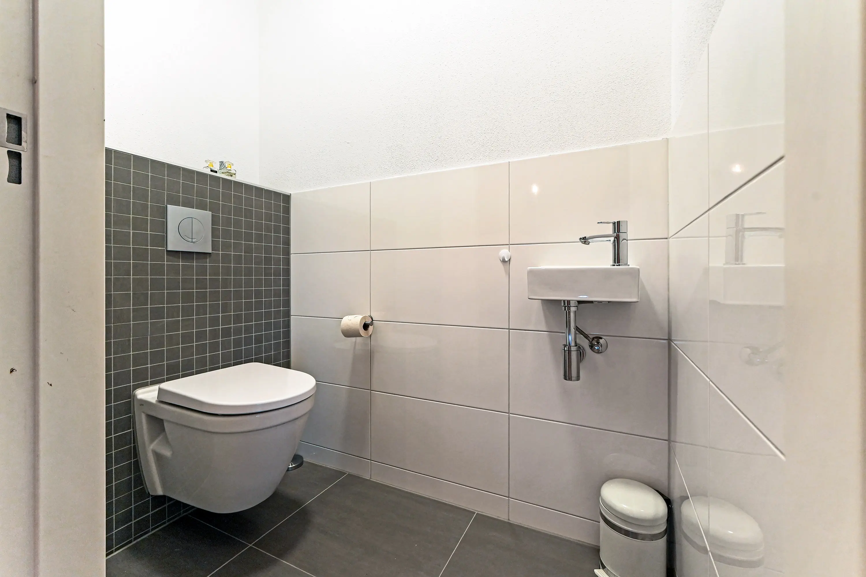Via de hal bereikt u de riante slaapkamer aan de dokzijde met daarnaast slaapkamer nummer twee. De ruime badkamer bevindt zich naast de hoofdslaapkamer en is bereikbaar via de hal. Een prachtige badkamer met fraaie keramische tegels, een ruime inloopdouche, tweede toilet en een luxe wastafelmeubel met dubbele wasbak. Direct bij binnenkomst vindt u de technische ruimte met de aansluitingen voor witgoed, de warmtepomp en de wtw (warmteterugwininstallatie).