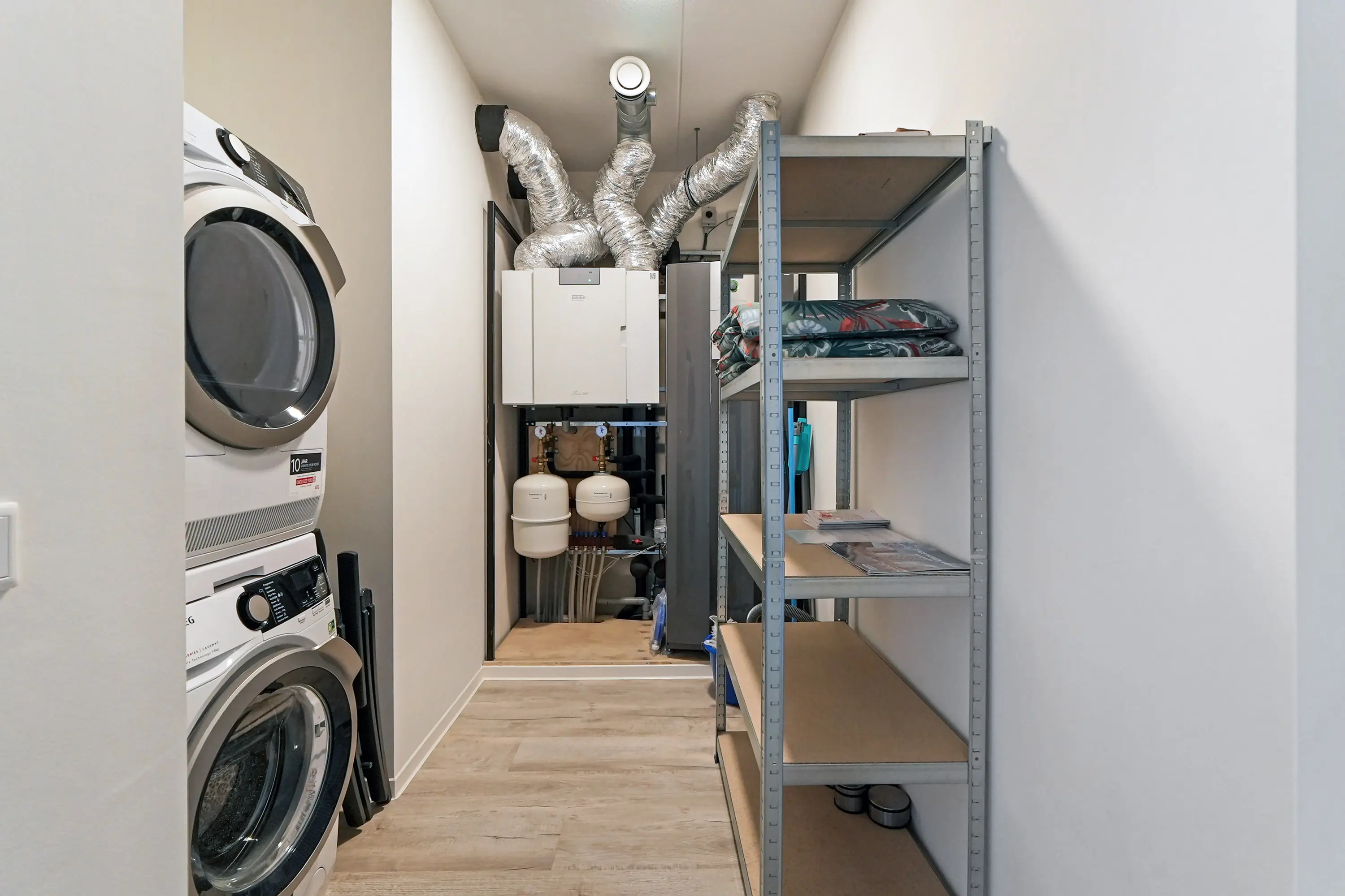 Met het oog op de toekomst is Kop van het Dok – en dus ook dit appartement – bijzonder duurzaam ontwikkeld. Het complex beschikt over een collectieve Warmte-Koude Opslag (WKO) installatie met in iedere woning een eigen warmtepomp. Deze zorgt niet alleen voor comfortabele vloerverwarming in de winter, maar biedt tevens (top)koeling in de warme zomermaanden. Daarnaast dragen de kunststof kozijnen met triple glas (HR+++) en een warmteterugwininstallatie bij aan een stabiel binnenklimaat en een zeer lage energiebehoefte. Het resultaat: lagere woonlasten én een hoog wooncomfort.