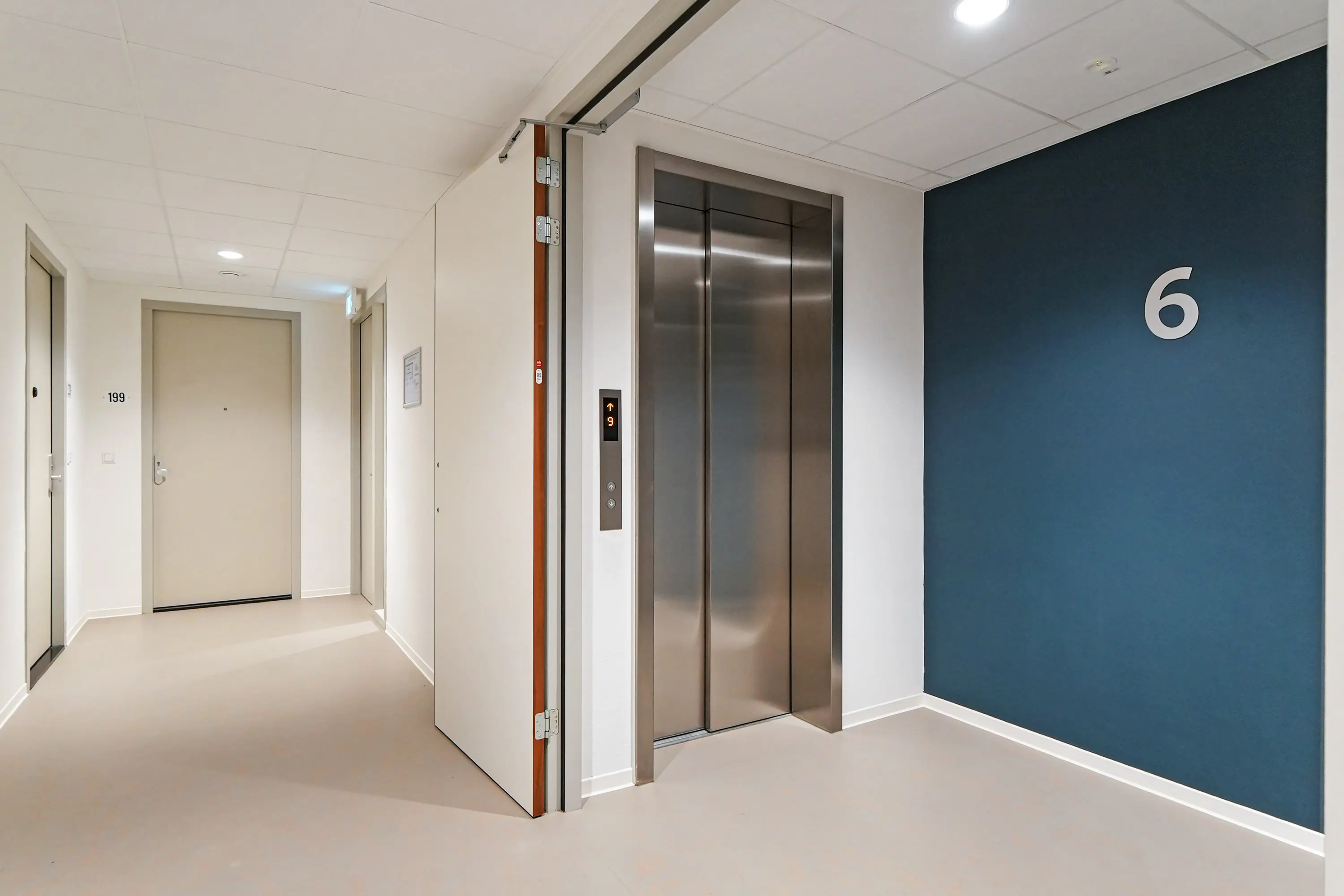 Via de lift treft u de entree van het appartement op de 6e verdieping.