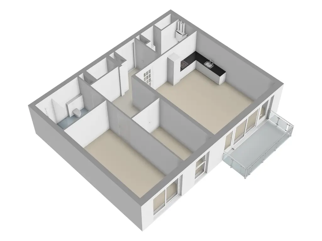Binnenkomst in de hal met meterkast en toilet. Vanaf hier is er toegang tot alle woonvertrekken, de badkamer en de technische ruimte. Bij binnenkomst in de woonkamer valt meteen op wat deze ligging zó uniek en aantrekkelijk maakt. Hét uitzicht! De plafondhoge raampartijen bieden een indrukwekkend uitzicht op de iconische helling van het Scheldeterrein en de schitterende jachthaven. Terug naar de indeling: De zithoek treft u aan de balkonzijde, vanuit hier heeft u directe toegang tot het ruim, vrij hangend balkon. De eethoek naast de open keuken aan de entreezijde. De keuken is ruim van opzet, uitgevoerd in een hoekopstelling met lichte kastfronten en een stijlvol donker composiet werkblad.