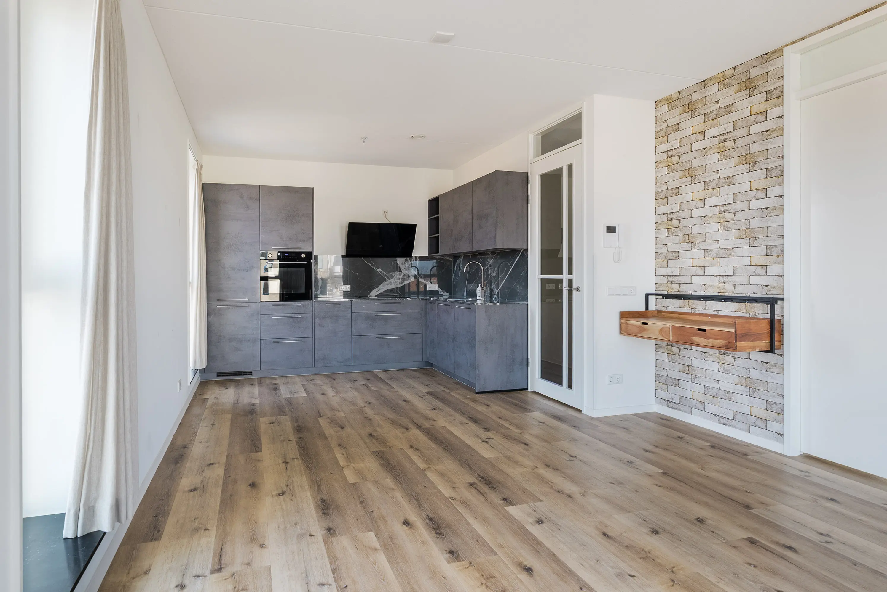 Het appartement is luxe afgewerkt met onder andere een PVC vloer over de gehele verdieping, een badkamer en toilet met luxe tegelwerk en een royale keuken met prachtig werkblad en diverse inbouwapparatuur. Kortom, u bent volledig ontzorgt en het appartement is daadwerkelijk direct instapklaar te noemen.