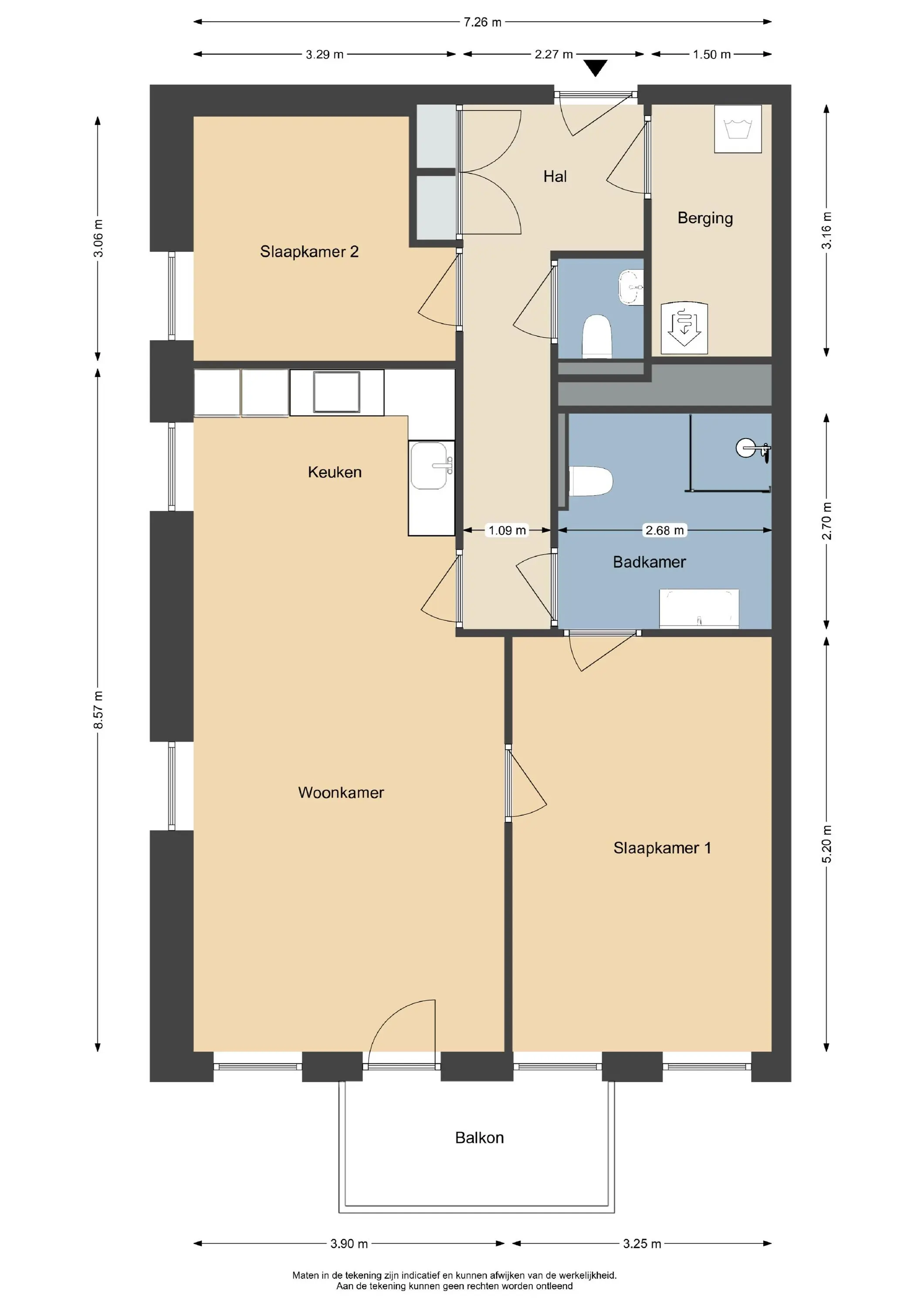 Alle opgegeven maten en oppervlakten zijn indicatief.