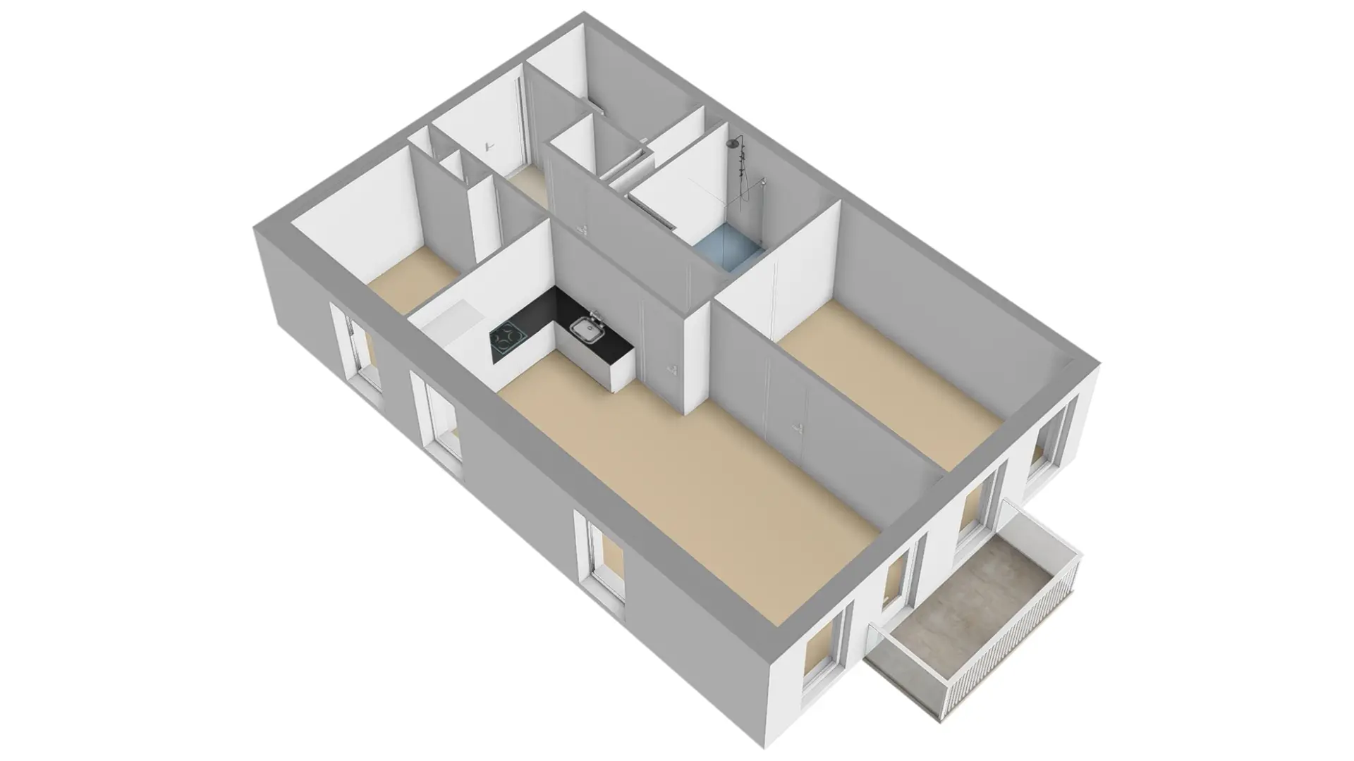 Het appartement is gelegen op de derde verdieping, wat ervoor zorgt dat u rondom over vrij uitzicht beschikt. Via entree toegang tot de royale hal. Vanuit de centrale hal heeft u toegang tot het gastentoilet, de technische ruimte, een tweede slaapkamer, een royale badkamer en de woonkamer met open keuken. Bij binnenkomst in de woonkamer ervaart u direct de prettige lichtinval met kamerhoge raampartijen. Via de woonkamer bereikt u het balkon, waar van het vrije uitzicht kunt genieten. De open keuken voelt zeer ruimtelijk aan en heeft door zijn L-opstelling bijzonder veel praktische bergruimte. Via de woonkamer bereikt u de hoofdslaapkamer, welke op zijn beurt ook weer toegang geeft tot de en-suite badkamer.