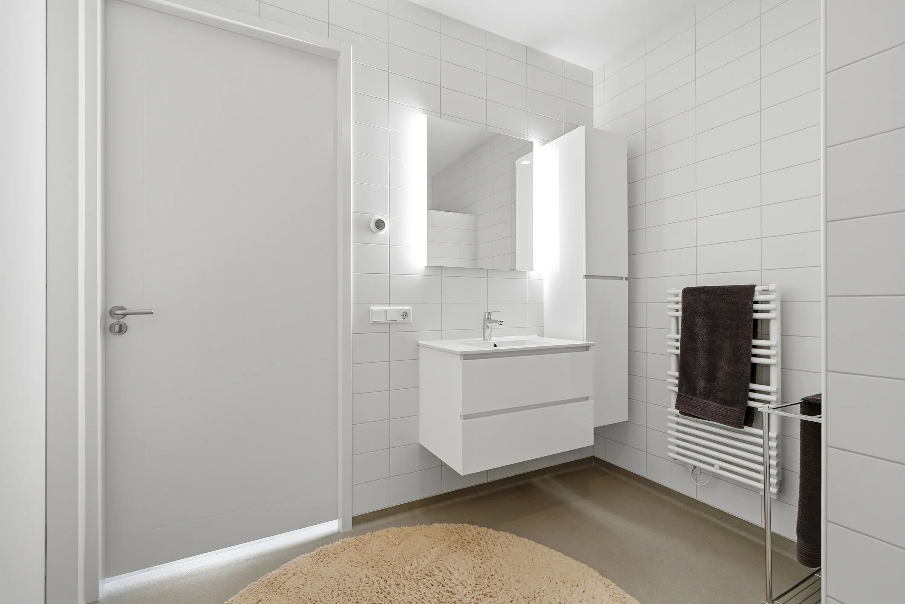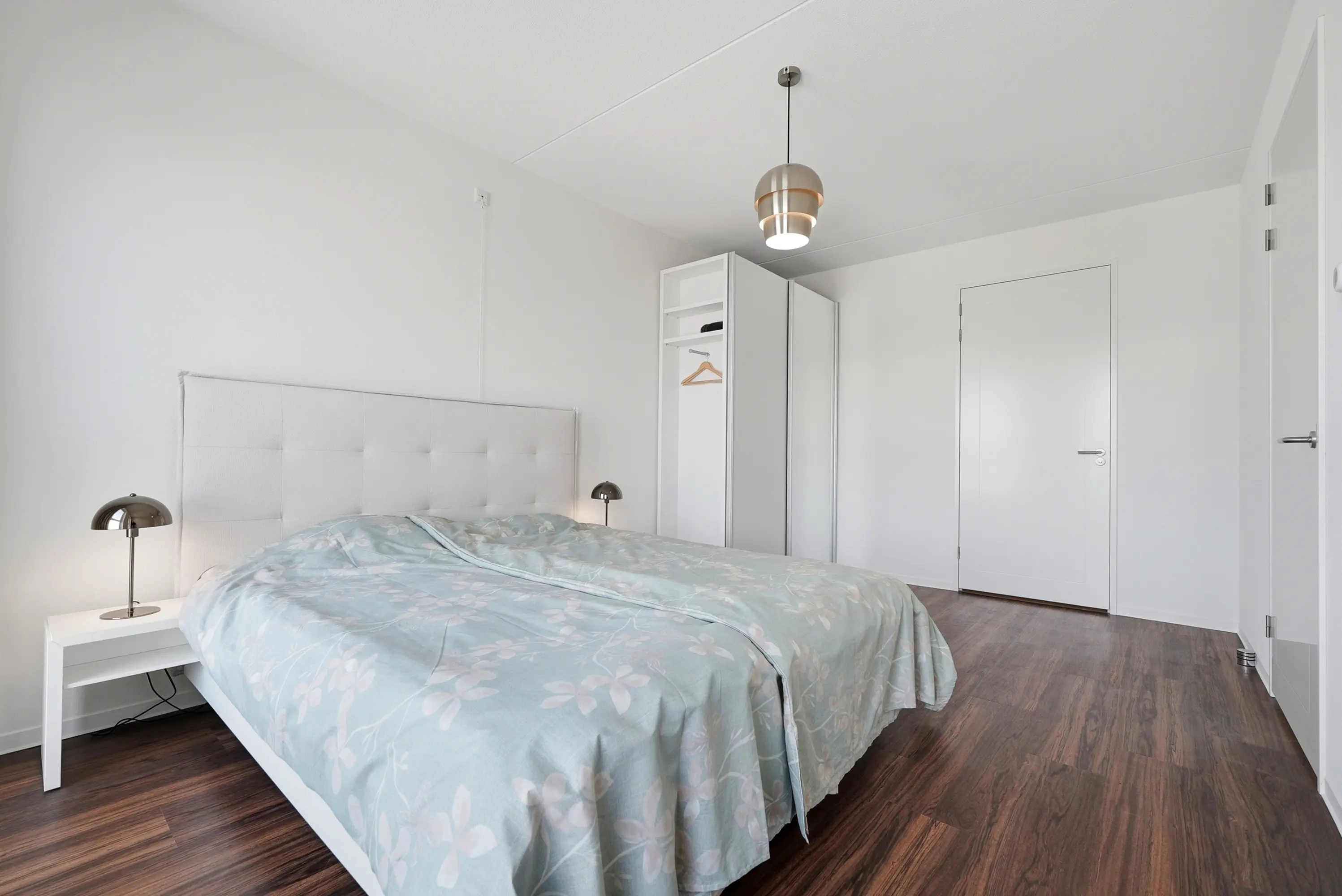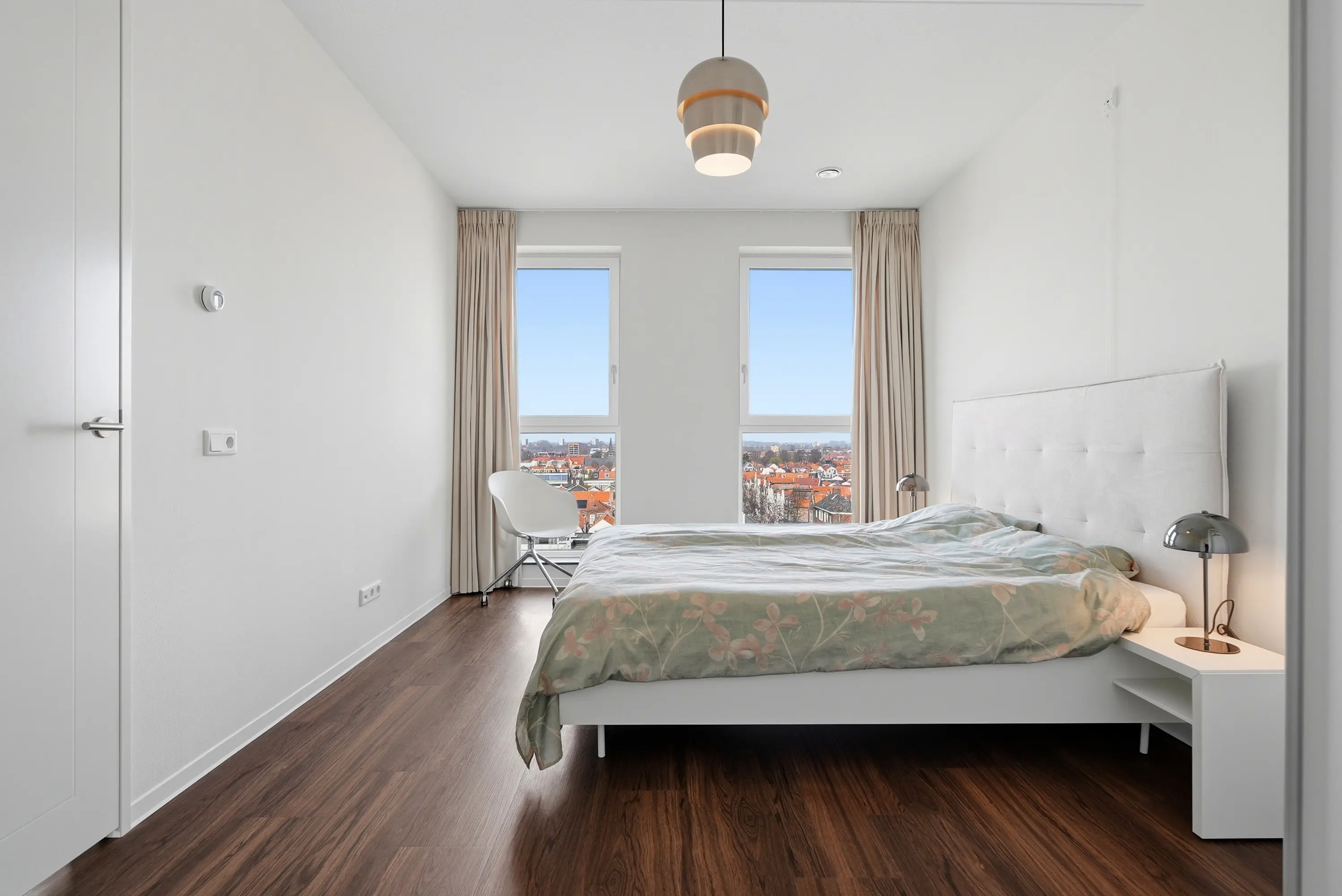 Het appartement beschikt over twee comfortabele slaapkamers, waardoor de woning zich uitstekend leent voor zowel permanent wonen als een luxe stadsappartement met werk- of logeerruimte. De badkamer is modern en tijdloos uitgevoerd, volledig wit betegeld tot aan het plafond en voorzien van een inloopdouche, wastafel en handdoekradiator. Het separate toilet is in dezelfde stijlvolle afwerking uitgevoerd.