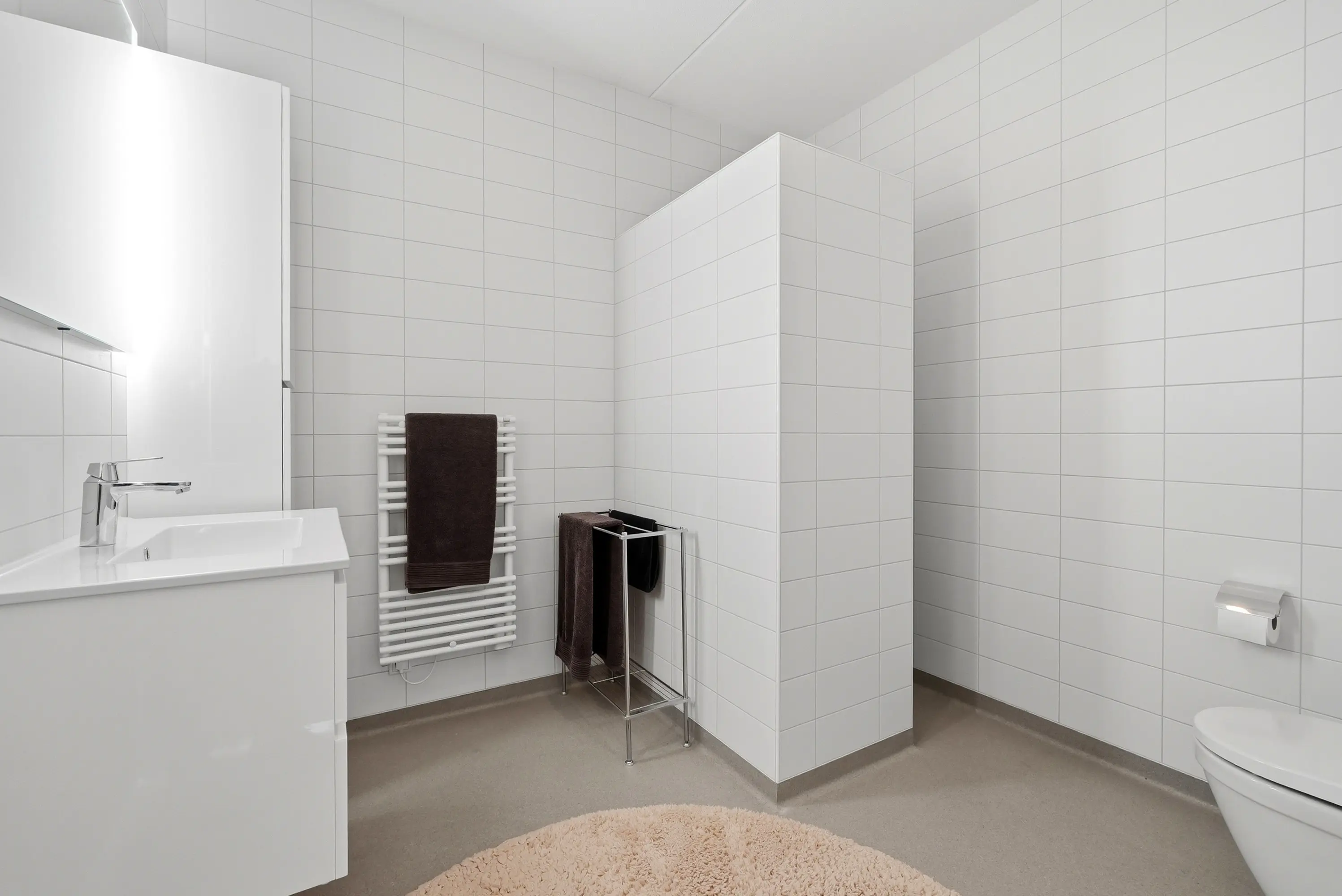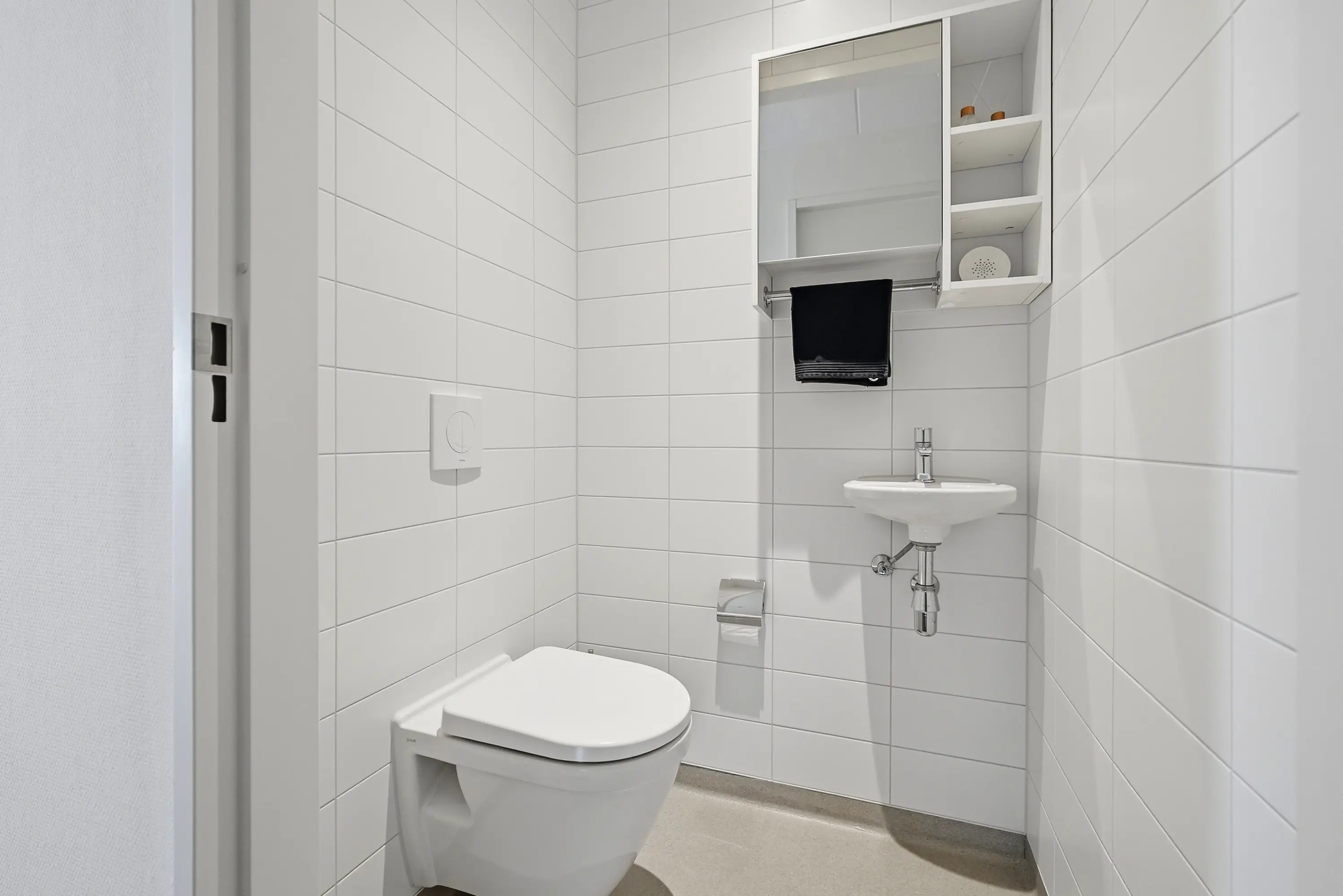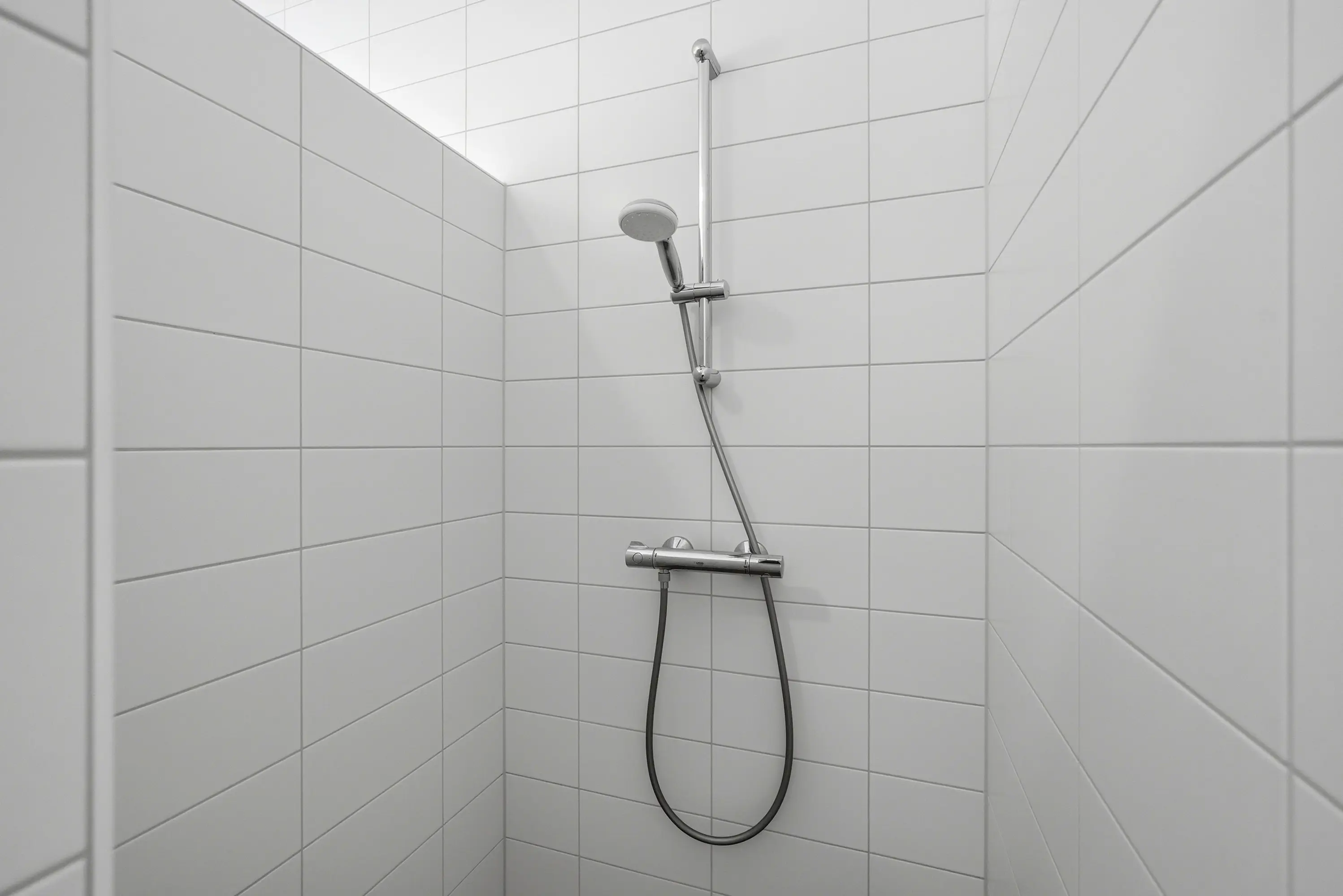 Het appartement beschikt over twee comfortabele slaapkamers, waardoor de woning zich uitstekend leent voor zowel permanent wonen als een luxe stadsappartement met werk- of logeerruimte. De badkamer is modern en tijdloos uitgevoerd, volledig wit betegeld tot aan het plafond en voorzien van een inloopdouche, wastafel en handdoekradiator. Het separate toilet is in dezelfde stijlvolle afwerking uitgevoerd.