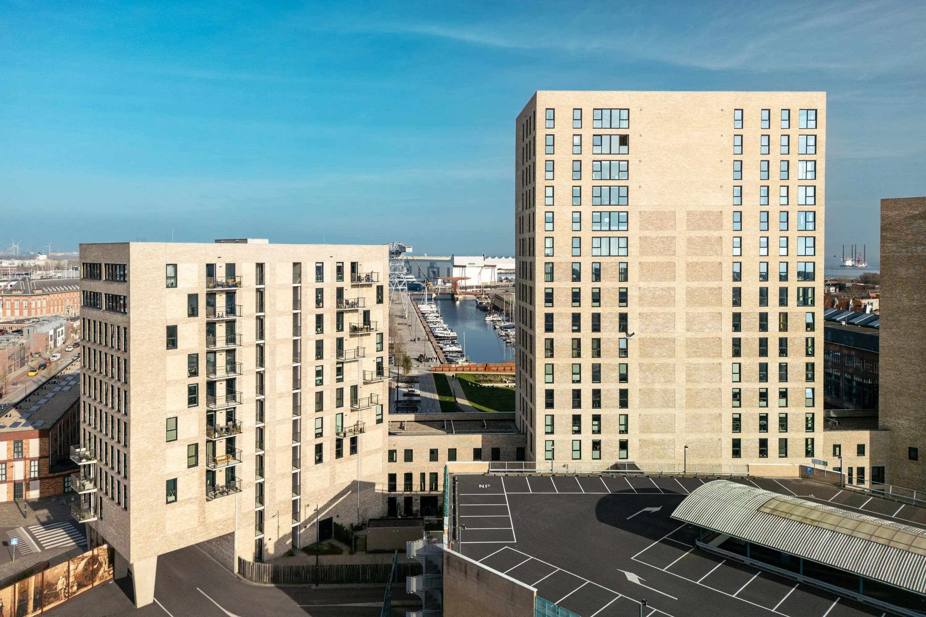 Kop van het Dok is gerealiseerd op een historische locatie aan de kop van het voormalige dok, waar maritieme historie en moderne architectuur elkaar ontmoeten. De drie woontorens vormen samen een eigentijds geheel dat perfect aansluit bij het karakter van het vernieuwde Scheldekwartier.