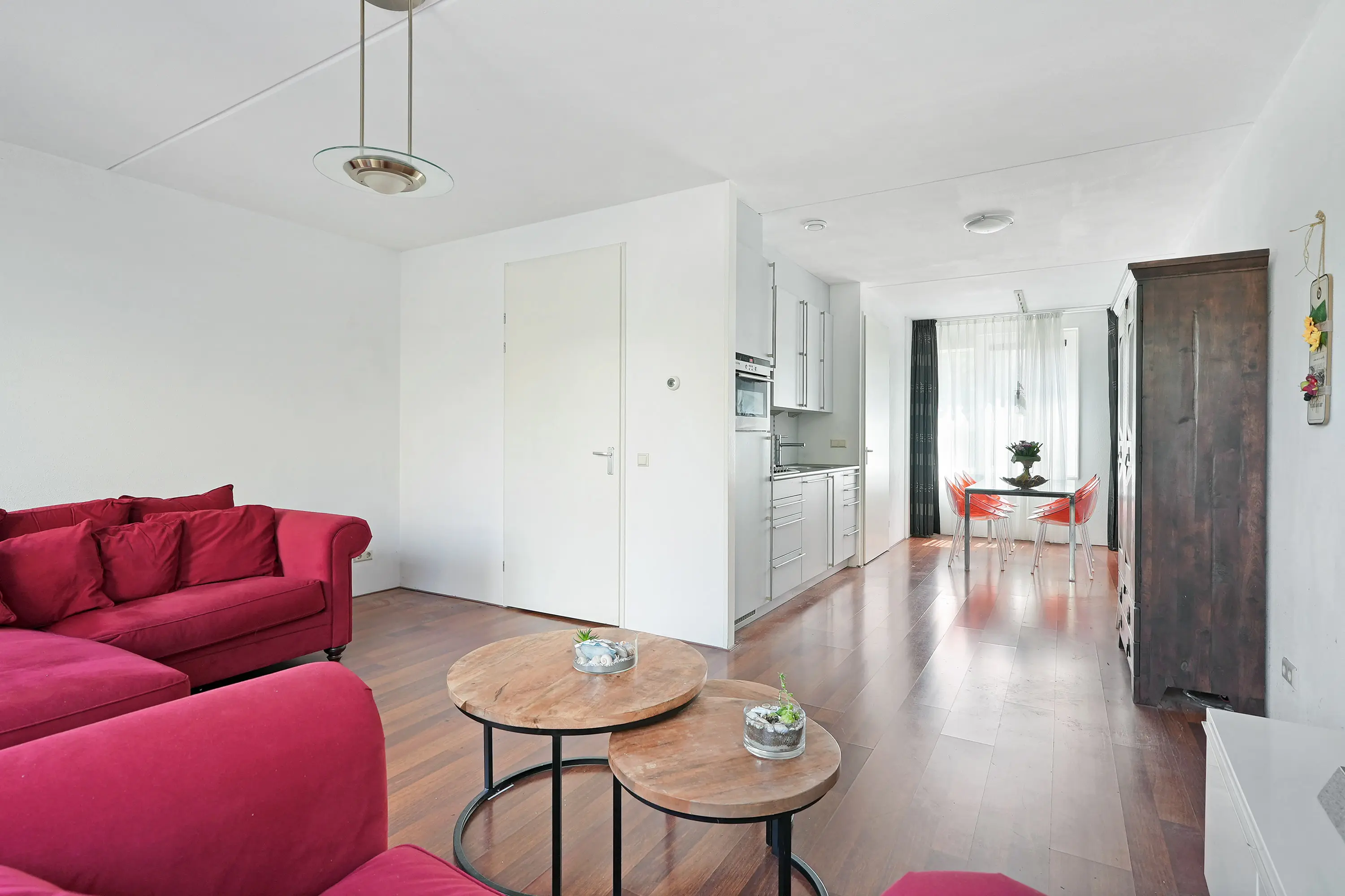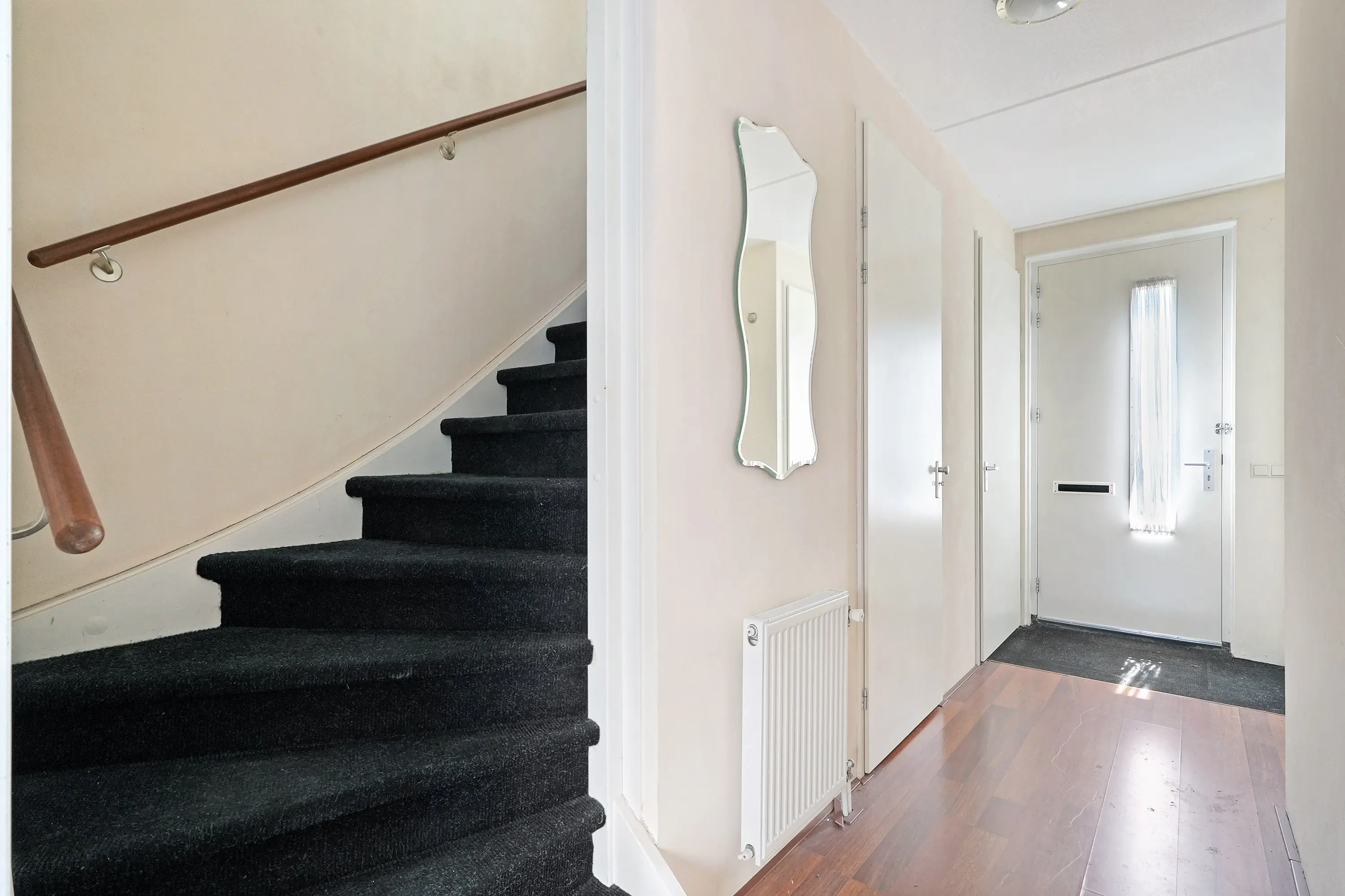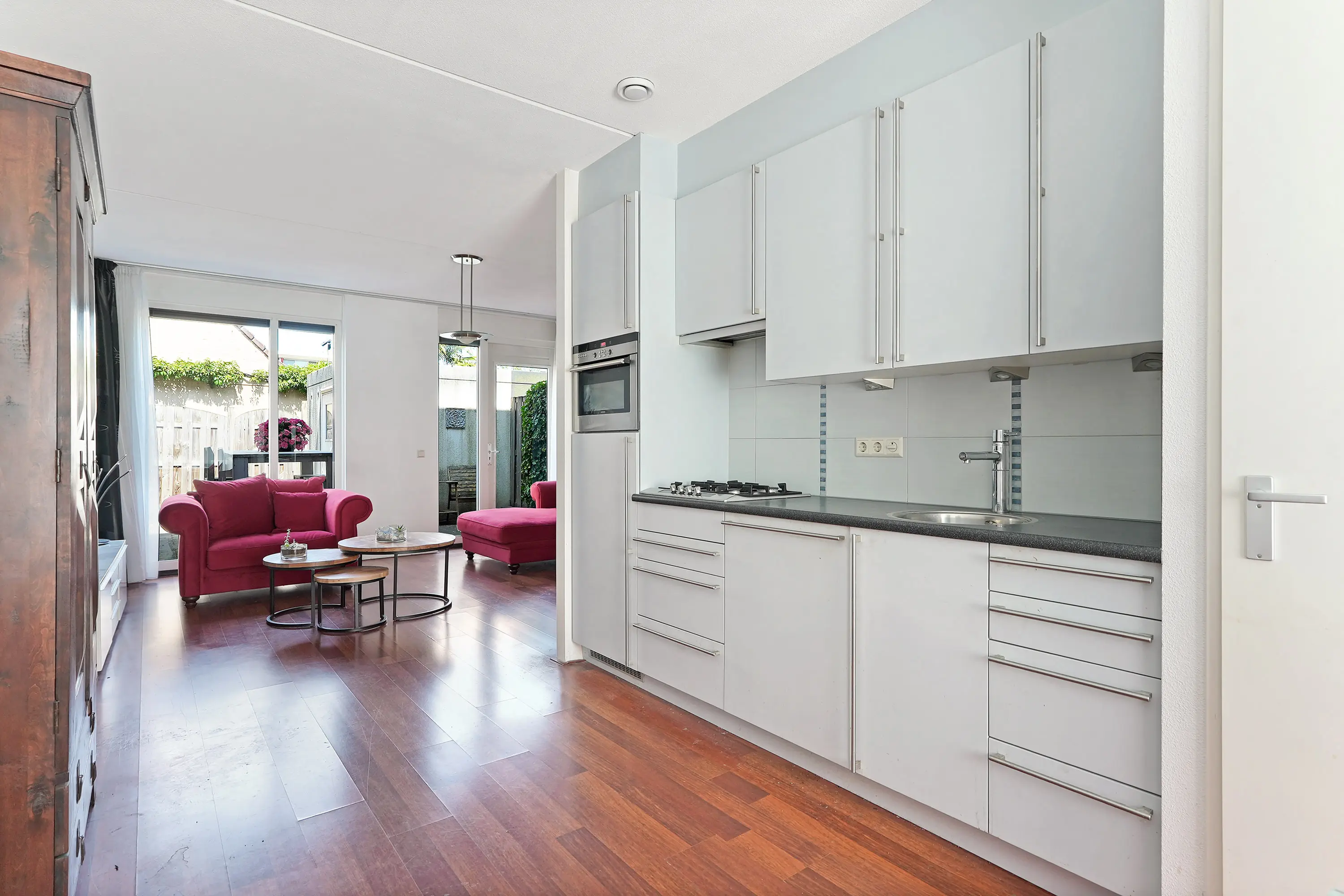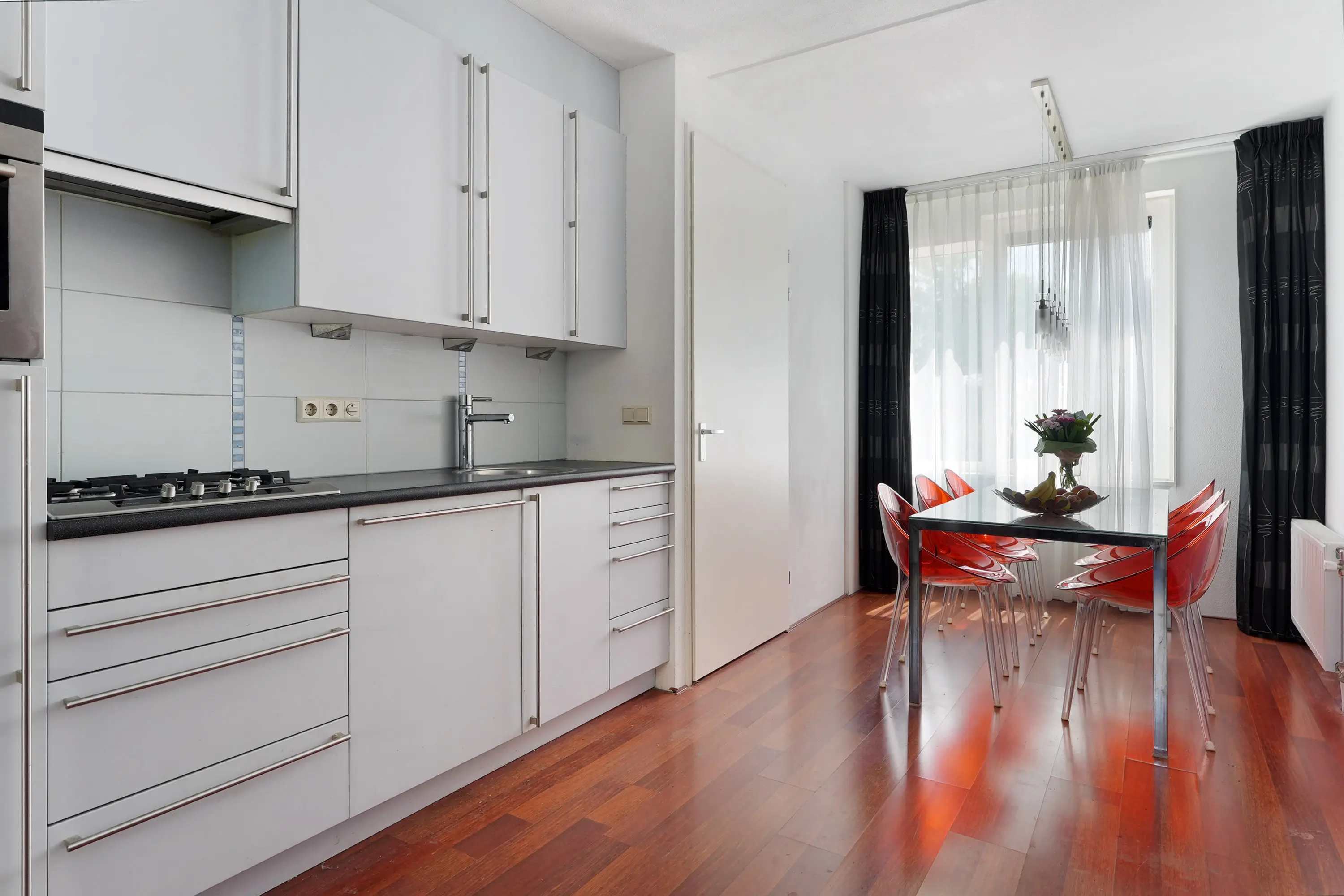U komt de woning binnen via de entree, waar zich de meterkast, het toilet en de trapopgang bevinden. De meterkast beschikt over 7 groepen. De lichte woonkamer is aan de achterzijde gesitueerd en wordt gekenmerkt door grote raampartijen en openslaande deuren naar de tuin, wat zorgt voor een fijne lichtinval. De keuken bevindt zich centraal in de woning, met aan de voorzijde de eetkamer. Indien gewenst is het mogelijk om de keuken naar de voorzijde te verplaatsen. De huidige keuken is voorzien van inbouwapparatuur zoals een koelkast, combi-oven, gaskookplaat, afzuigkap en vaatwasser.