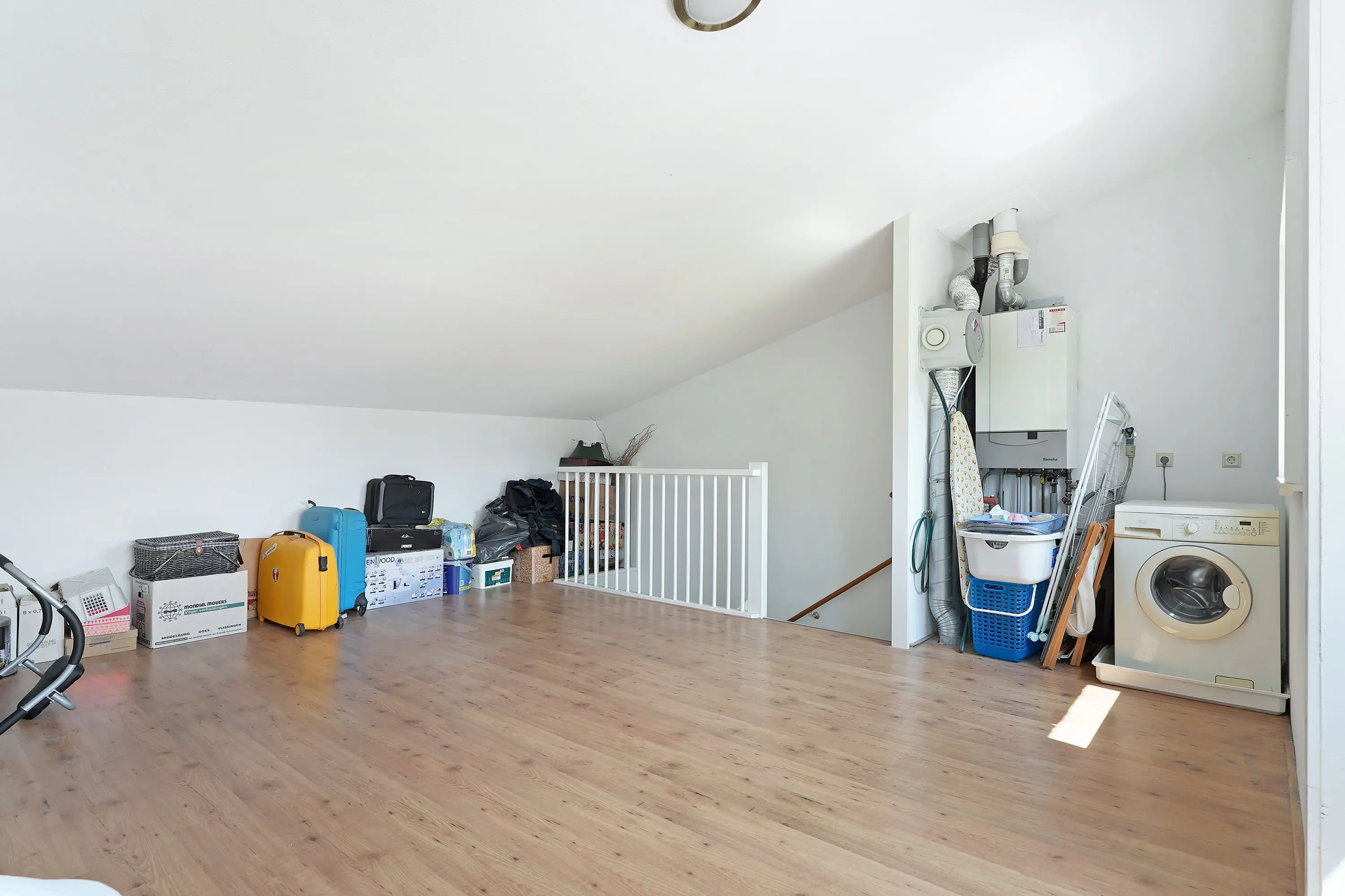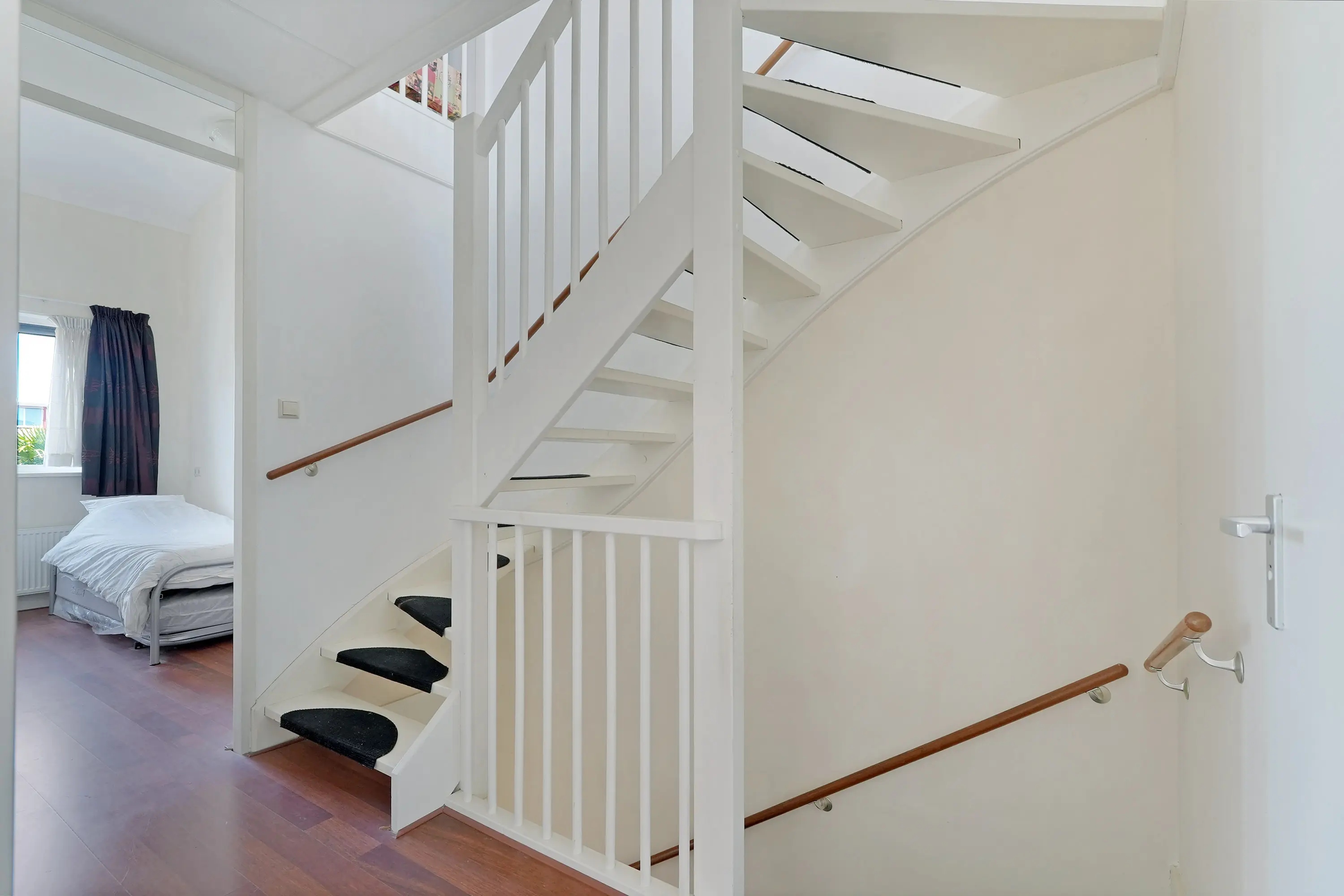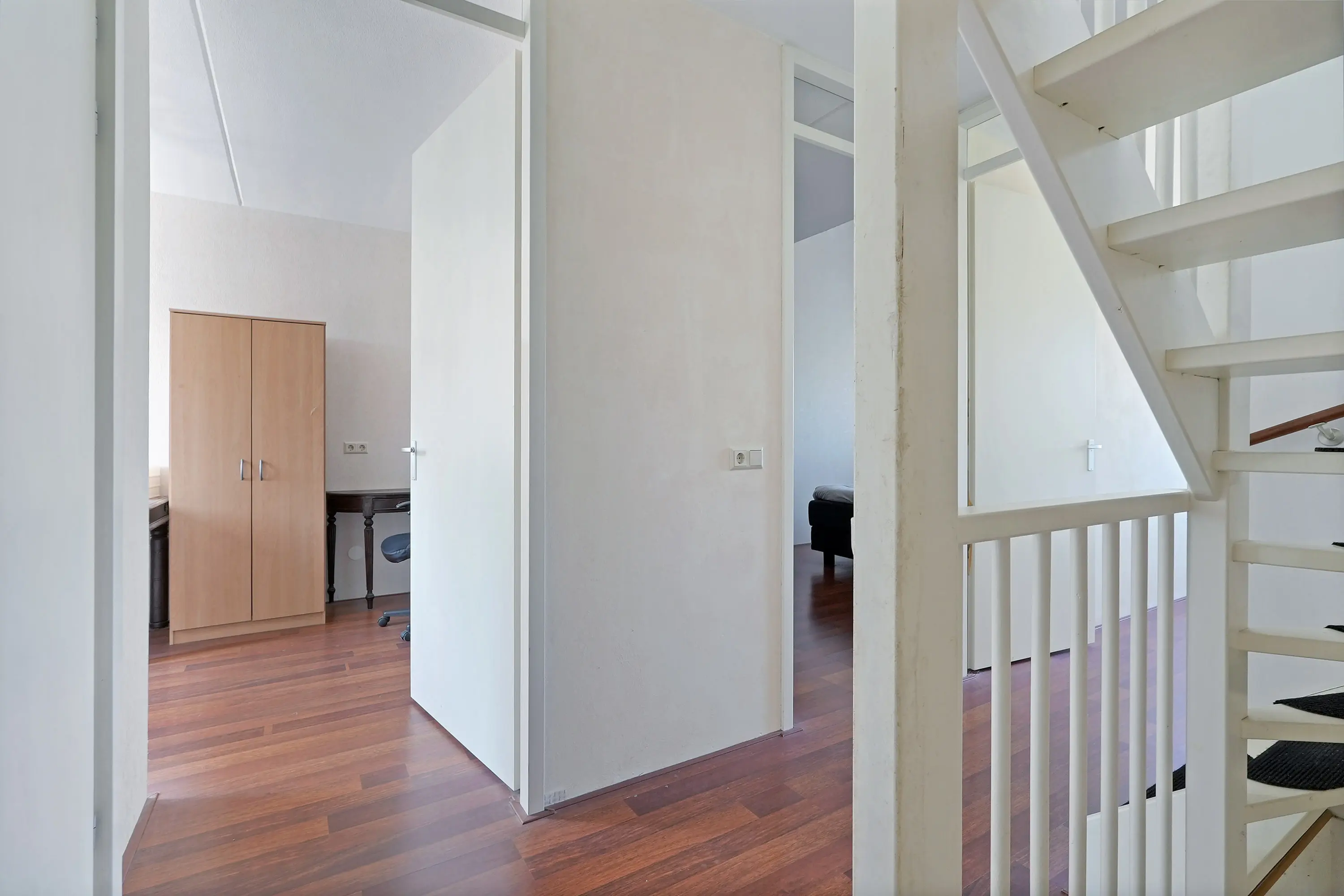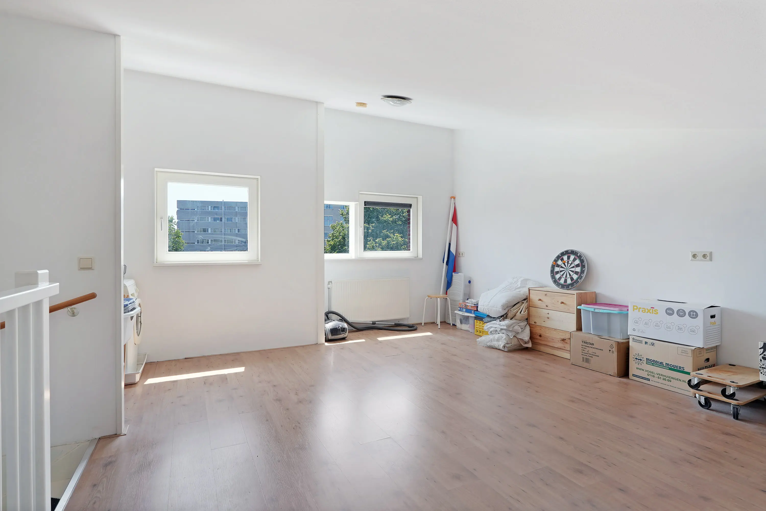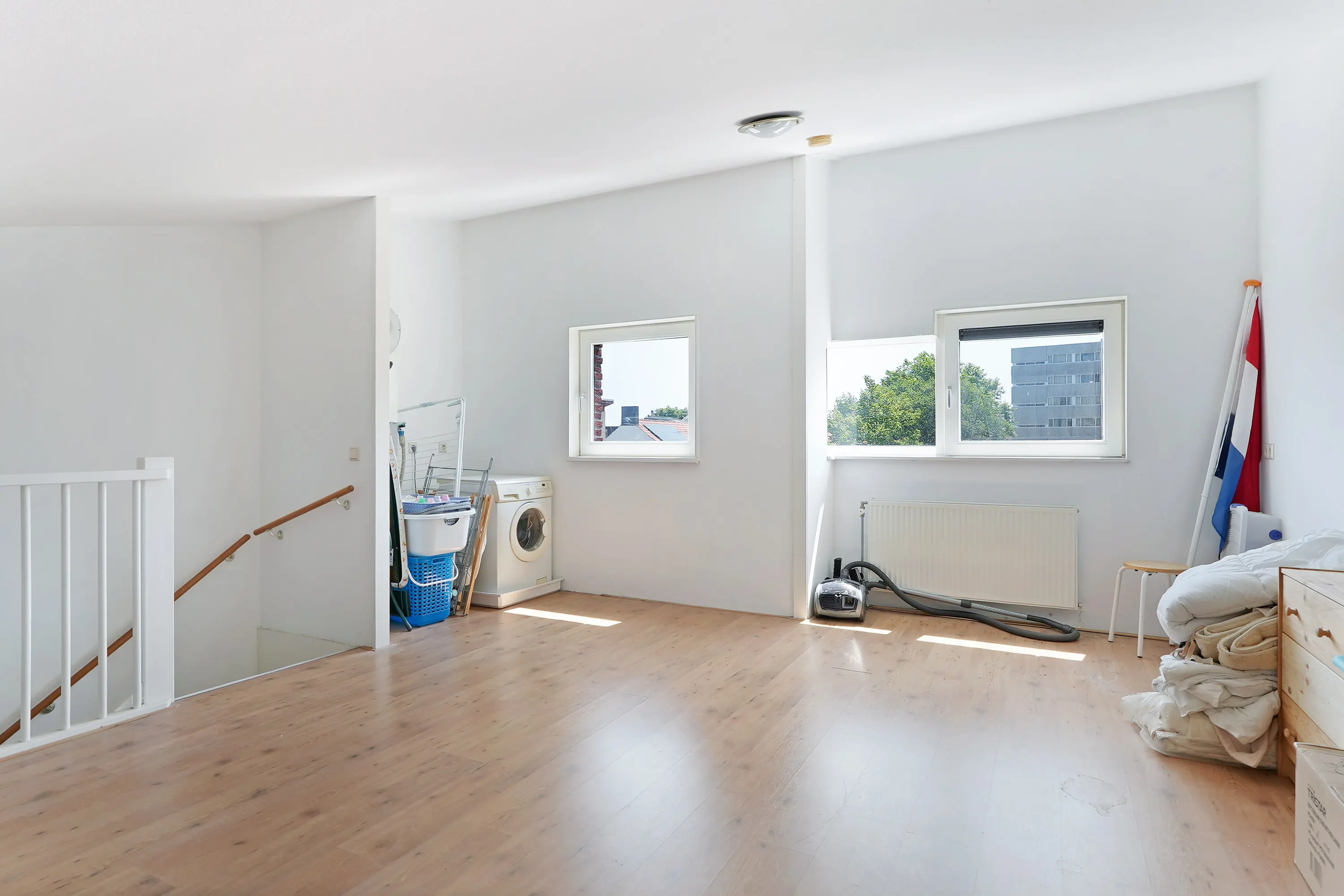Een vaste trap brengt u naar de tweede verdieping, waar een indrukwekkende hoeveelheid ruimte op u wacht. Deze verdieping biedt volop mogelijkheden voor het creëren van een extra slaapkamer, hobbyruimte of thuiswerkplek. Hier vindt u tevens de cv-opstelling (Remeha, 2008) en de aansluiting voor de wasmachine.
