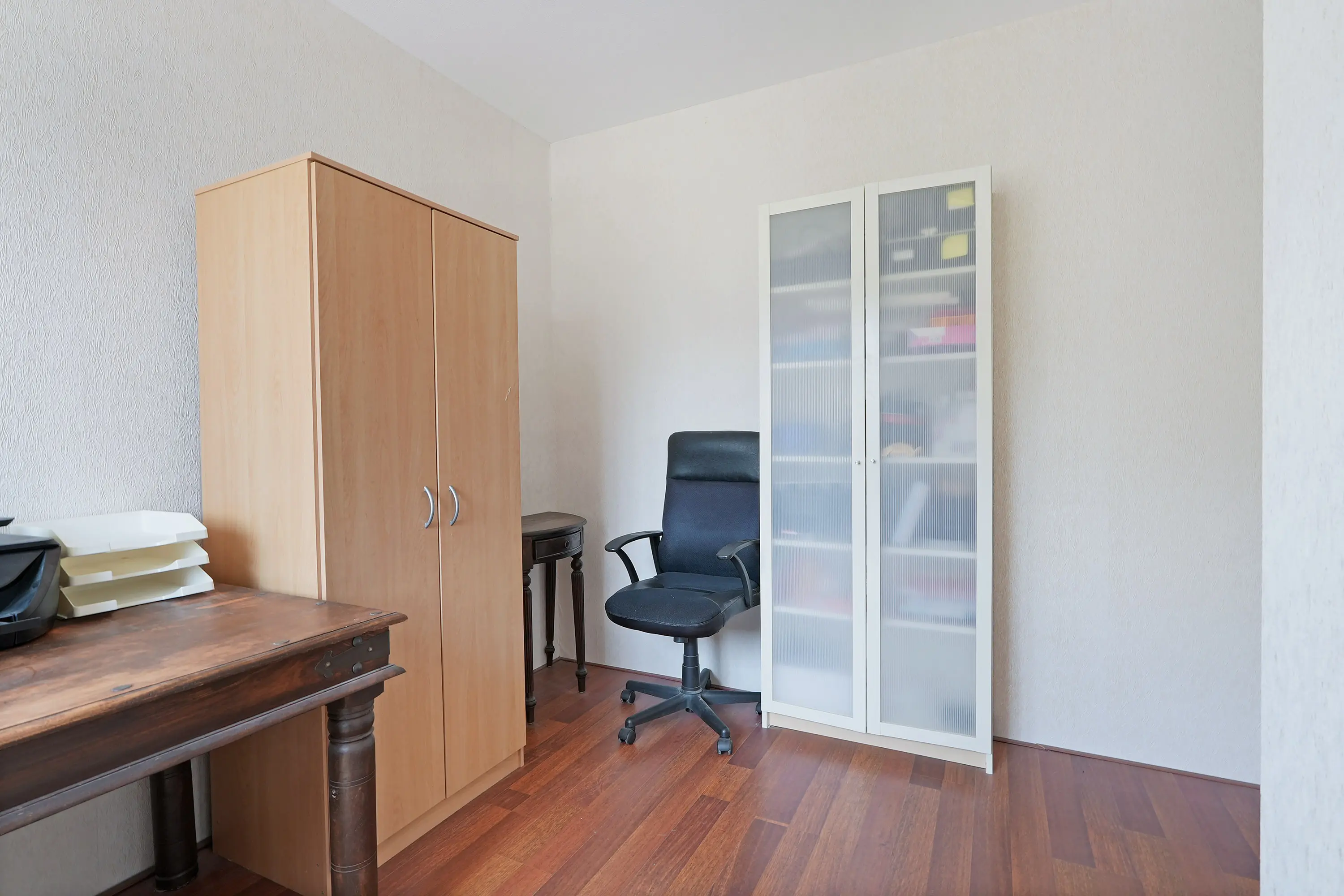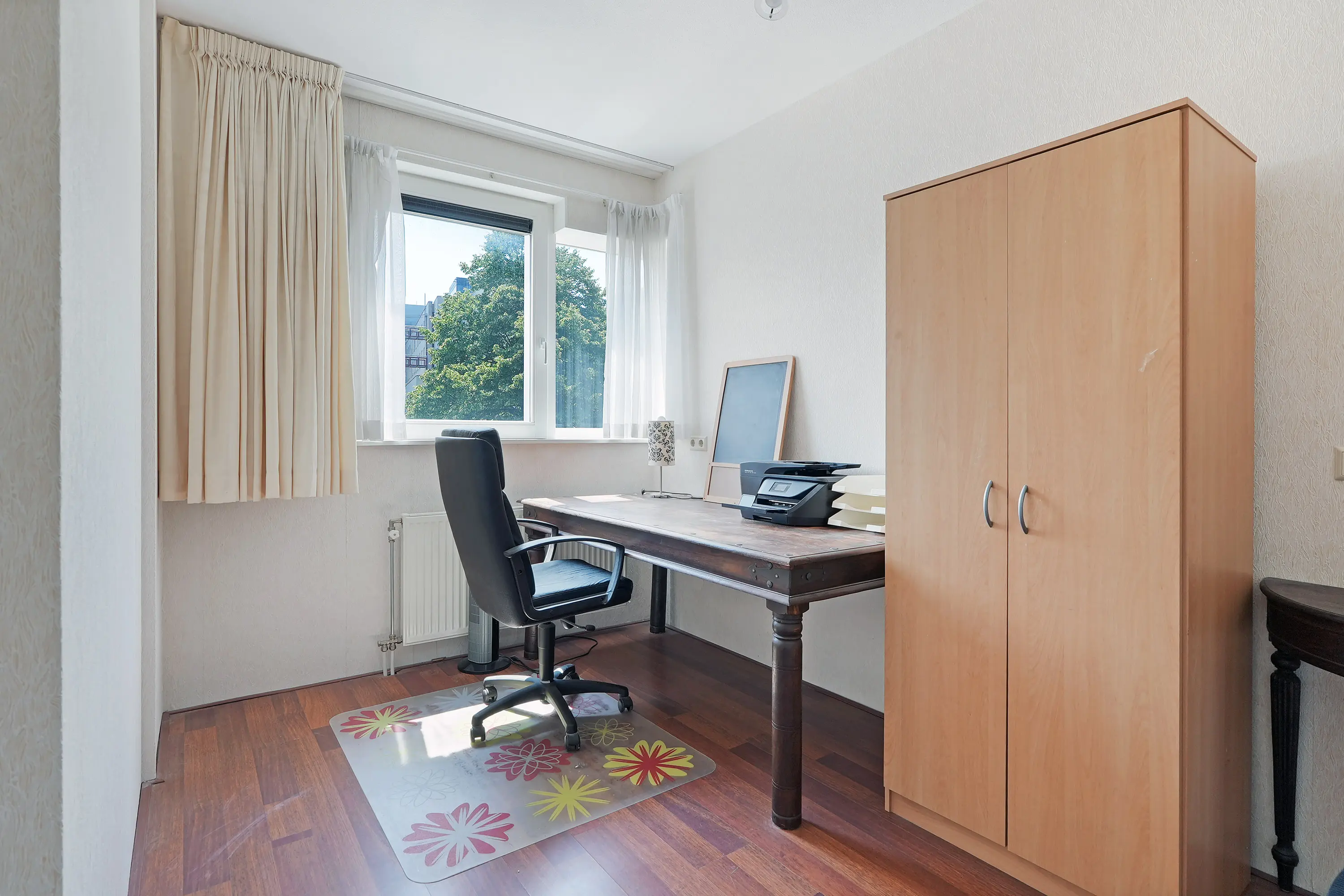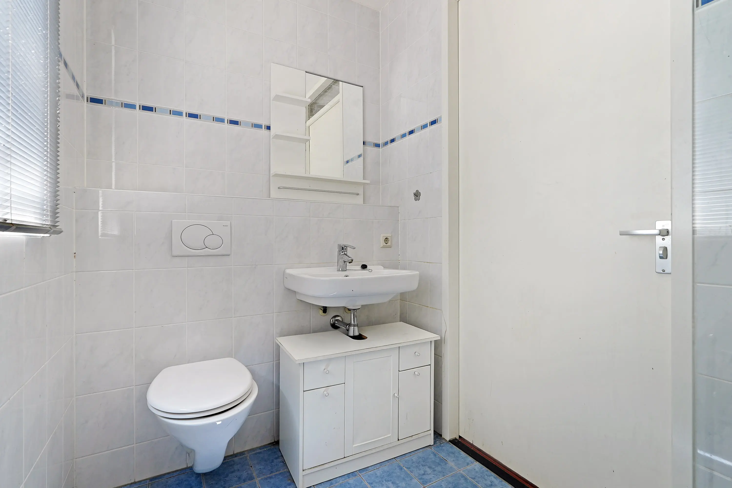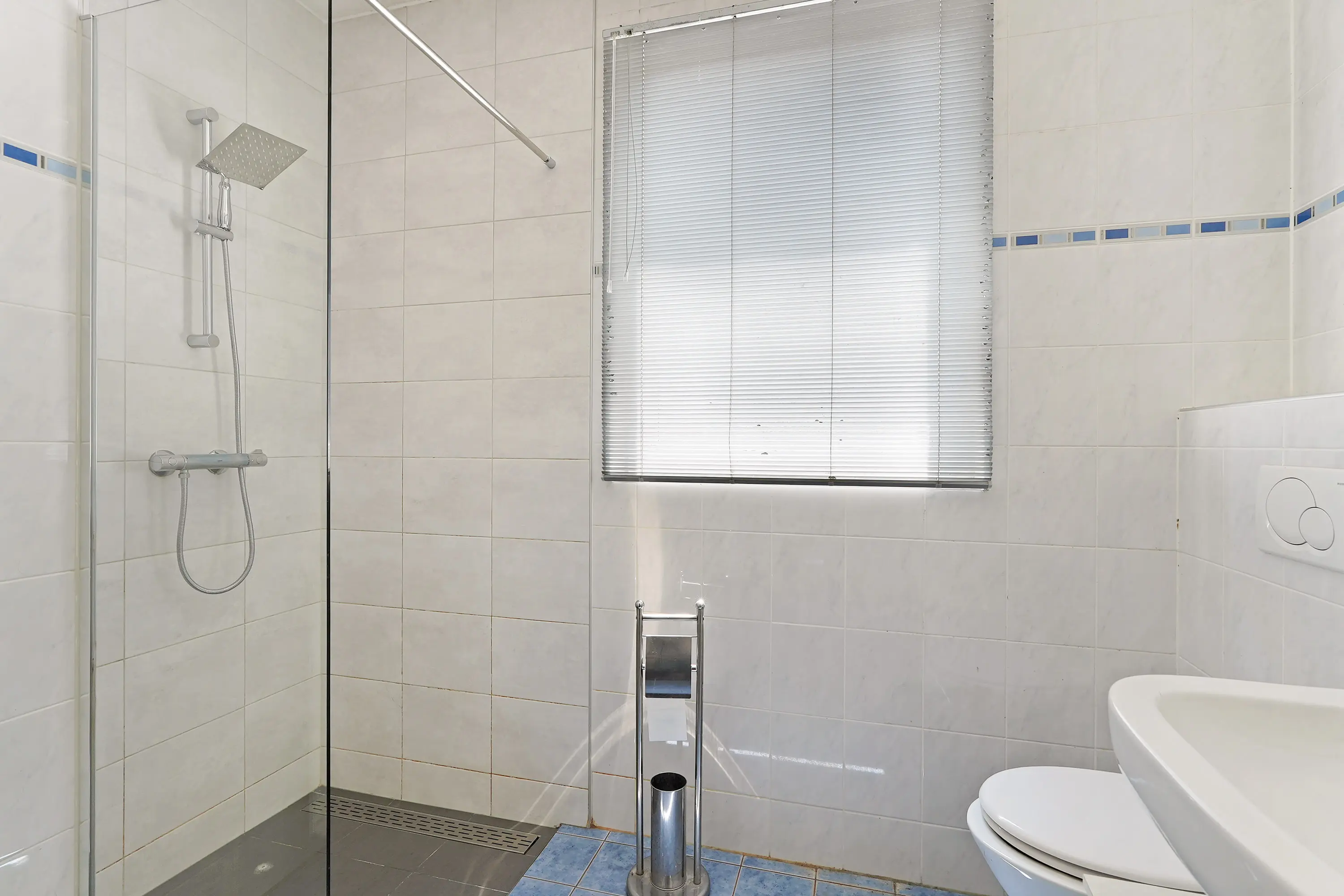 Op de eerste verdieping bevinden zich drie ruime slaapkamers. Door de hoogte van de plafonds voelt deze verdieping extra ruim aan. Aan de achterzijde vindt u twee slaapkamers; aan de voorzijde een derde slaapkamer en de badkamer. Deze badkamer is voorzien van een douche, wastafel en tweede toilet.