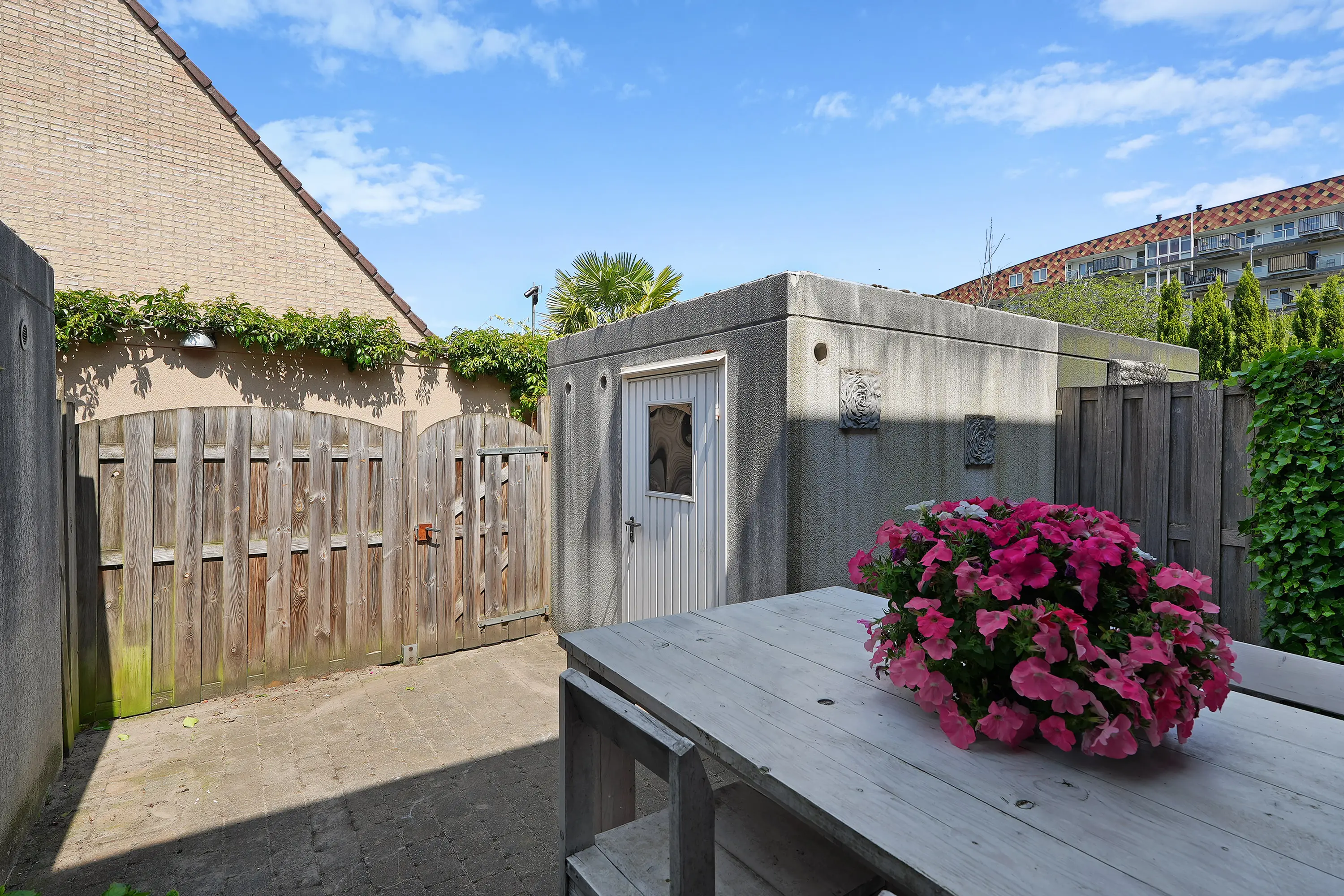Aan de voorzijde beschikt de woning over een diepe tuin met eigen oprit en een gezellige zithoek. De achtertuin is gelegen op het noordwesten en biedt in de late middag en vroege avond volop zon. Achterin de tuin bevindt zich een praktische berging met elektra en een vrije achterom.