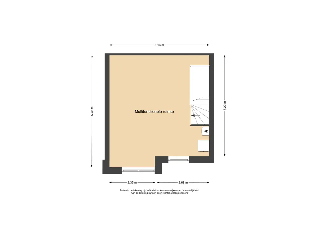 Deze informatie is door ons met de nodige zorgvuldigheid samengesteld. Onzerzijds wordt echter geen enkele aansprakelijkheid aanvaard voor enige onvolledigheid, onjuistheid of anderszins, dan wel de gevolgen daarvan. Alle opgegeven maten en oppervlakten zijn indicatief.