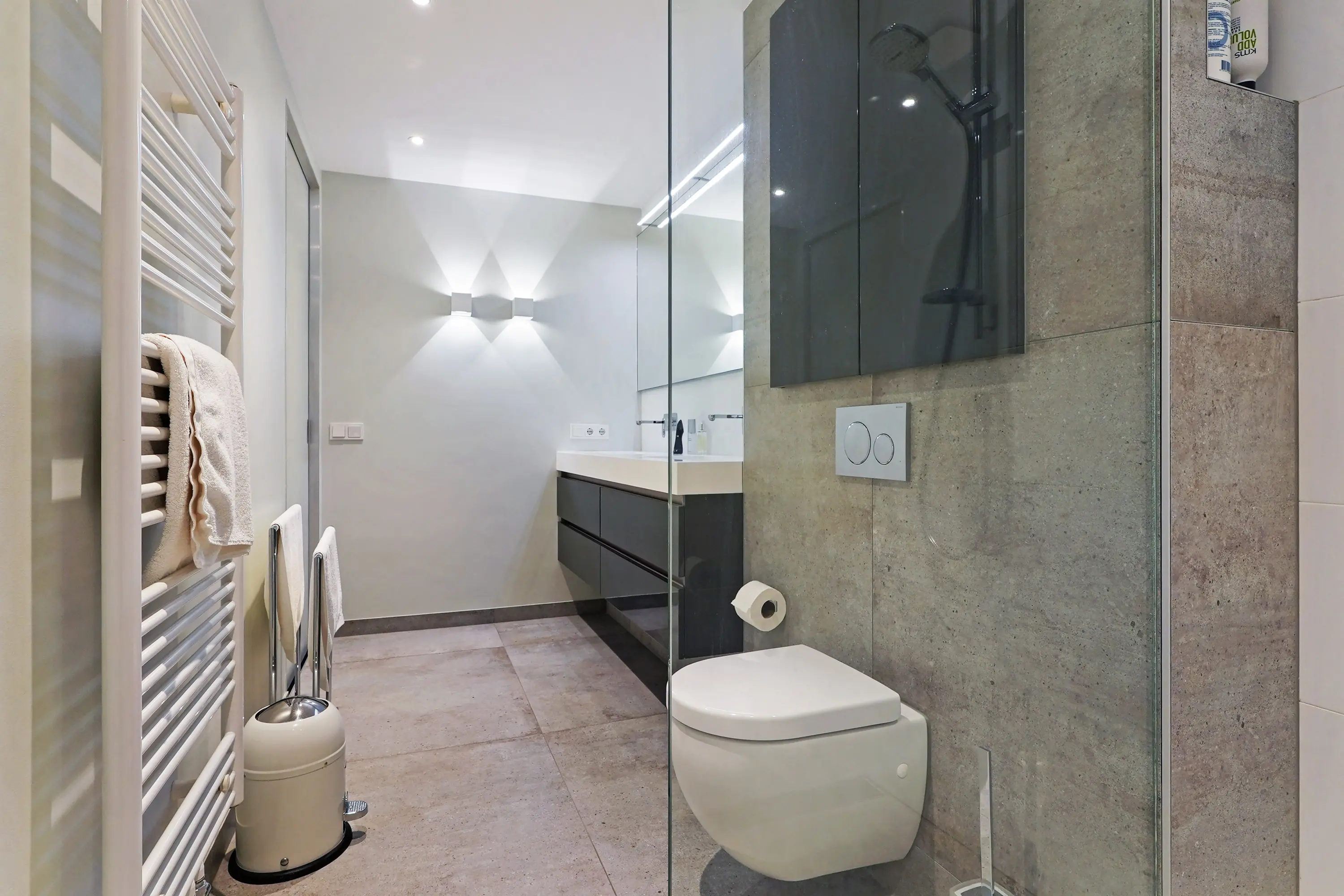 De keuken is voorzien van hoogwaardige Neff-inbouwapparatuur, waaronder een stoomoven, combimagnetron, koffiezetapparaat, vaatwasser en vriezer. Daarnaast beschikt de keuken over een ATAG-inductiekookplaat met wok gasbrander en een Liebherr-koelkast. De zorgvuldig gekozen designverlichting van Tom Dixon boven het werkblad versterkt de moderne, luxe uitstraling van deze ruimte. Vanuit de keuken heeft u directe toegang tot het terras, ideaal voor lange zomeravonden of ontspannen ontbijten in de ochtendzon.